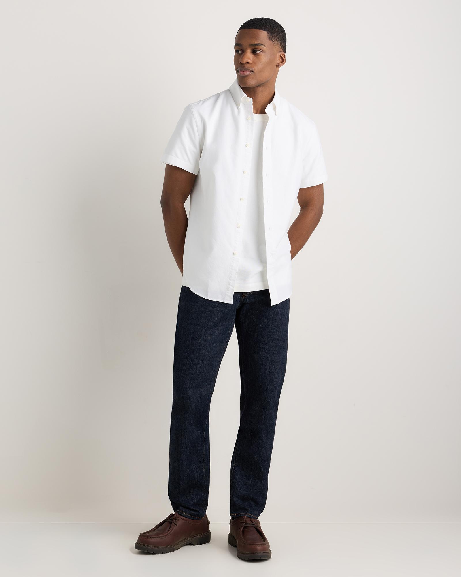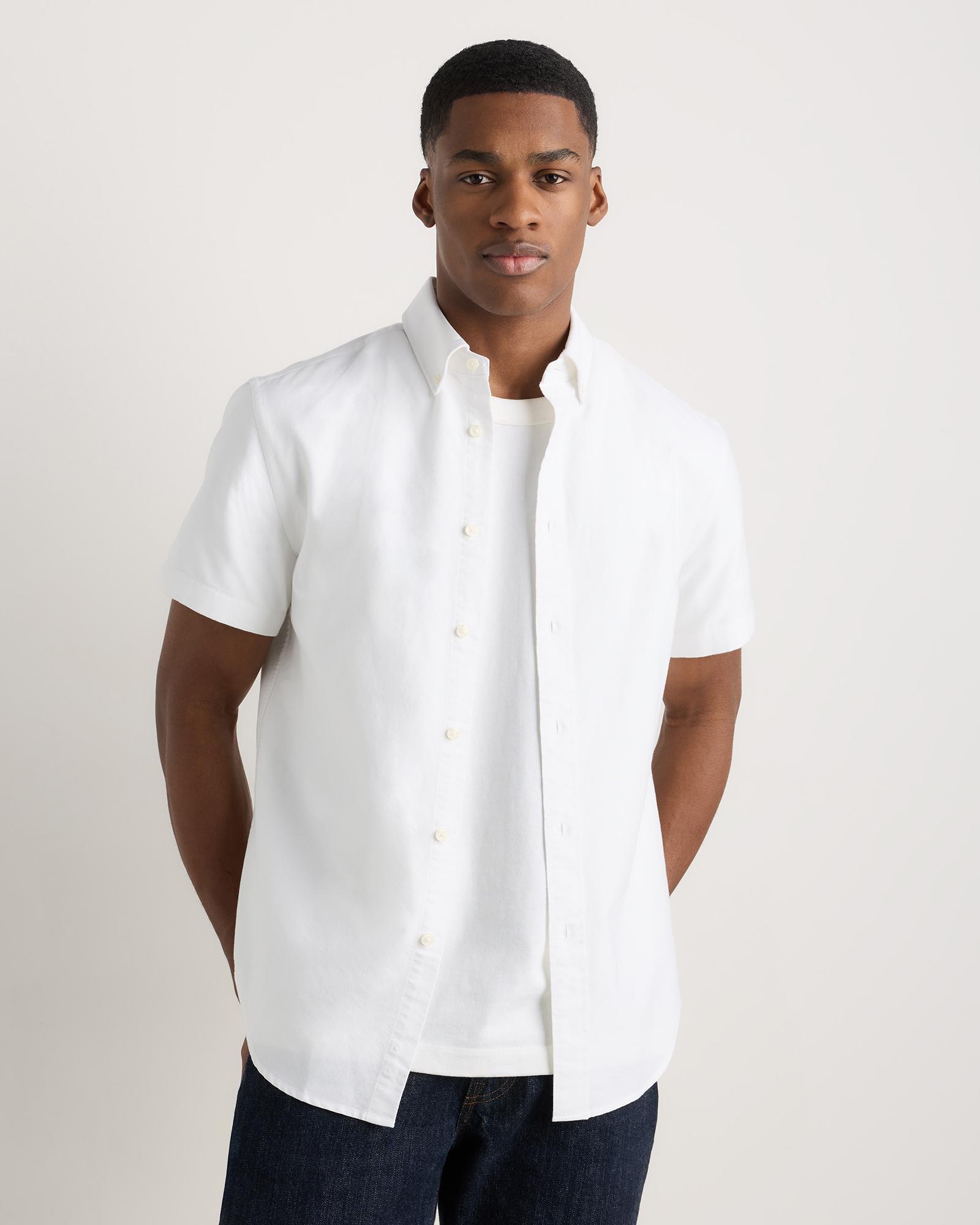A forever essential, our 100% Organic Cotton Short Sleeve Oxford Shirt blends timeless style and everyday comfort. Crafted from premium organic cotton, the special enzyme wash process creates an ultra-soft handfeel so you can feel comfy all day without sacrificing any polish. Its classic look can flex for work or the weekend, making it a must-have for any wardrobe. | Quince | Men's Short Sleeve Oxford Shirt in White, Size XXL, Organic Cotton