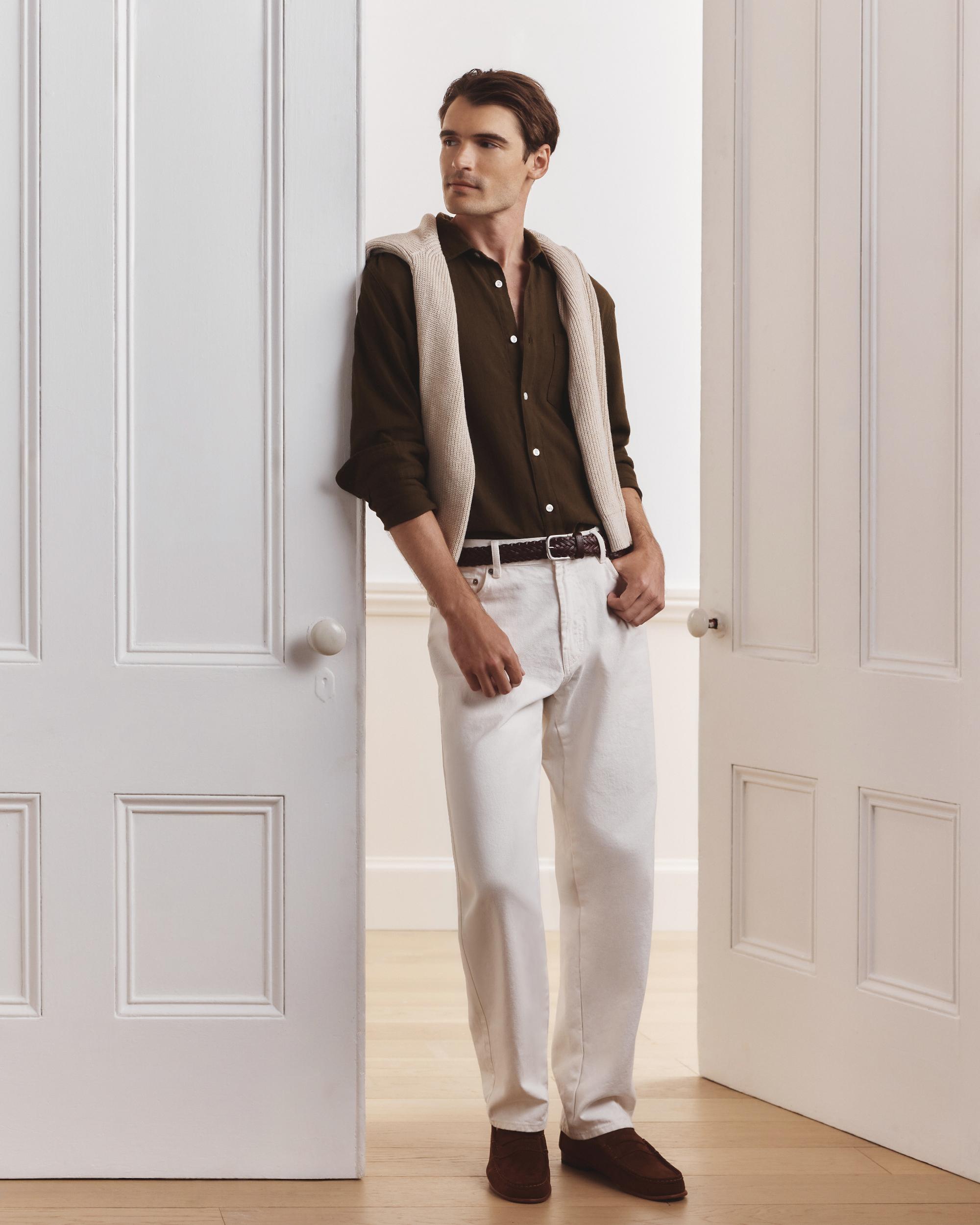 Elevate your wardrobe with the Organic Cotton Stretch Selvage Shirt, crafted from soft, breathable organic cotton selvage with a touch of stretch for ultimate comfort. Its classic fit and button-down design make it the perfect midweight shirt for day to day wear with added length to tuck in for work occasions. The added stretch ensures a flexible, flattering fit and durability. Choose this eco-friendly, versatile shirt to refresh your collection with style, comfort, and sustainability in mind. | Quince | Men's Stretch Selvage Shirt in Olive, Size XXL, Organic Cotton