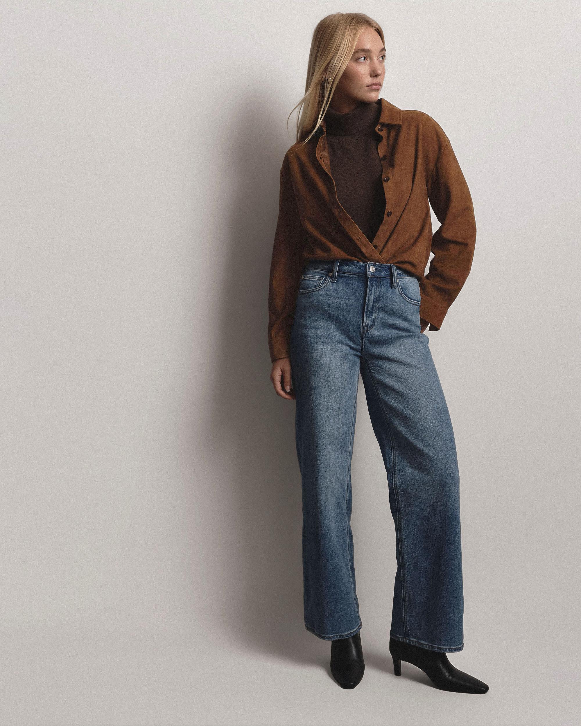 Our suede overshirt is here and it's the ideal blend of classic button-down shirt and luxe leather jacket. With a relaxed fit, it's perfect for layering—try wearing it open, like a traditional overshirt, paired with your favorite tee, or fully buttoned under a jacket as the temperature starts to drop. Read more about what makes our leather special in our Leather 101 guide. | Quince | Women's 100% Suede Overshirt in Dark Chestnut, Size Medium, Leather