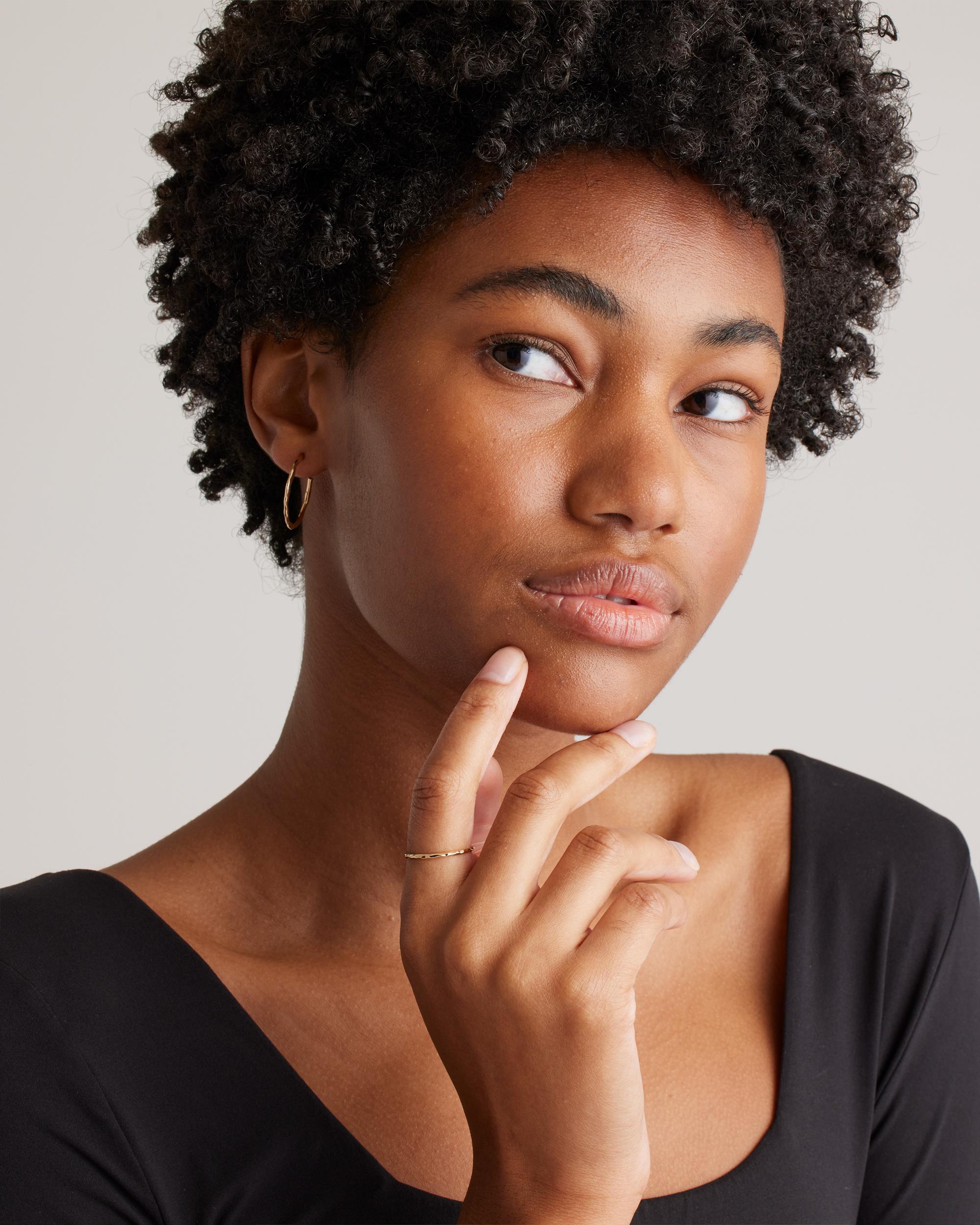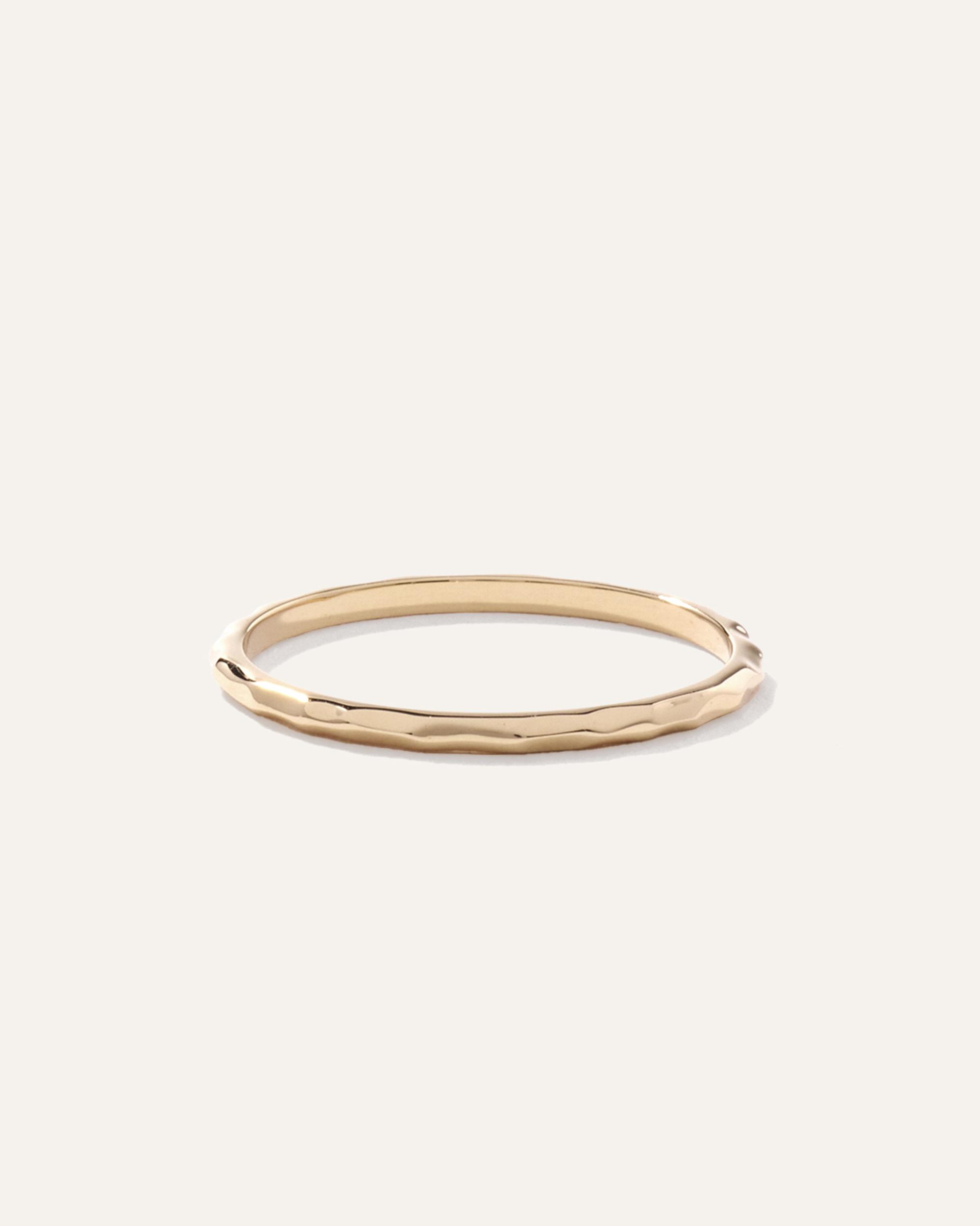Made from 14k gold, this band features a unique hammered texture that adds an artisan feel. Its sleek and minimalist design makes it versatile and gender neutral. Wear it alone or stack with other rings to create a one-of-a-kind look. | Quince | Women's 14k Gold Hammered Band Rings in Yellow Gold, Size 6.5