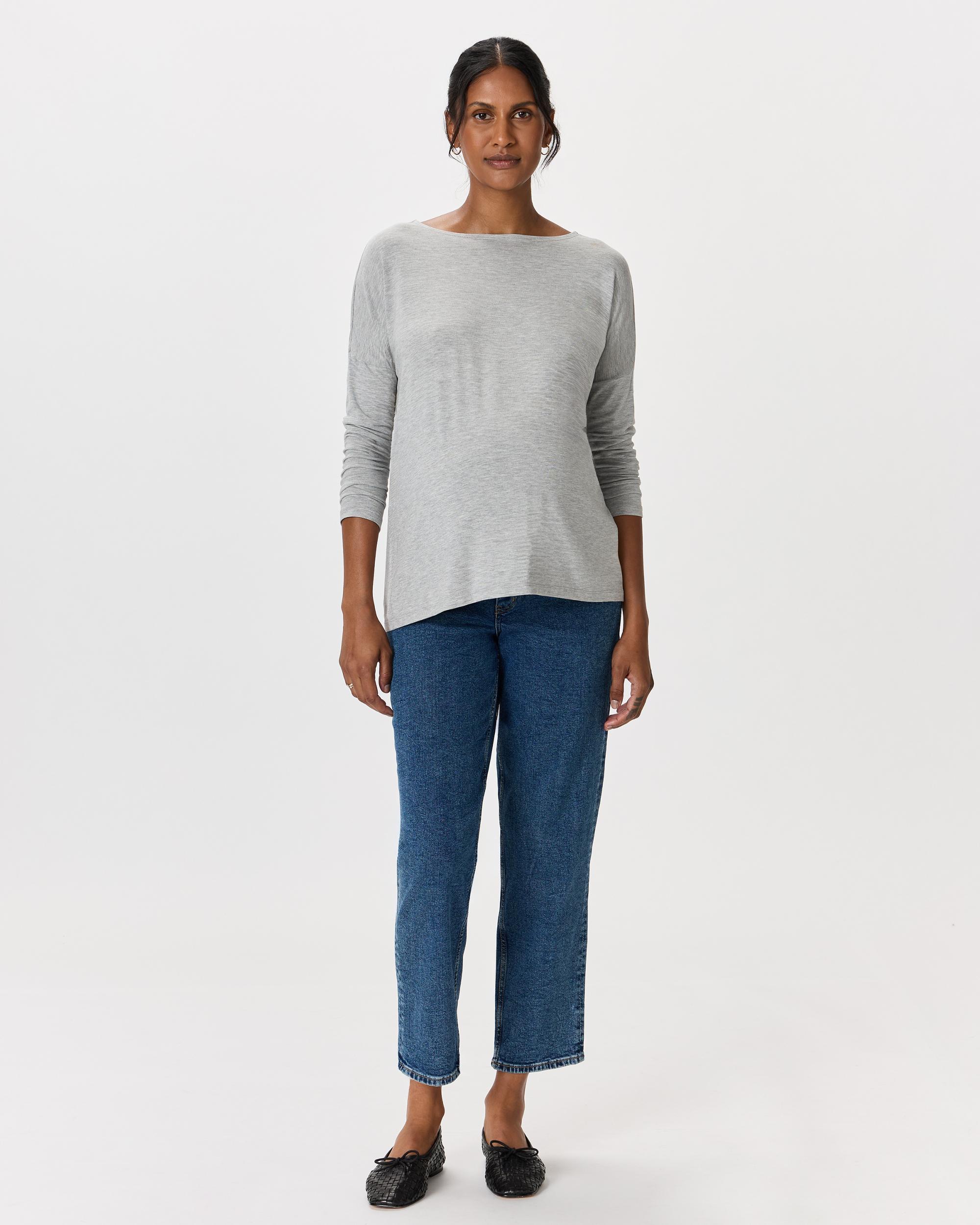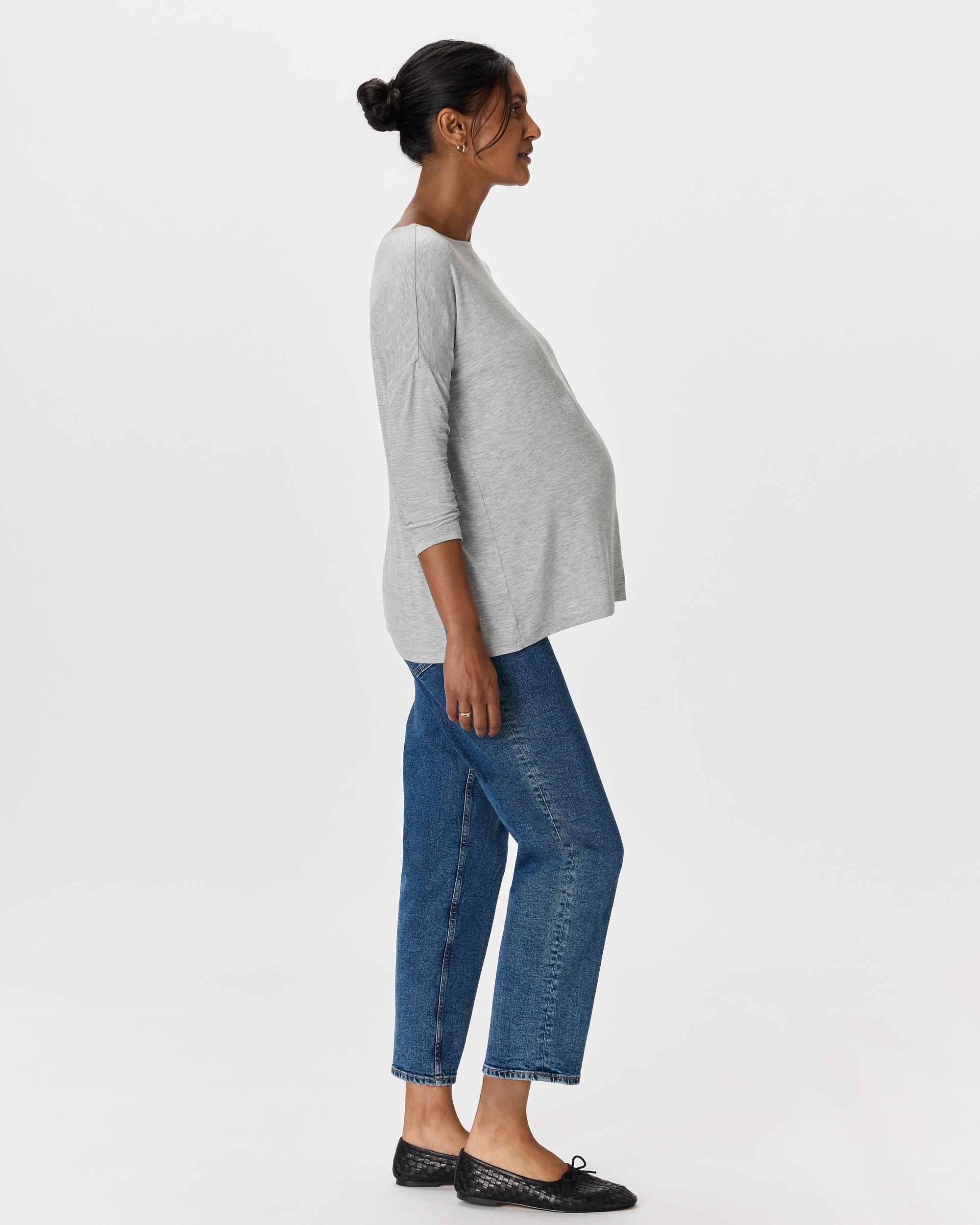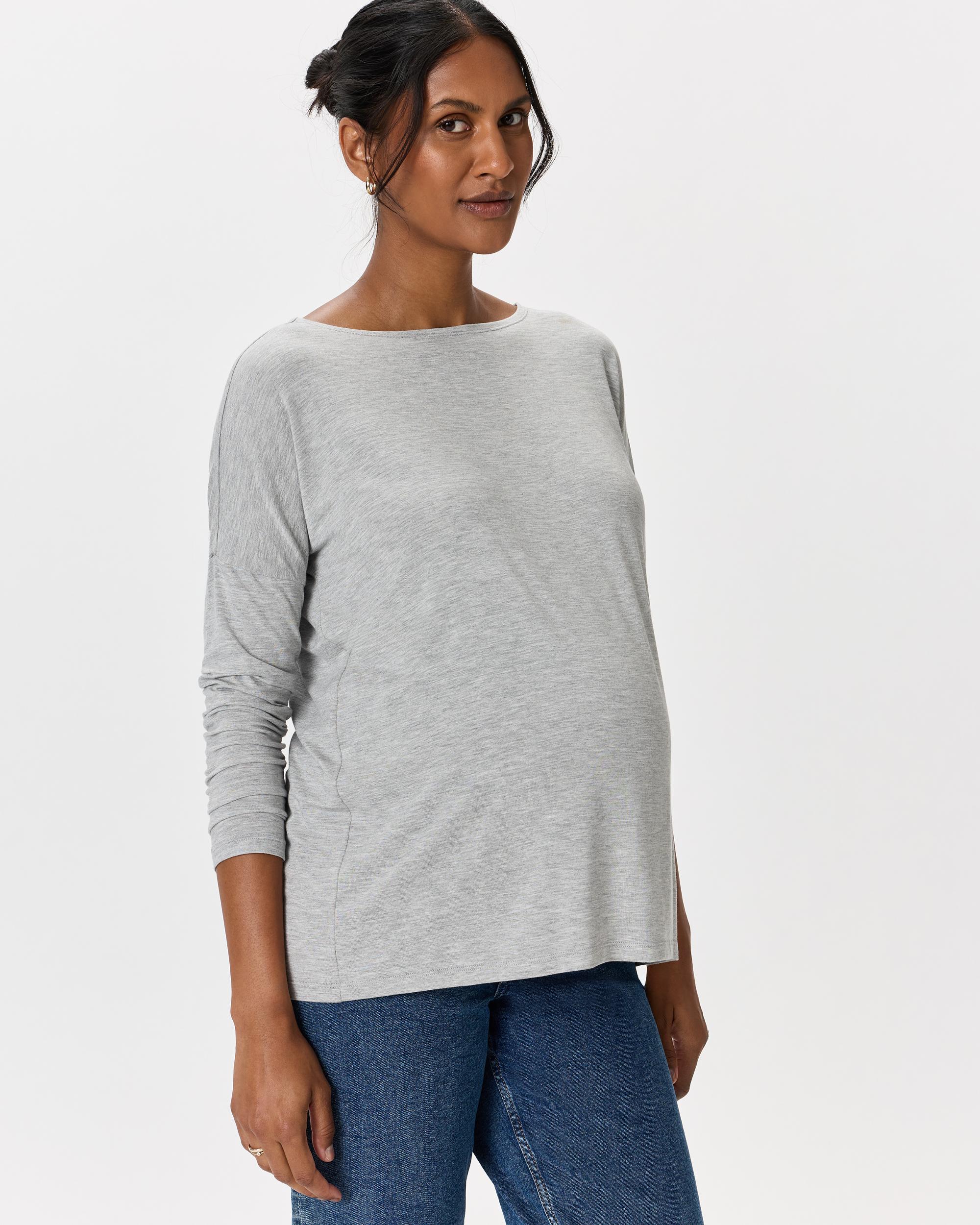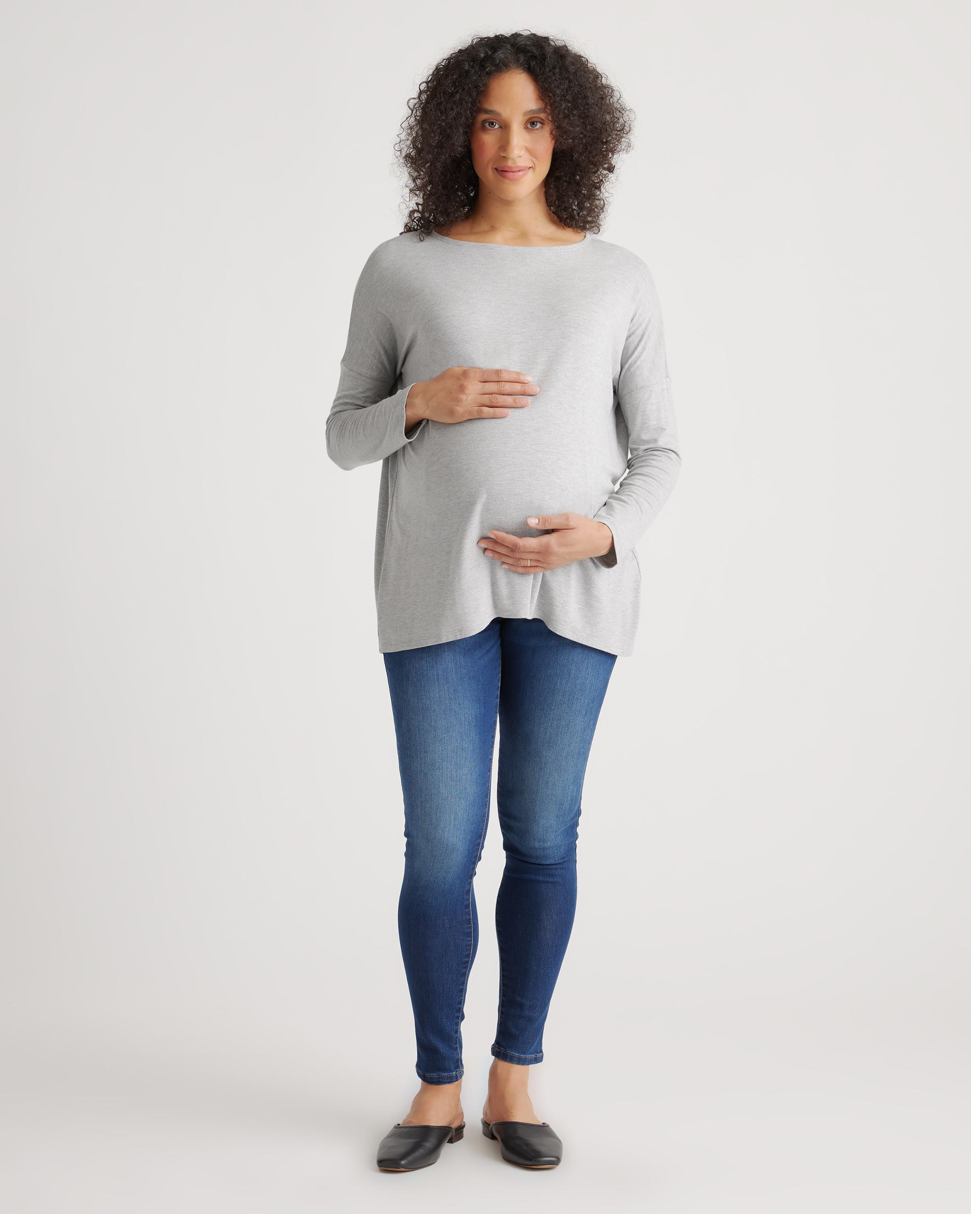 This long sleeve tee is so perfect you will want to live in it! Crafted in our premium rayon from bamboo fabric, with just the right amount of stretch. This oversized boxy tee was designed to accommodate all stages of pregnancy and beyond. The breathable and hypoallergenic fabric will keep you cool in the summer and warm in the winter without irritating your skin. | Quince | Women's Bamboo Jersey Maternity Long Sleeve Boxy T-Shirt 2-Pack in White/Grey, Size Large