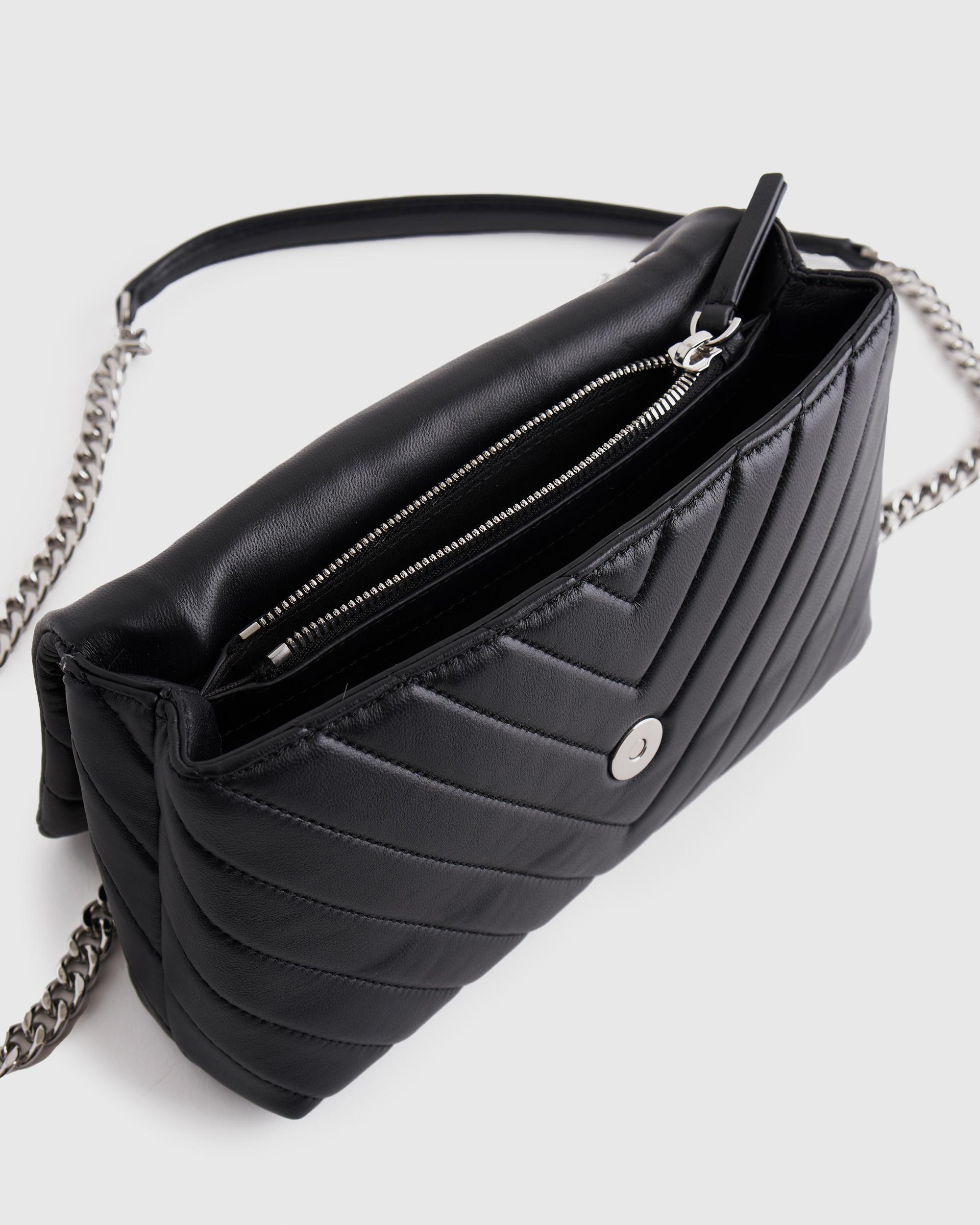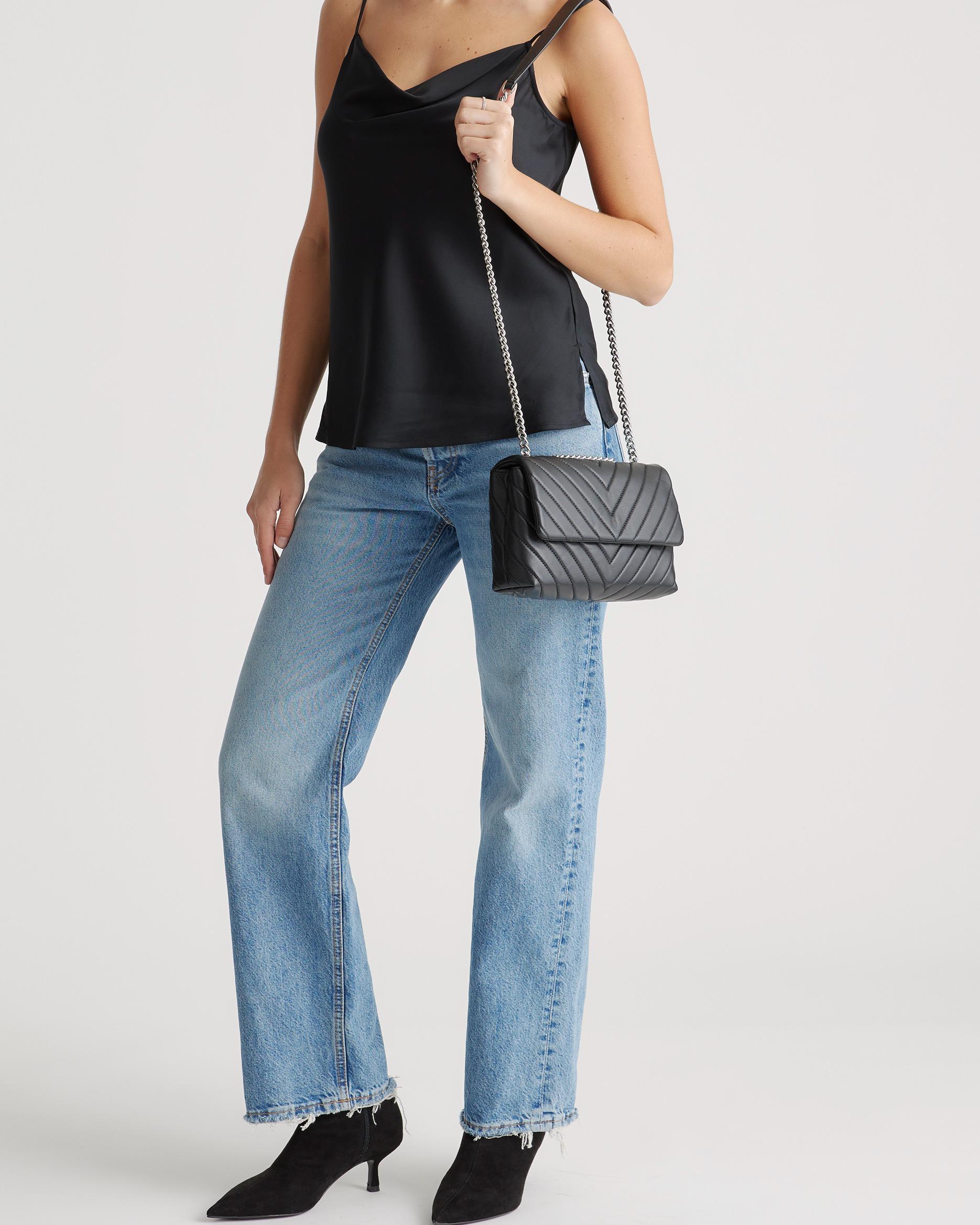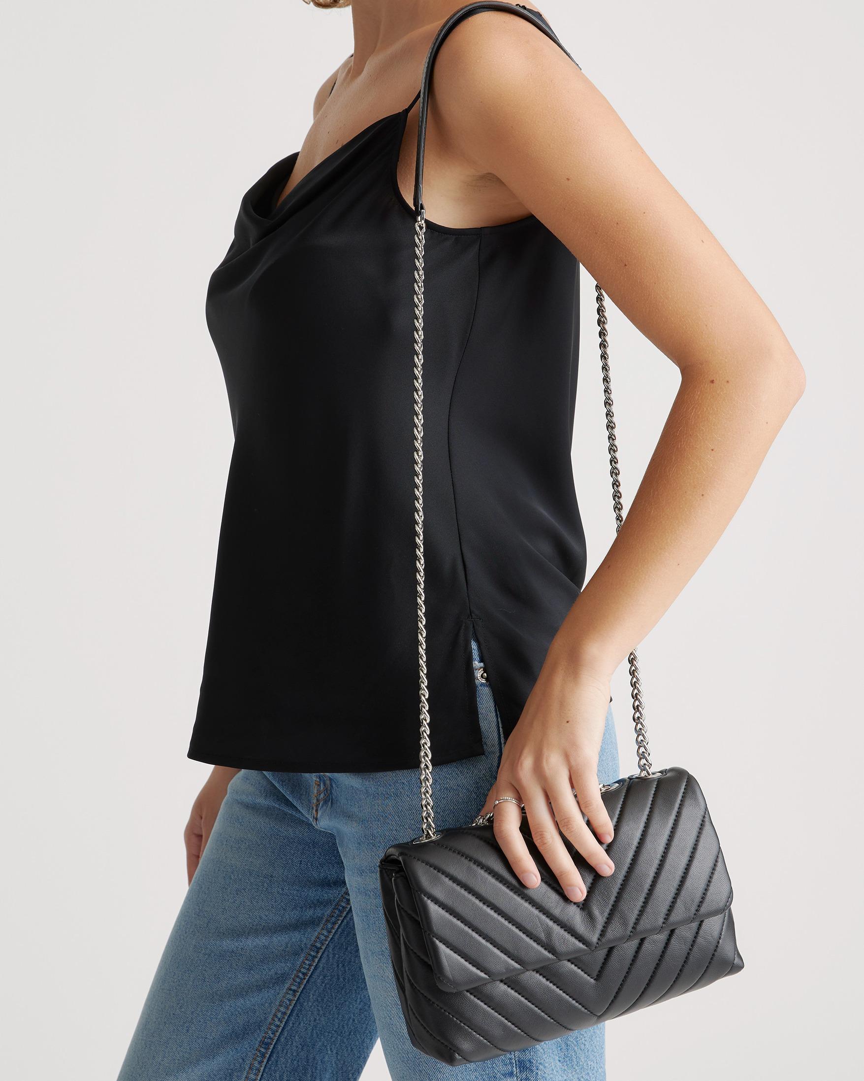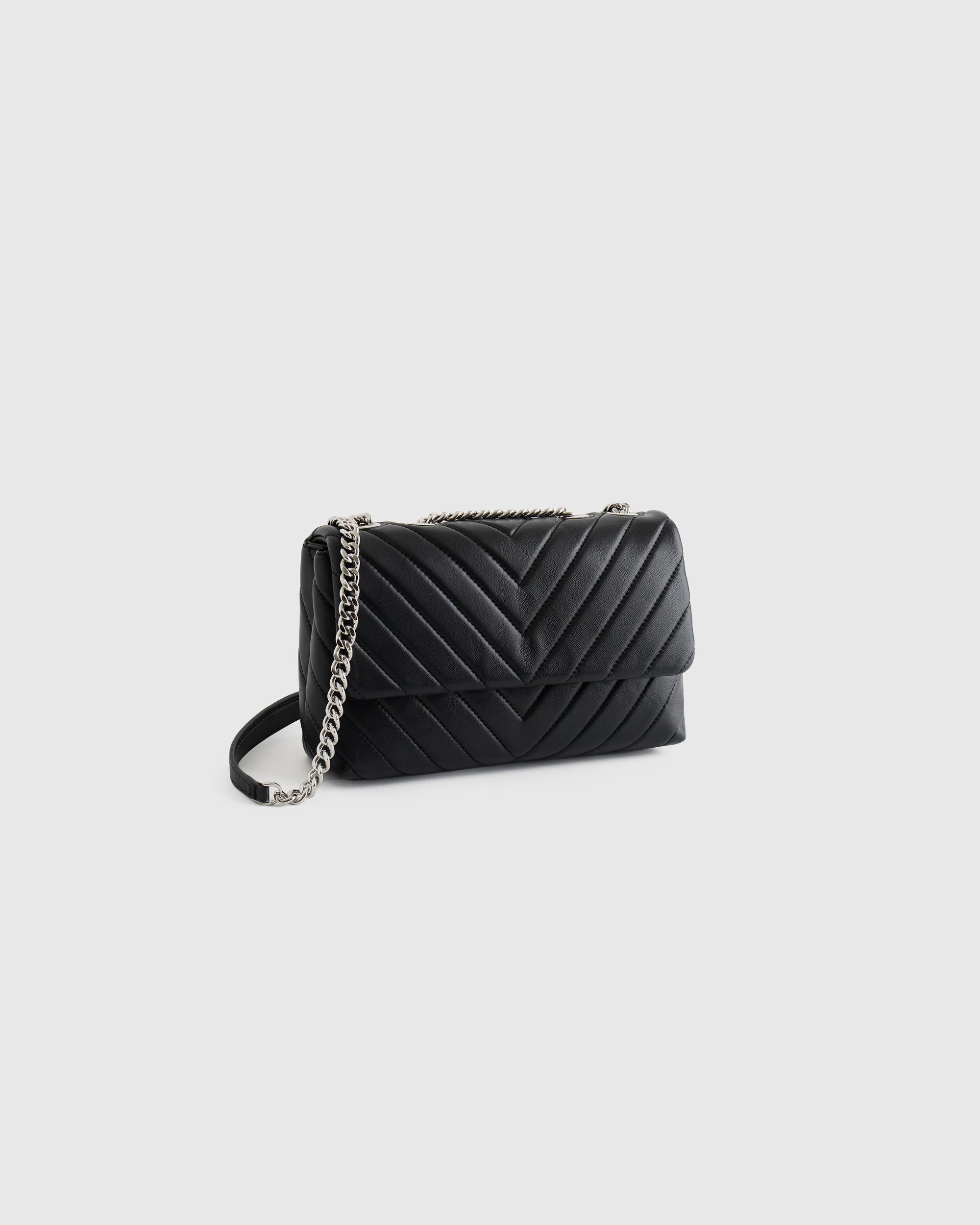 Meet the cherry on top of your outfit sundae. With sumptuous Italian lamb leather quilted into a chevron pattern and a luxe chain strap, this bag will elevate even the most laid-back ensembles. And thanks to the adjustable strap, you’ve got options—wear as a shoulder bag or as a cute crossbody. Looking for something a bit bigger? Check out our Italian Leather Quilted Convertible Shoulder Bag for a more compact version. | Quince | Women's Italian Leather Quilted Convertible Crossbody in Black/Silver
