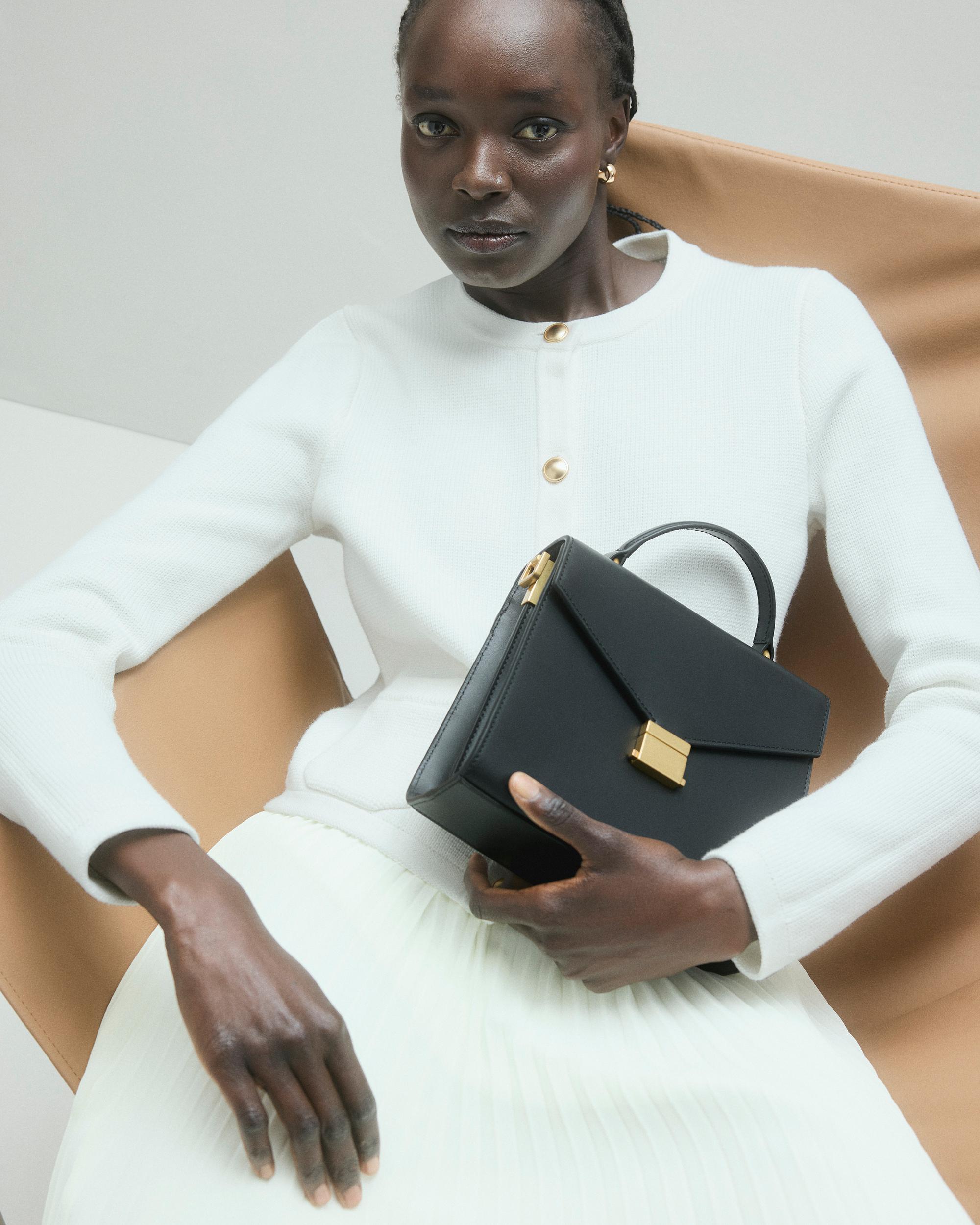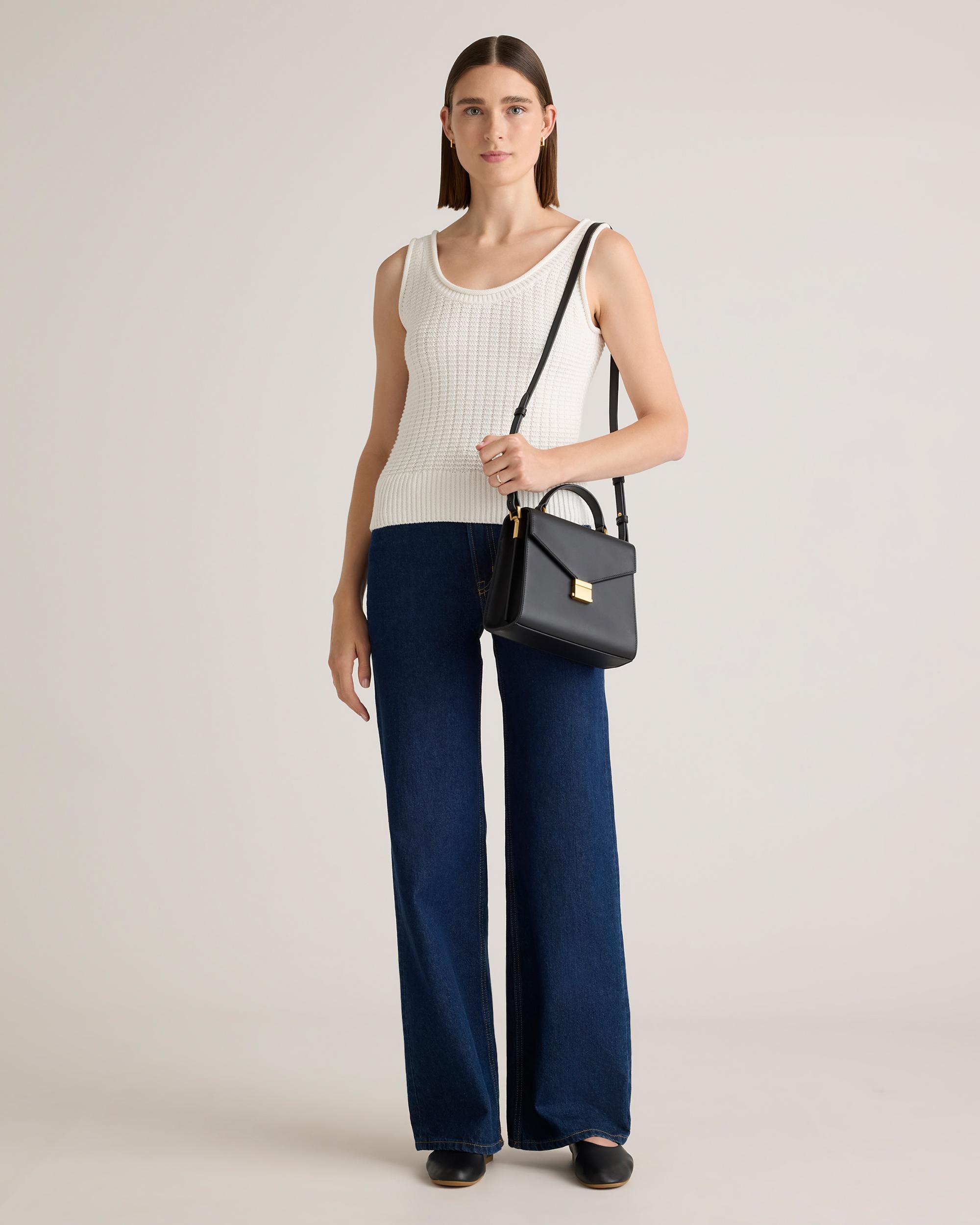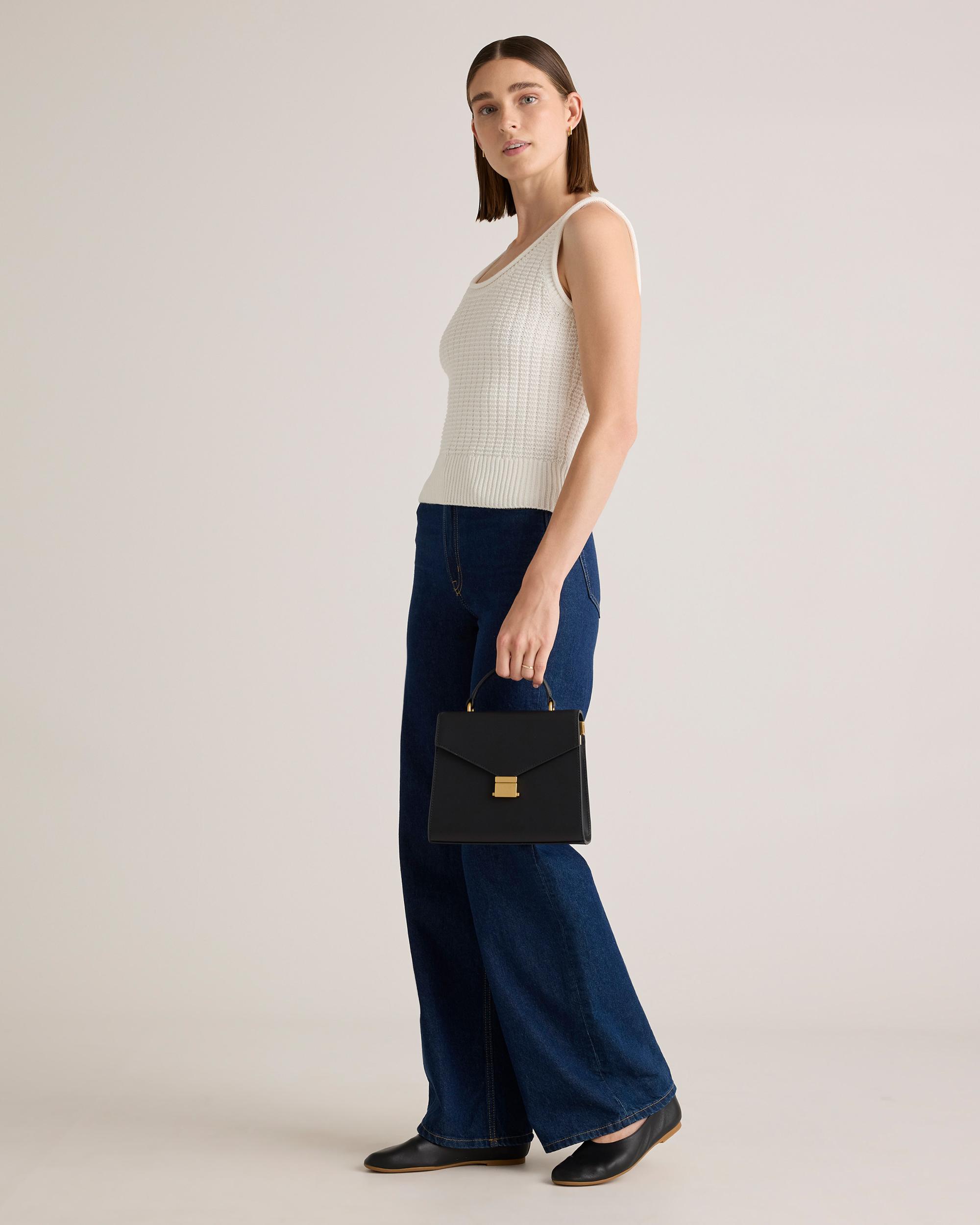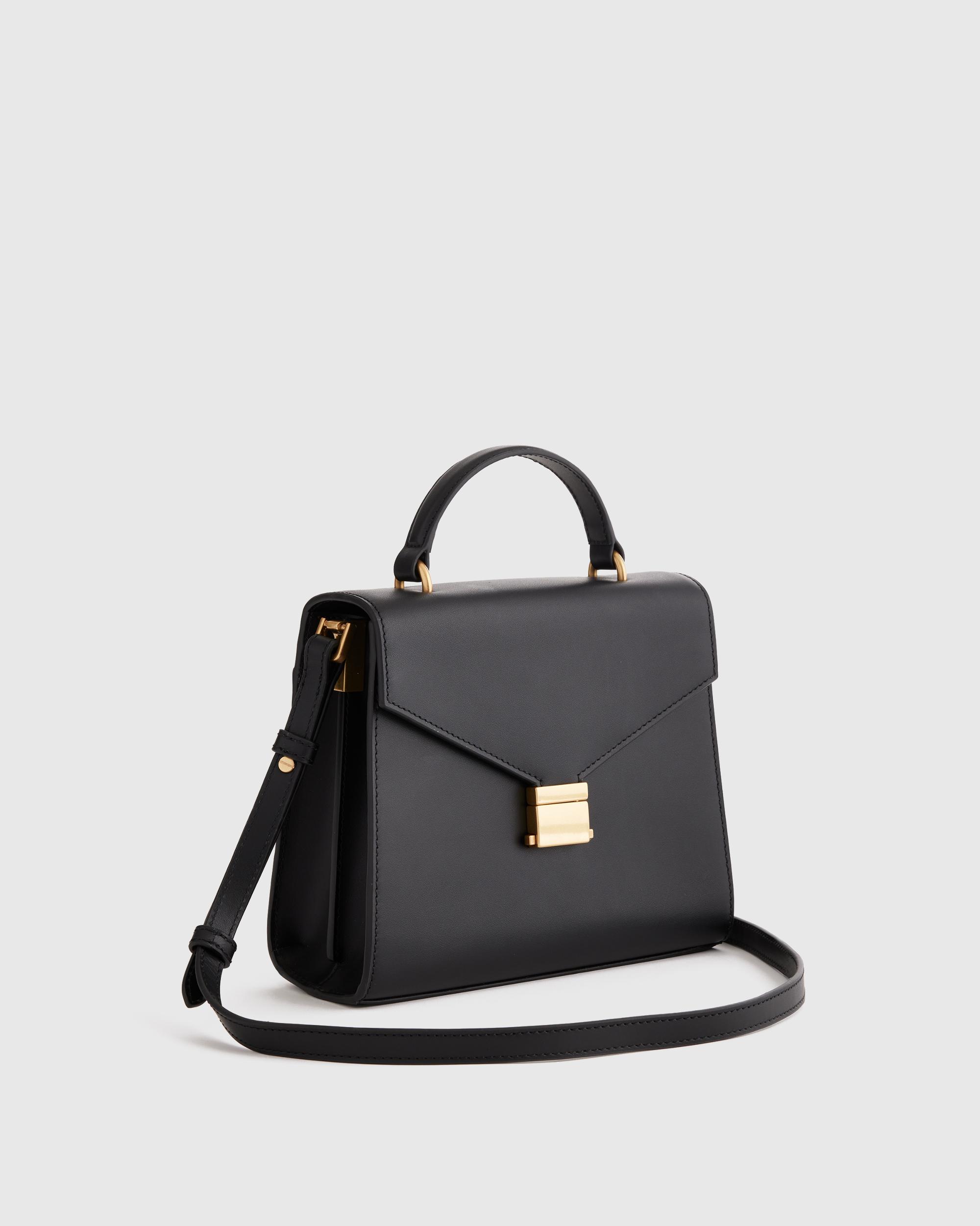 Luxe. Versatile. Perfect size. This chic crossbody checks all the boxes. Crafted from our signature buttery-soft Italian leather, it has a timeless design you’ll reach for again and again. Our favorite detail? The detachable shoulder strap that lets you choose between a crossbody or top-handle carry. | Quince | Women's Italian Leather Top Handle Crossbody Satchel in Black
