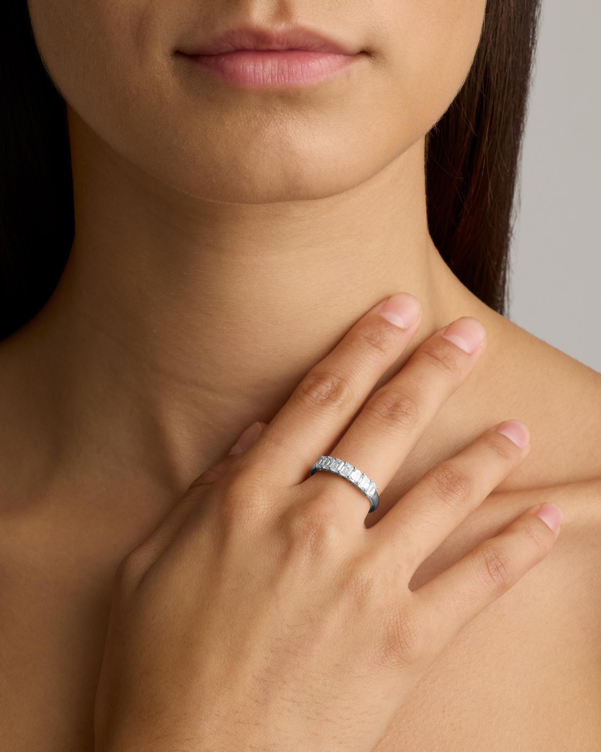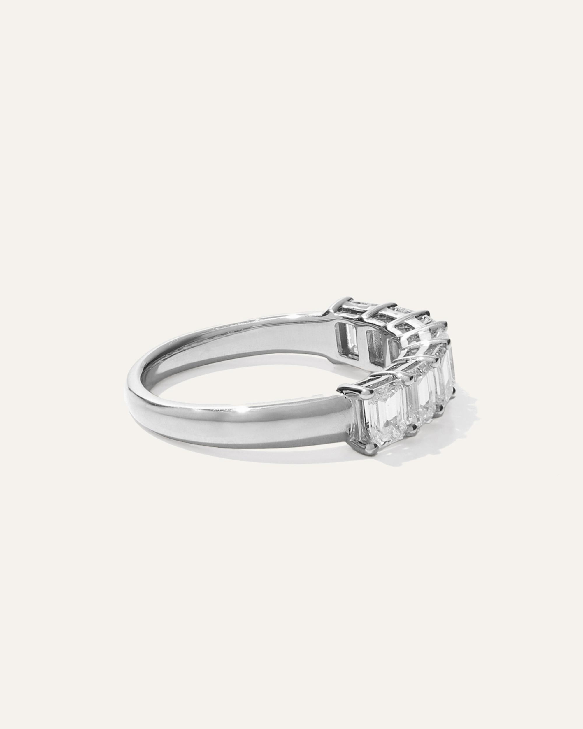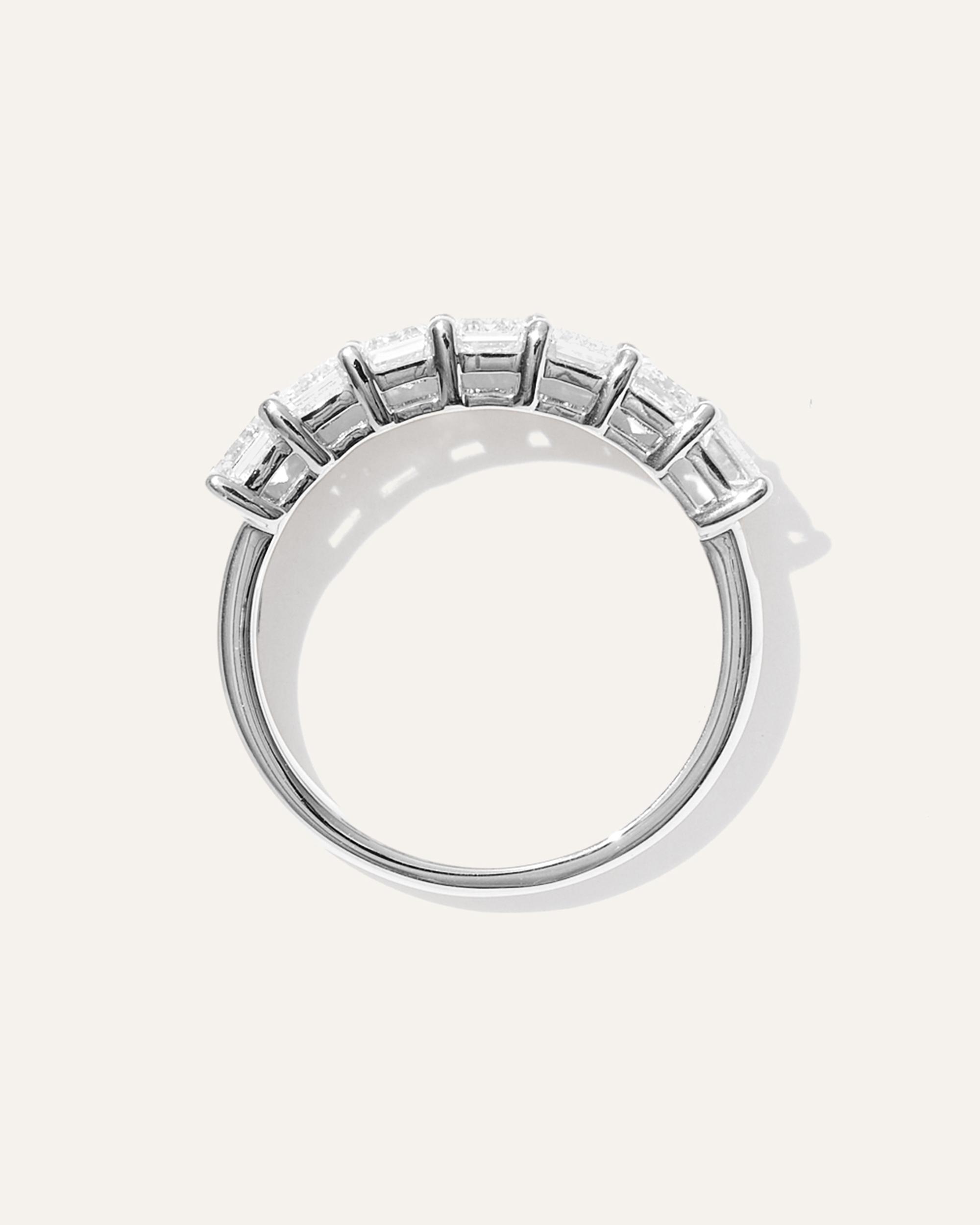 Our exquisite seven-stone band, adorned with emerald-cut lab-grown diamonds exudes a timeless elegance. Offered in two carat weights, this classic ring is ideal for representing your commitment or expressing your unique style. Whether worn alone or stacked with other rings, this band is guaranteed to make a striking impression. | Quince | Women's Lab Grown Diamond Emerald Seven Stone Band Rings in White Gold, Size 11
