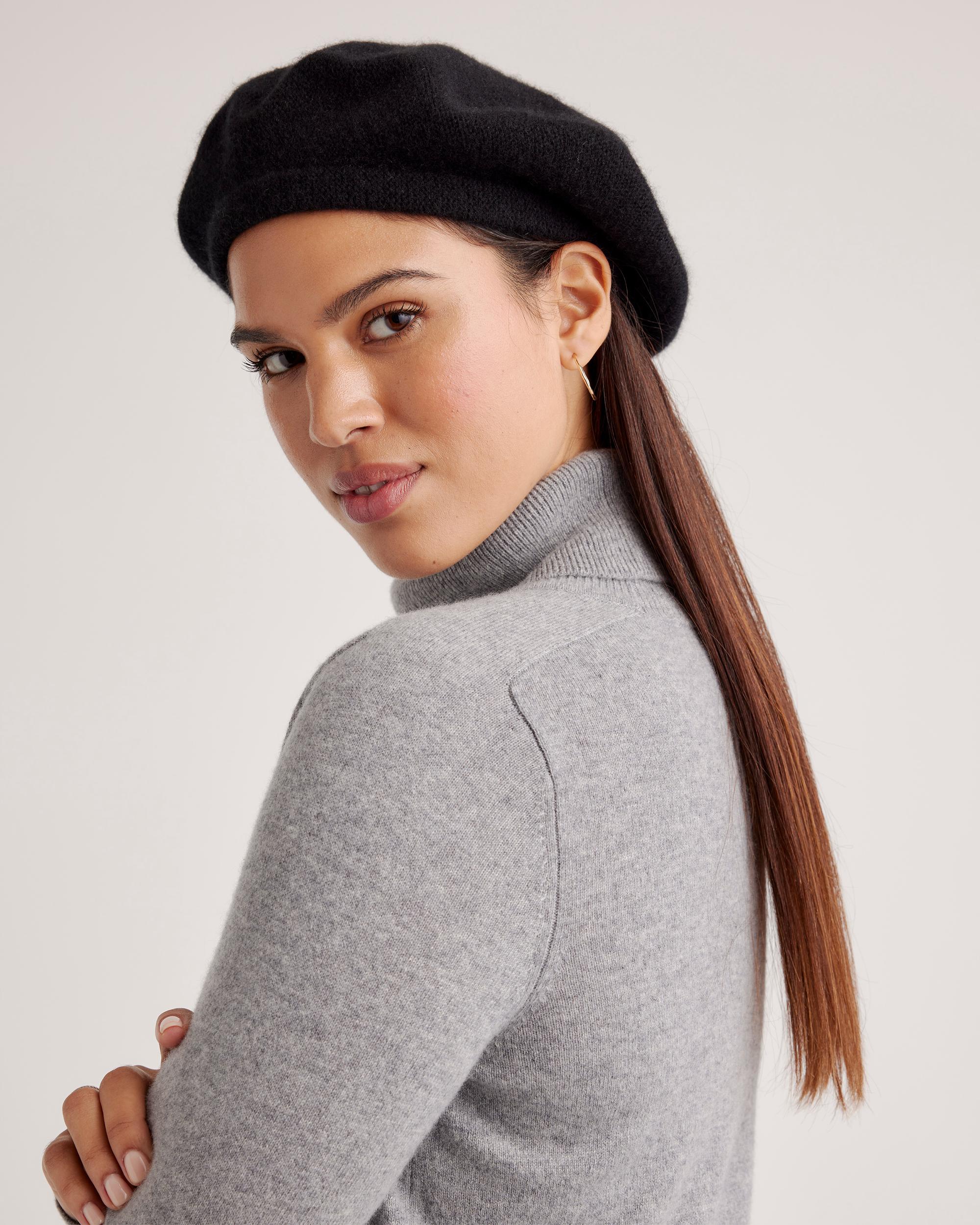 Introducing our new Mongolian Cashmere Beret. Made from the same supersoft cashmere that made us famous (always affordable Grade-A Mongolian, in case you didn't know), this beret is pretty much the softest, most luxe version of warmth you can get. It's definitely going to add a little French-girl cool to your look. | Quince | Women's Mongolian Cashmere Beret in Black
