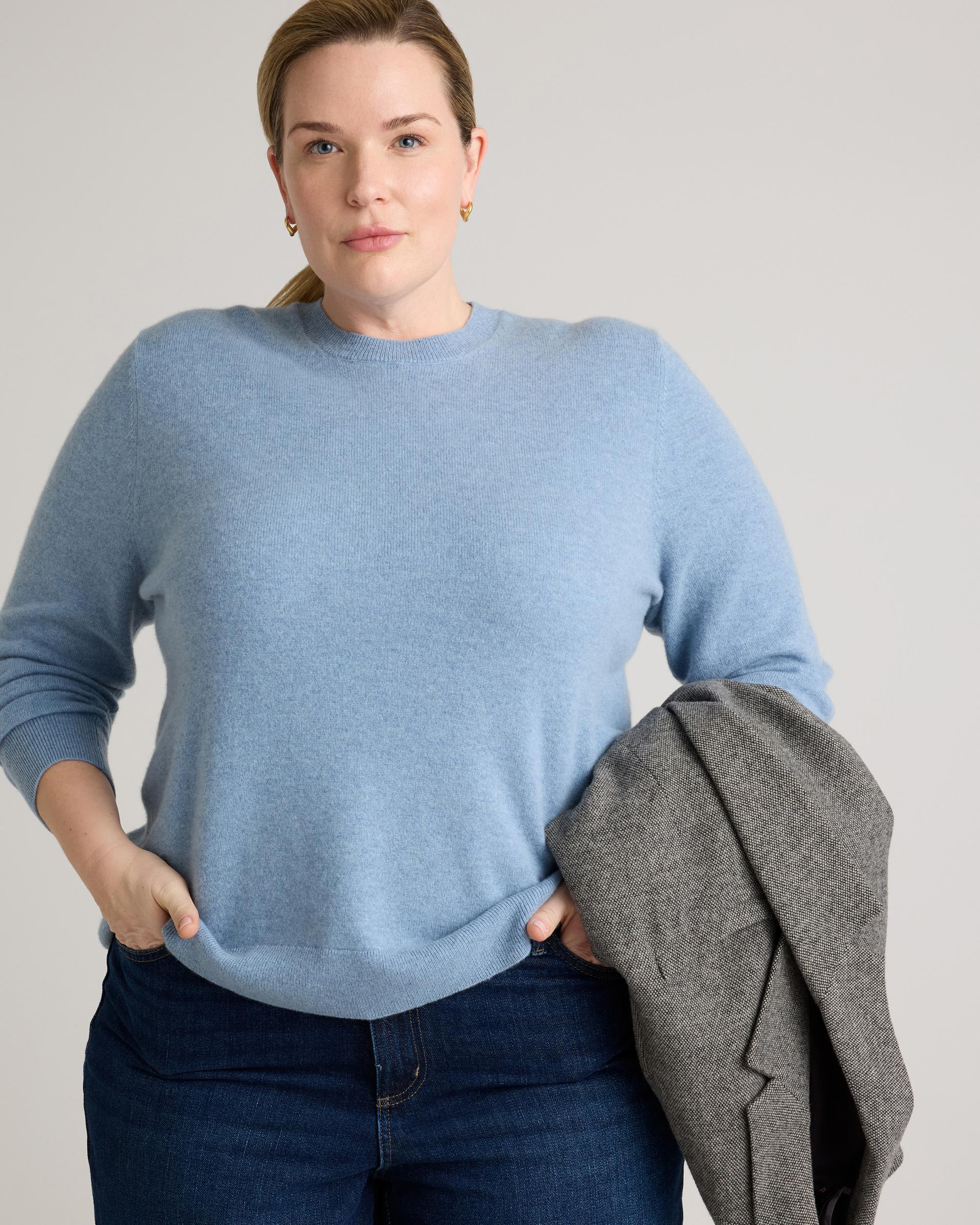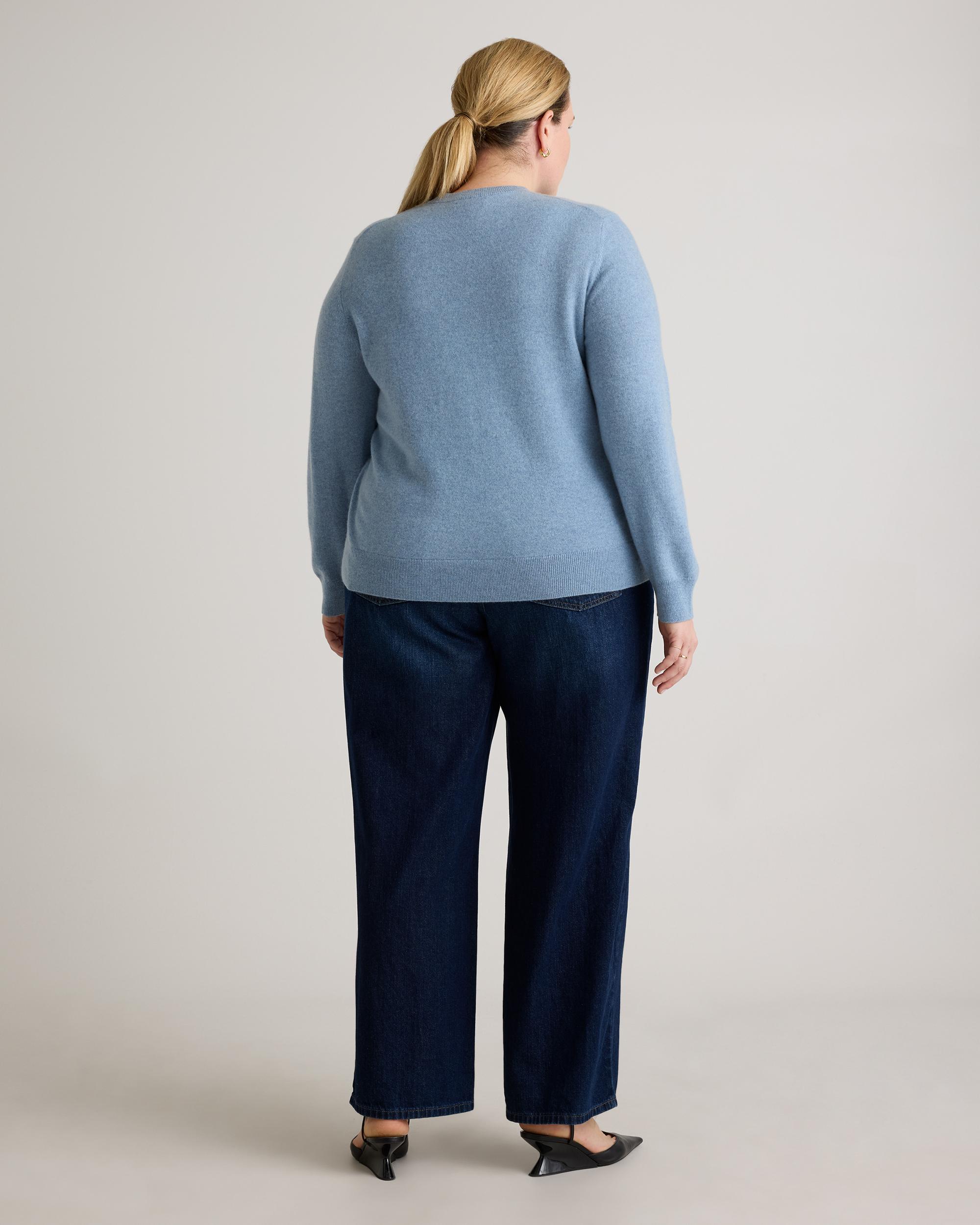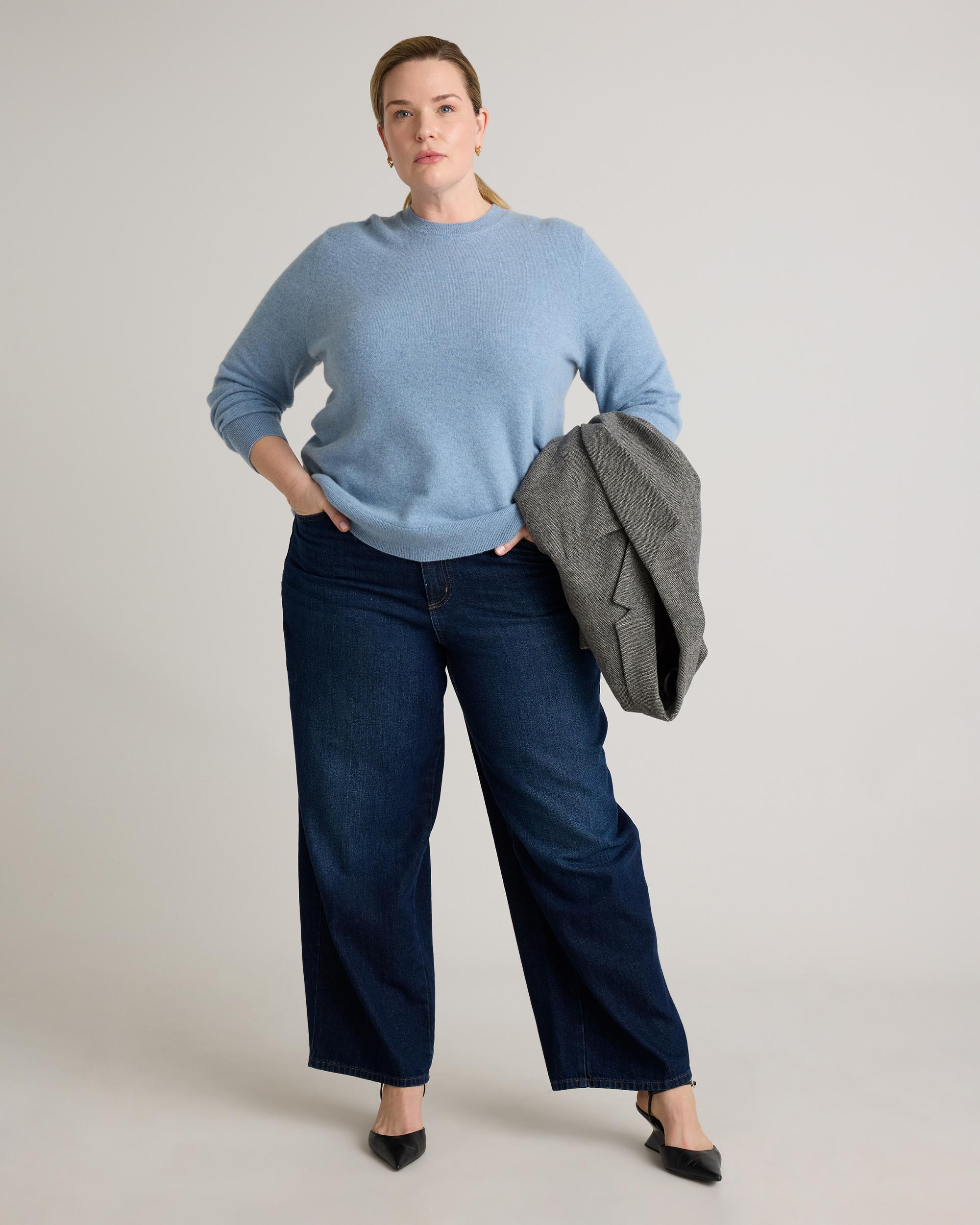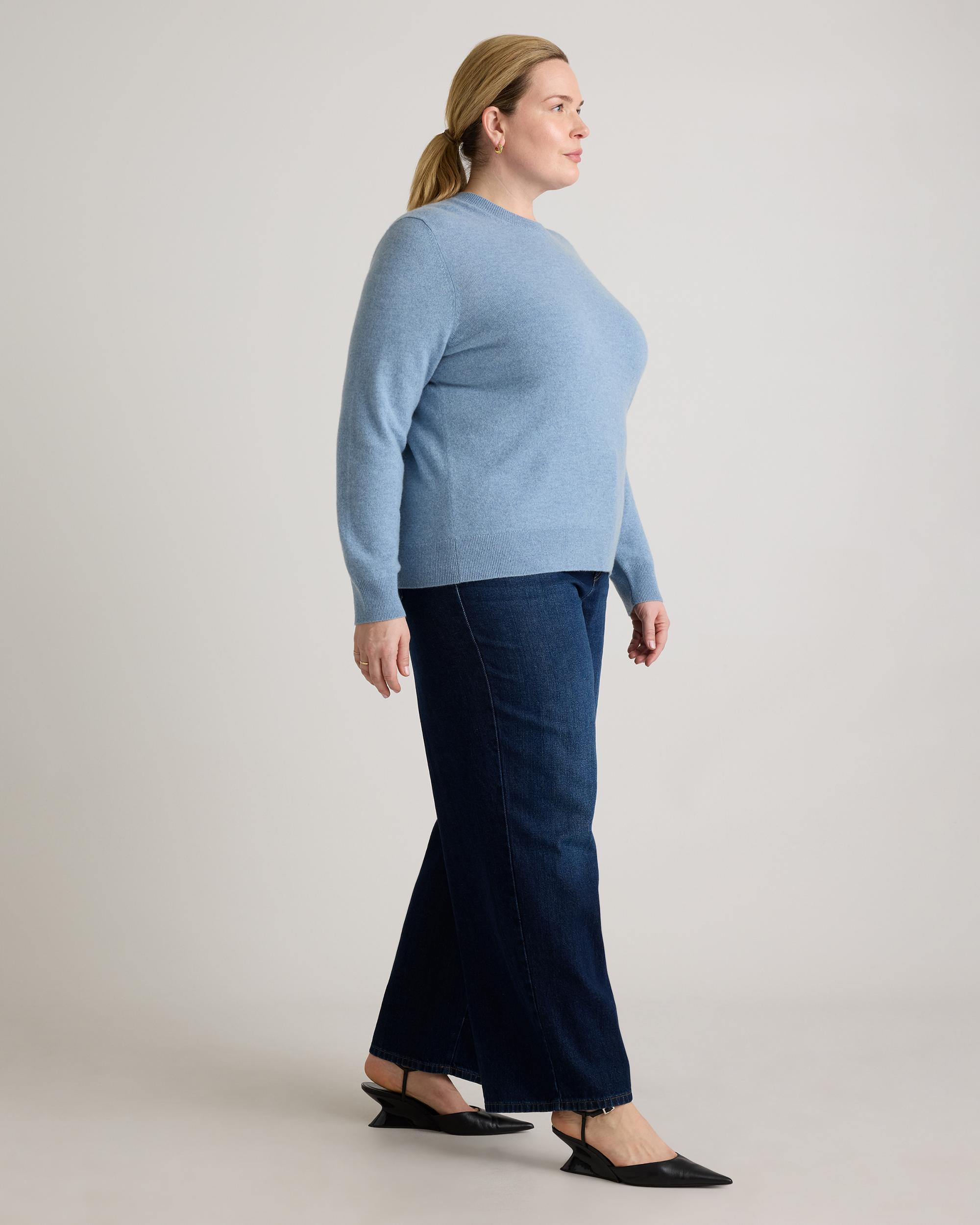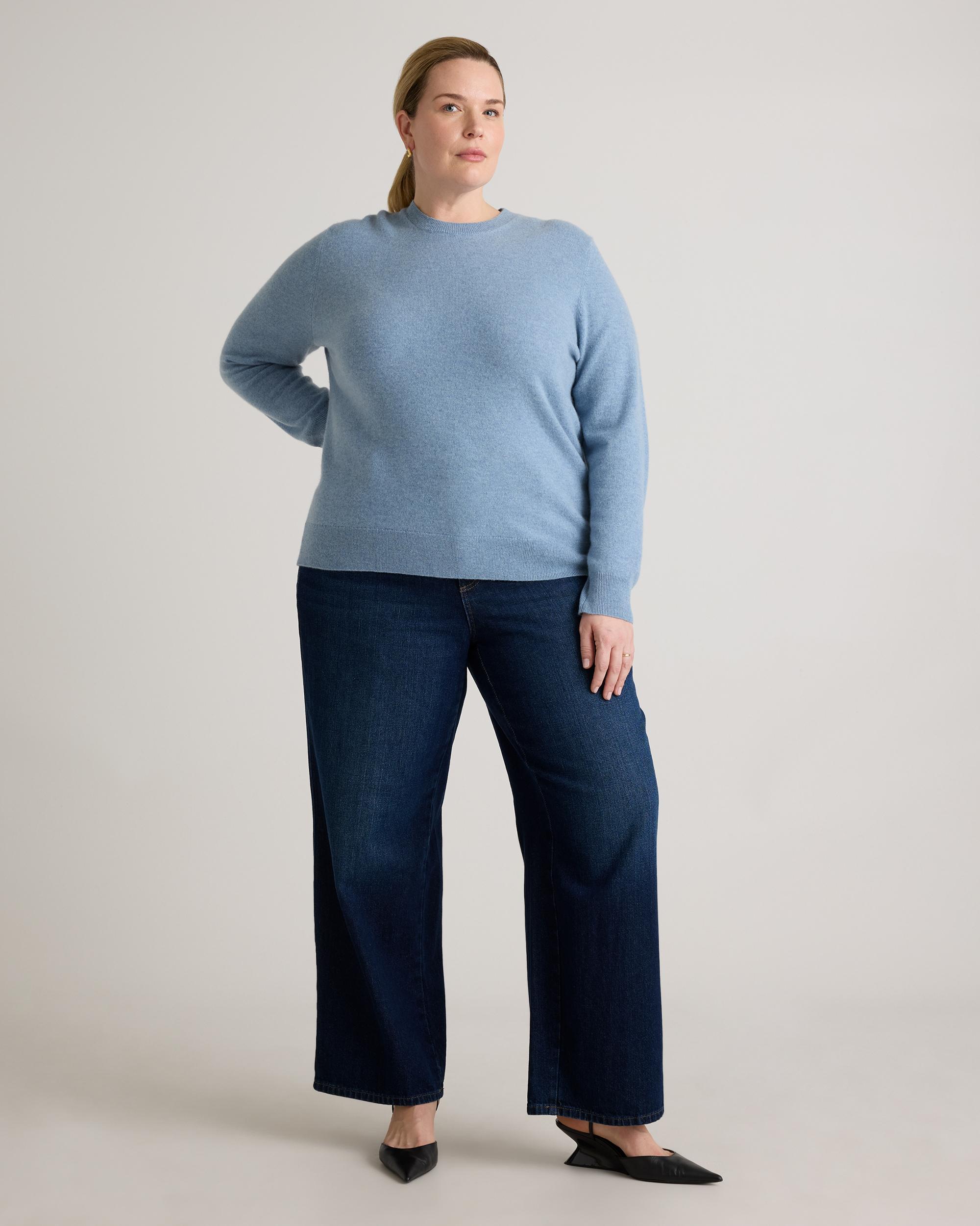 The icon, now spring-ready. Our signature cashmere crew is luxuriously soft and surprisingly breathable. Perfect for layering on chillier mornings or pairing with crisp cotton bottoms for a fresh, transitional look. Plus it's made from our upgraded, pill-resistant cashmere that’s smooth, durable, and sustainably sourced. Read more on what makes it special in our Cashmere 101.Also offered in sizes XS-XL. | Quince | Women's Mongolian Cashmere Crewneck Sweater in Faded Denim, Size 2X