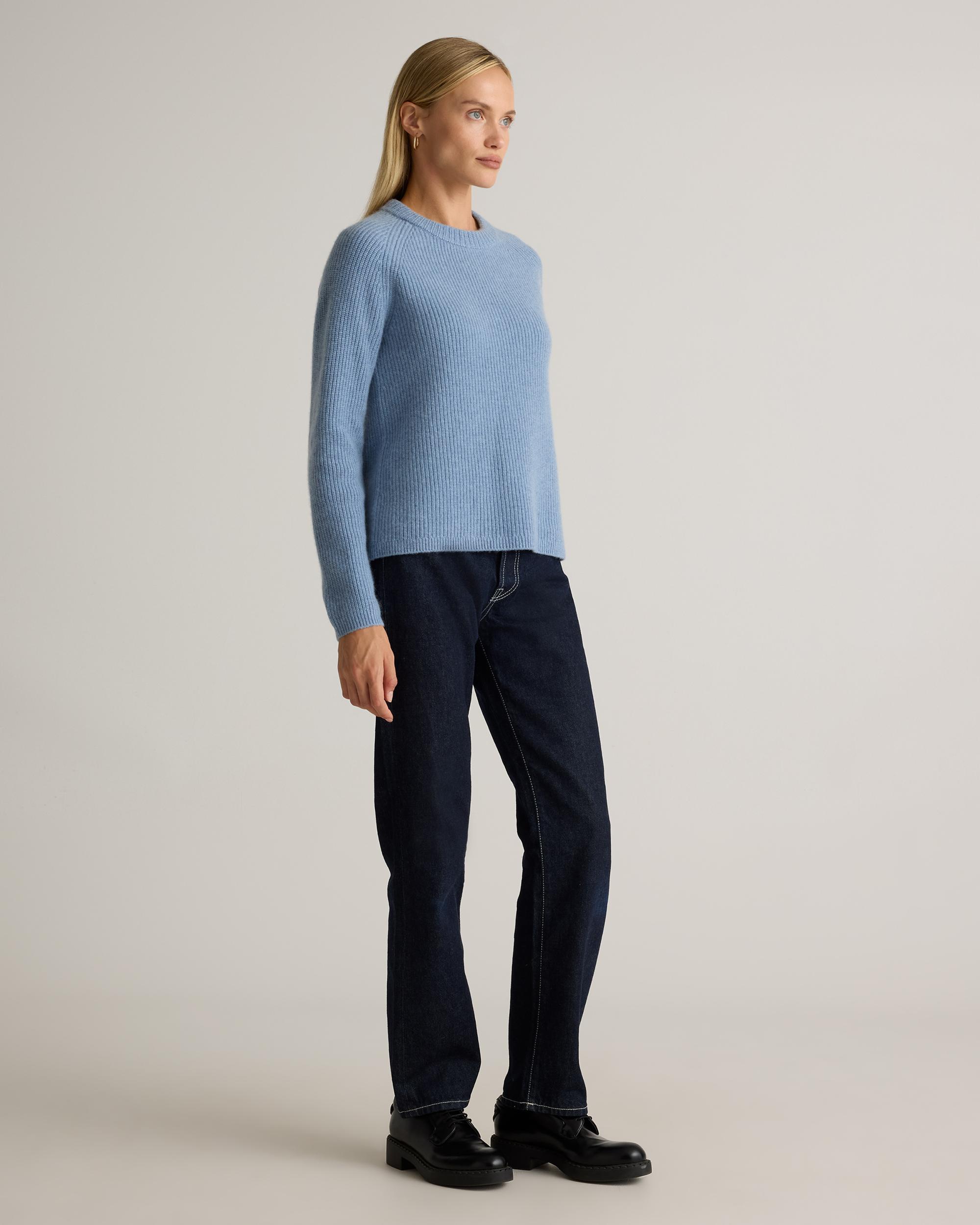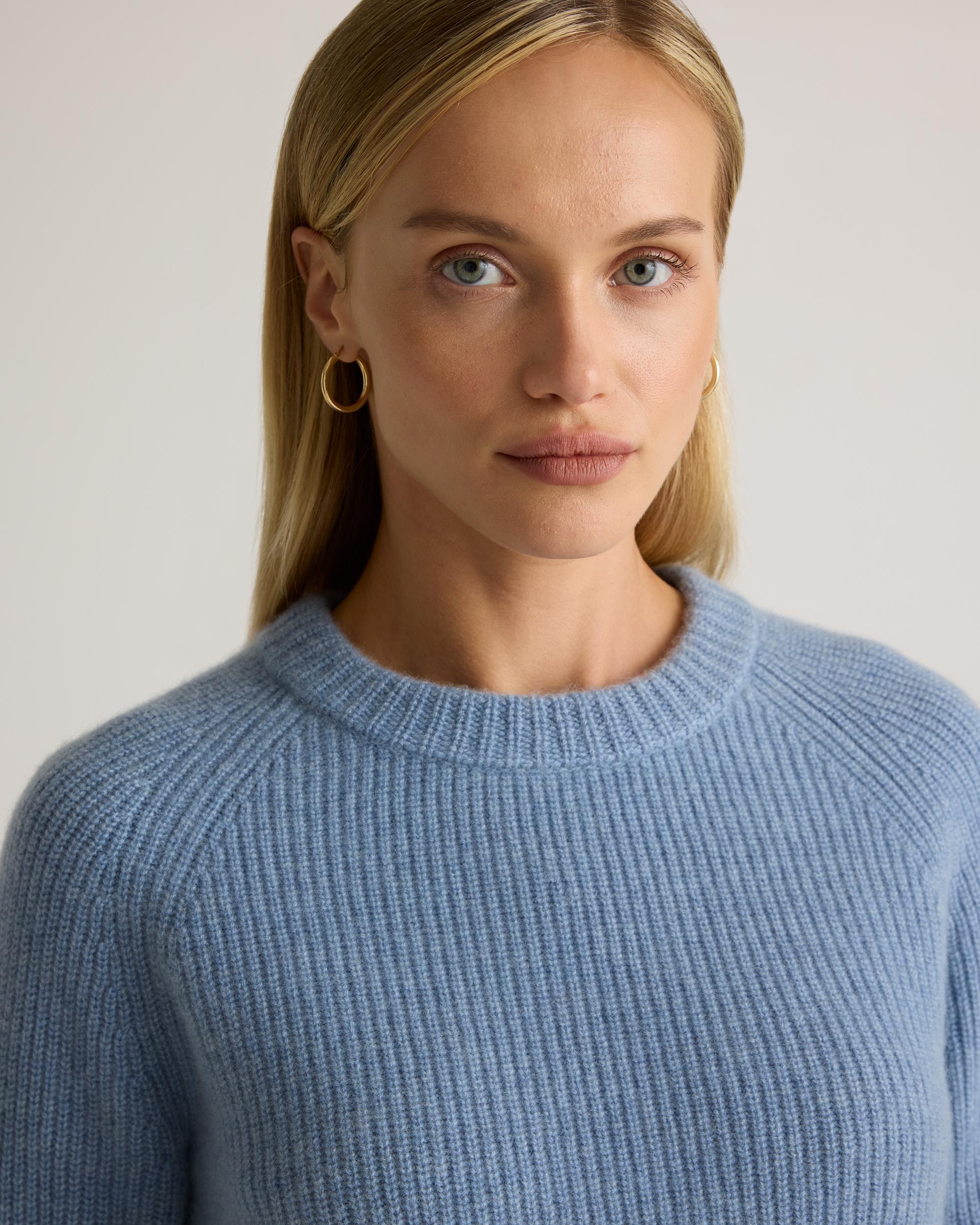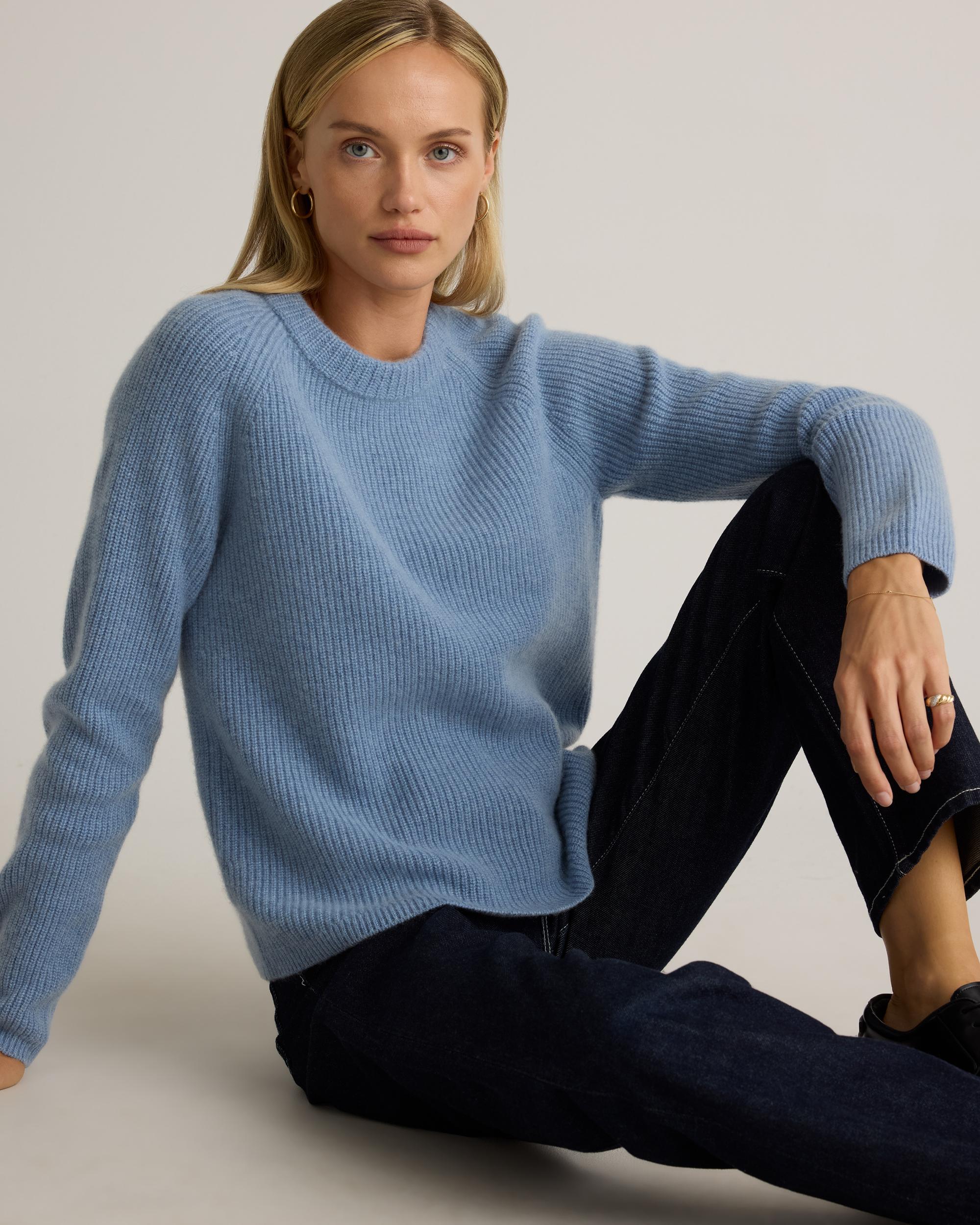 Who can resist a classic fisherman knit—especially when it's in cashmere? Our sustainably sourced cashmere is not only three times warmer than wool but also incredibly durable. We've upgraded it to be smoother, cozier, and more substantial than ever, with less pilling. Discover what makes it special in our Cashmere 101.Also offered in sizes 1X - 3X. | Quince | Women's Mongolian Cashmere Fisherman Crewneck Sweater in Faded Denim, Size Small