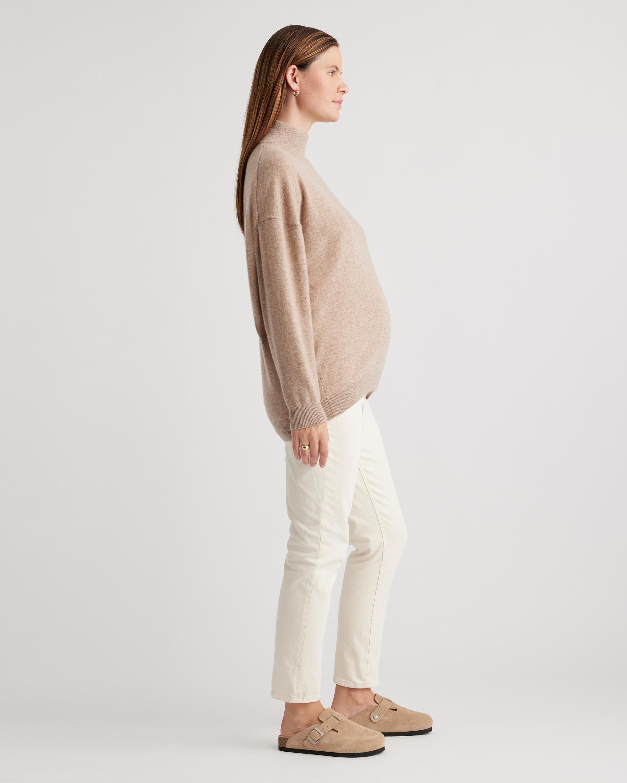 Comfort and softness matter even more right now, so keep this Mongolian Cashmere Turtleneck Sweater in your outfit queue. Made from Grade-A Mongolian cashmere, its soft, cozy warmth is a welcome luxury while you're expecting. | Quince | Women's Mongolian Cashmere Maternity Turtleneck Sweater in Oatmeal, Size XS