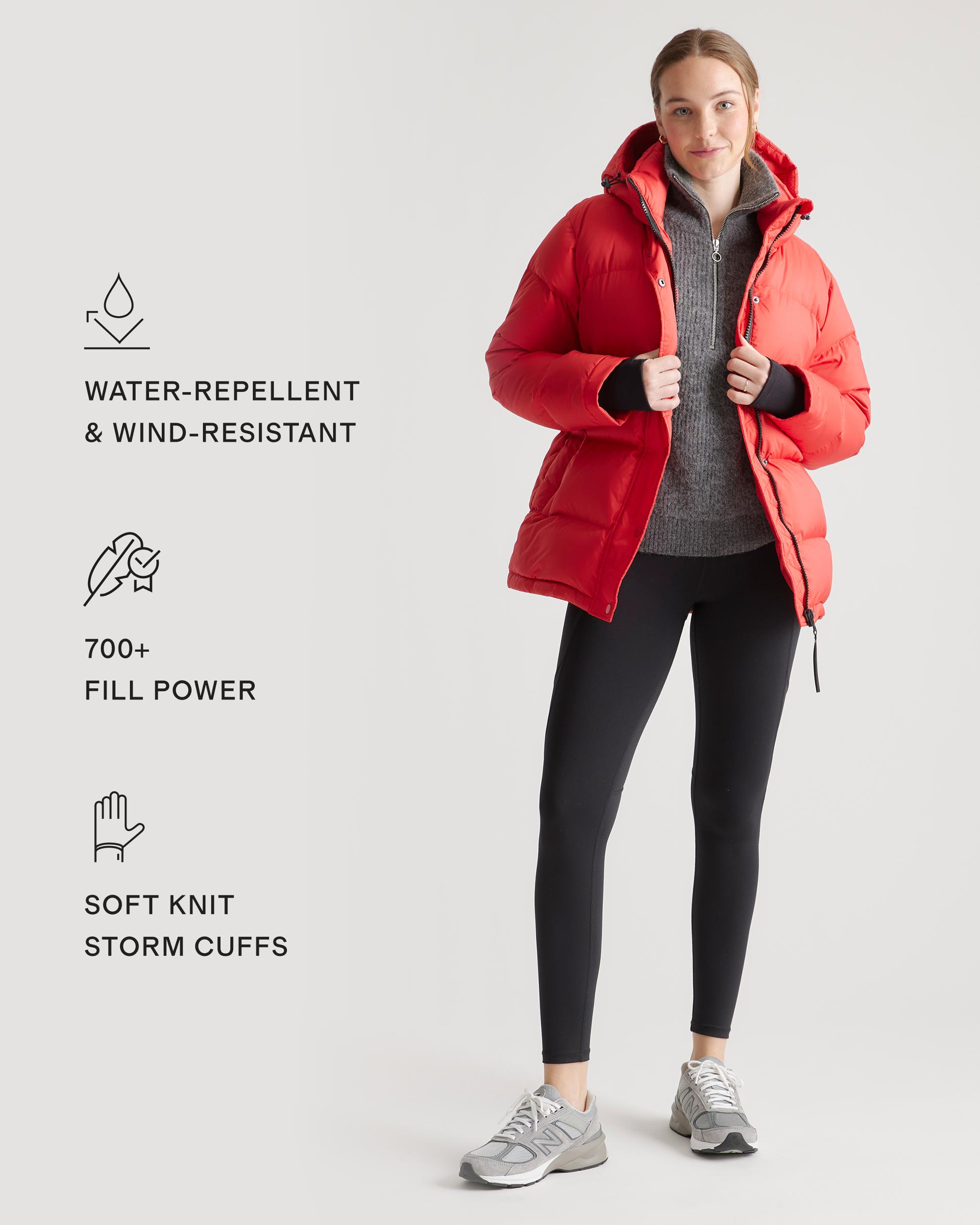 The perfect jacket for your cold-weather adventures is here: our Responsible Down Puffer Jacket. You'll be warm all winter long thanks to the water-repellent and wind-resistant fabric. Bonus: Our down products are sourced responsibly to ensure best practices in animal welfare. Meet your new winter wardrobe essential and enjoy it for years to come. | Quince | Women's Responsible Down Puffer Jacket in Red, Size XS, Recycled Polyester