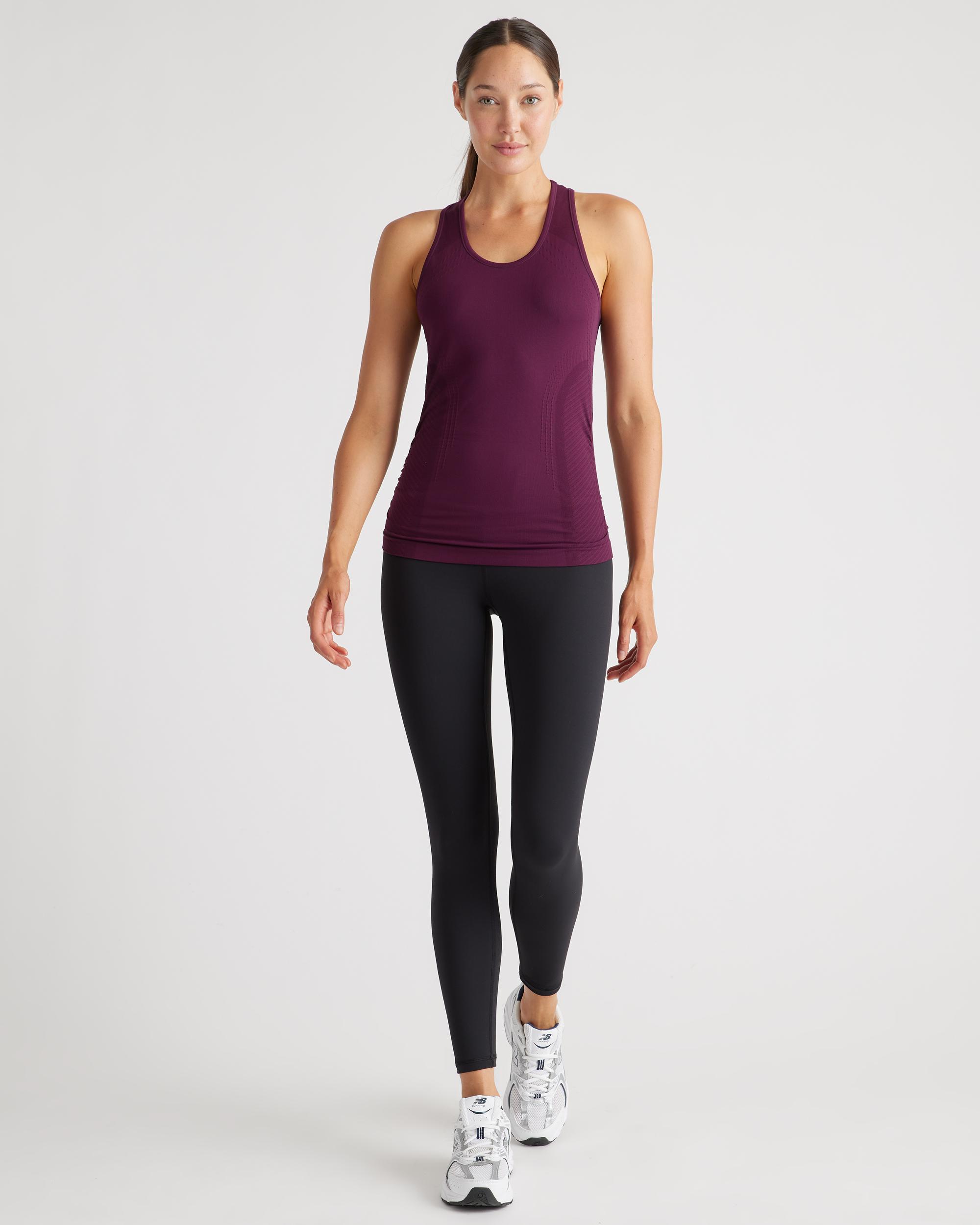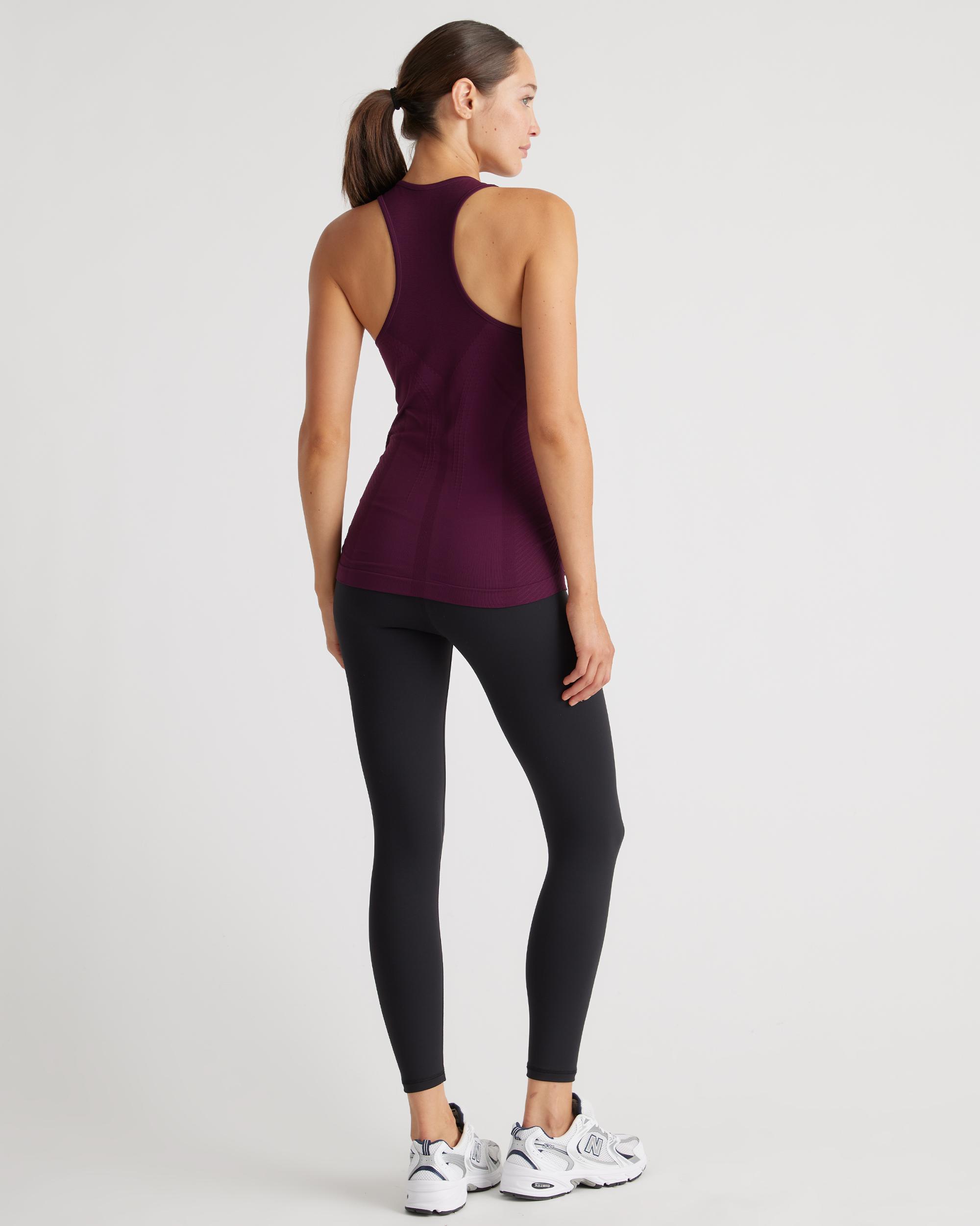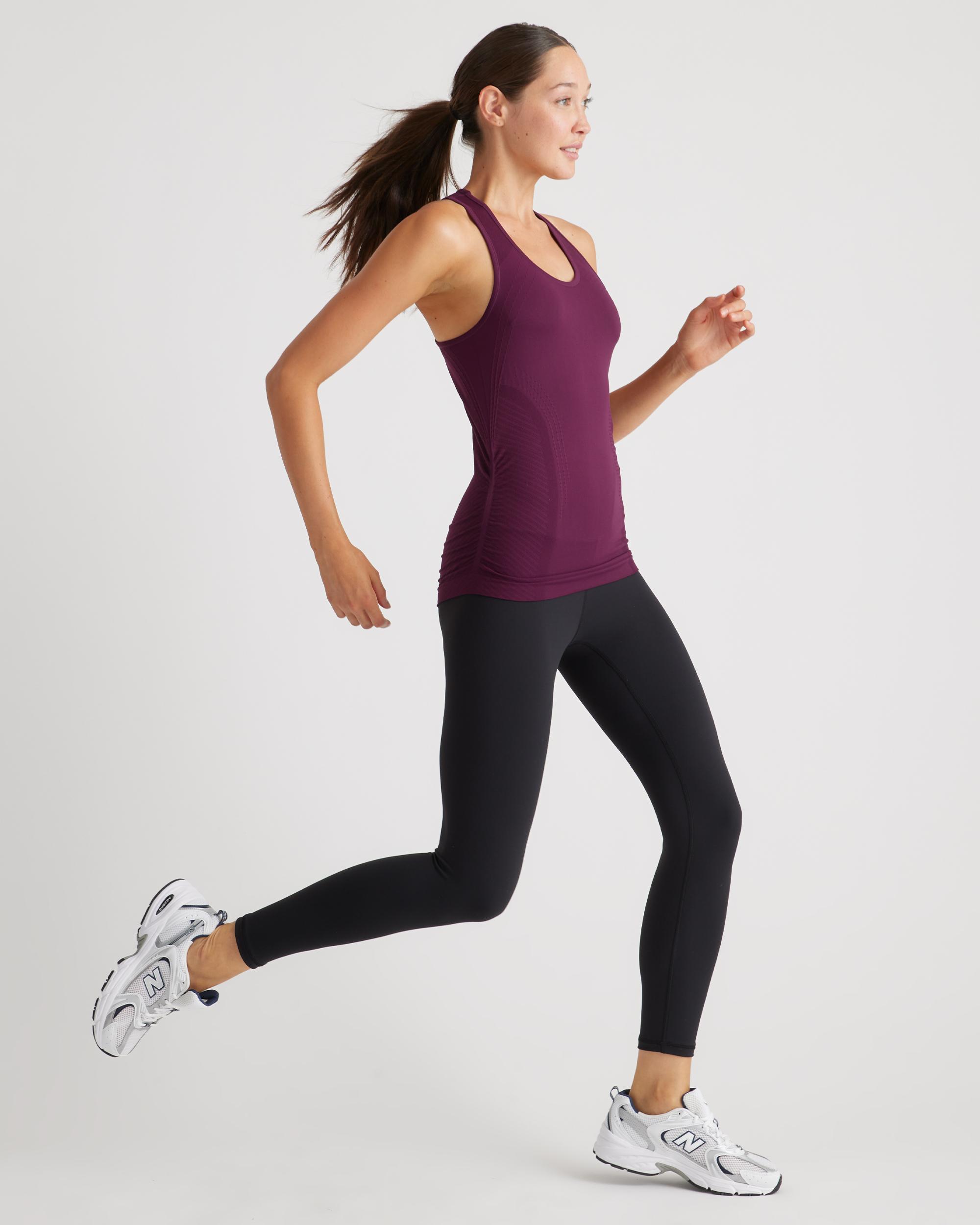 Experience the ultimate freedom of movement and comfort with our Seamless Ruched Racerback Tank. The internal hem-grippers ensure a secure and stay-put fit, allowing you to focus on your performance. With its 4-way stretch fabric, this tank adapts to your every move, while the side ruching adds a flattering touch. Elevate your workout and stay at the top of your game with our Seamless Ruched Racerback Tank. Also available in a long sleeve for added coverage and versatility. | Quince | Women's Seamless Ruched Racerback Tank Top in Plum, Size Large, Nylon