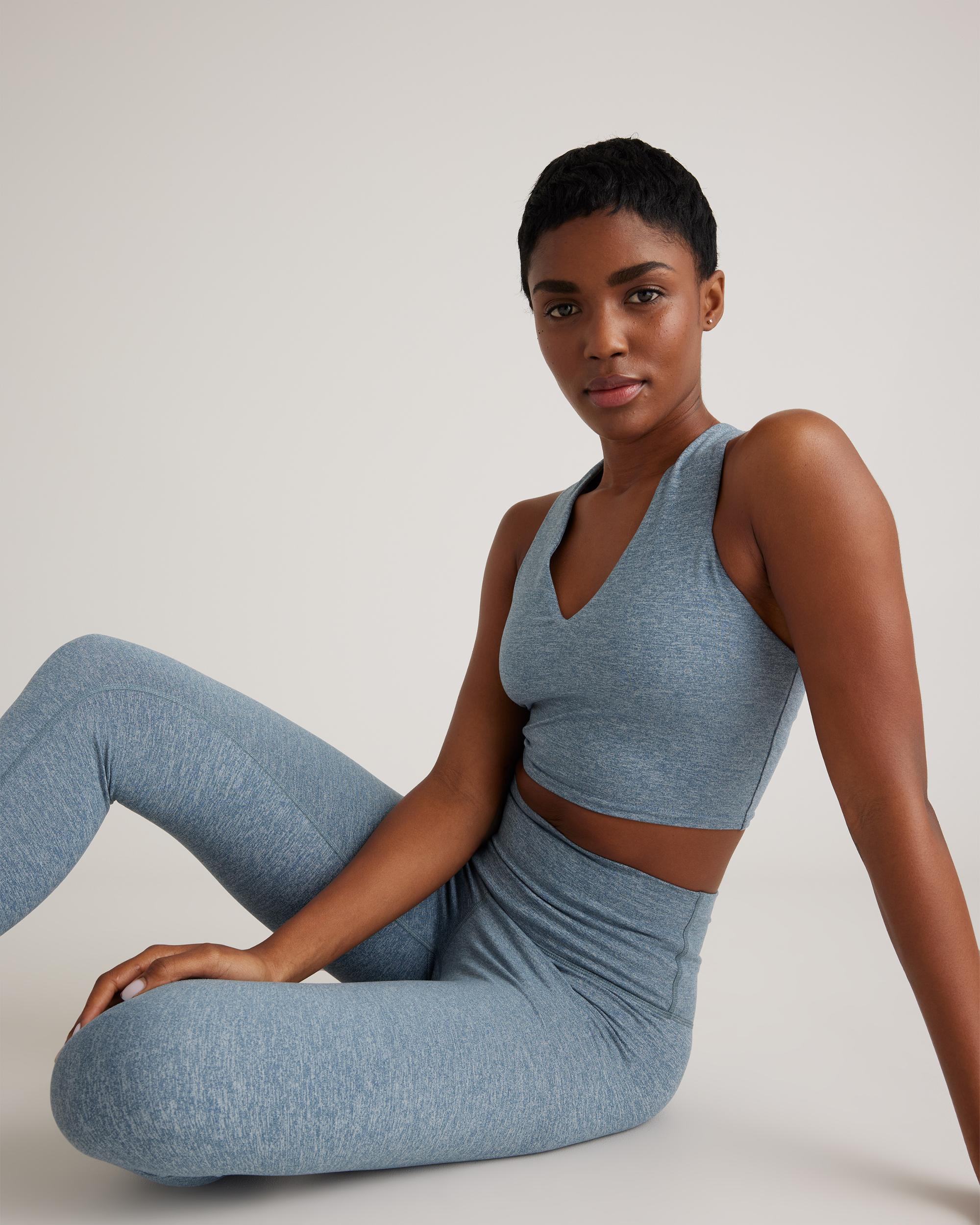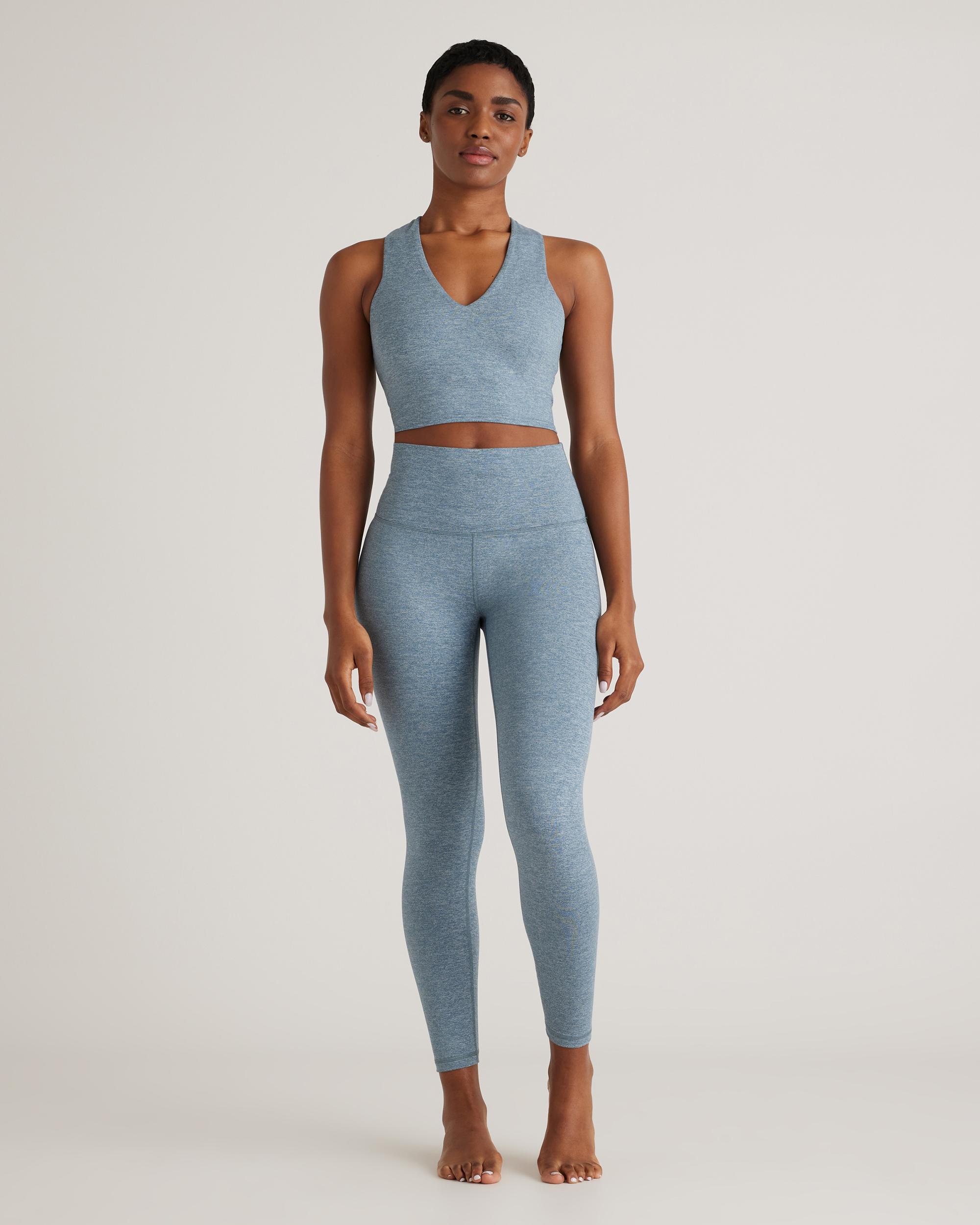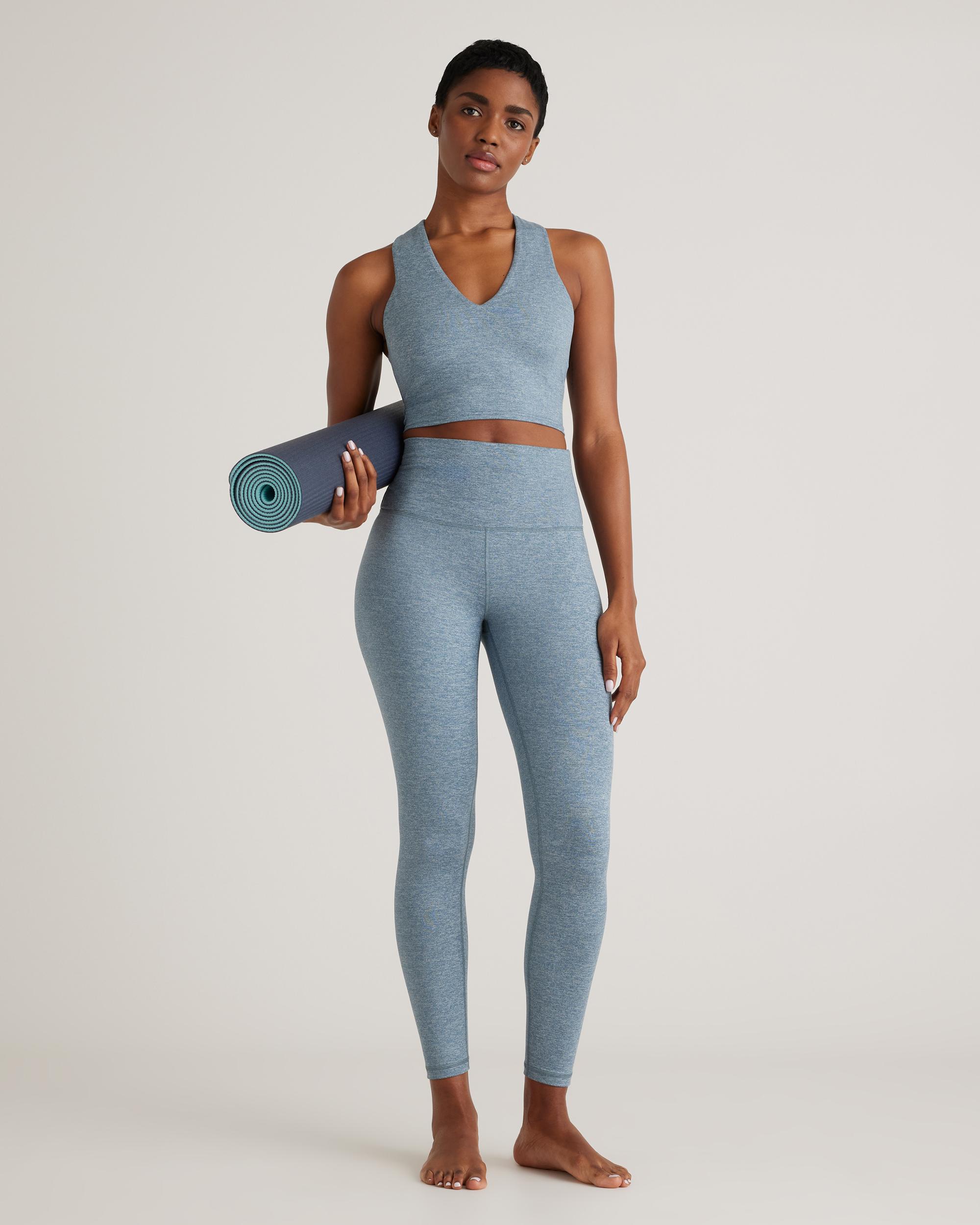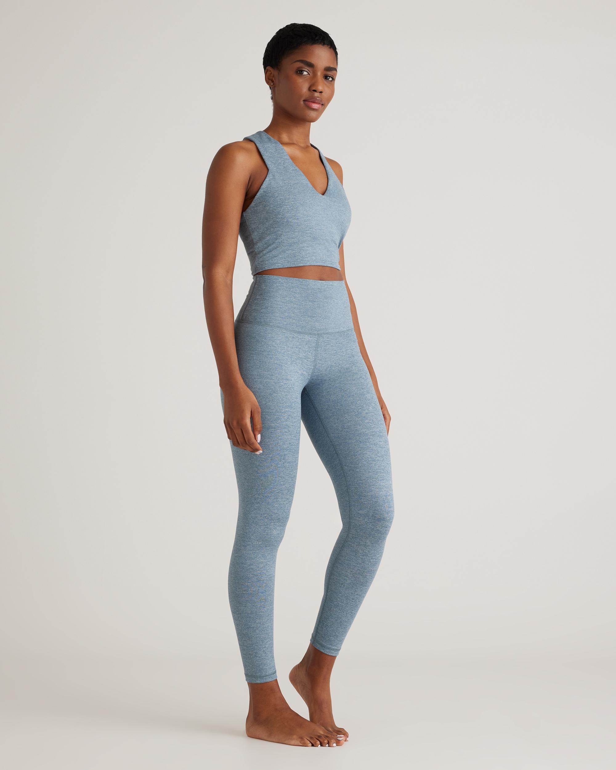 Our Ultra-Soft High-Rise Legging is sure to become your new favorite pair of leggings. These super soft leggings are perfect for yoga classes, low impact exercises and all-day wear. Just because they are soft does not mean they compromise on performance qualities - our Ultra-Soft fabric features moisture-wicking and anti-microbial technology with the 4-way stretch. | Quince | Women's Ultra-Soft High-Rise Legging in Heather Sky Blue, Size Large, Recycled Polyester