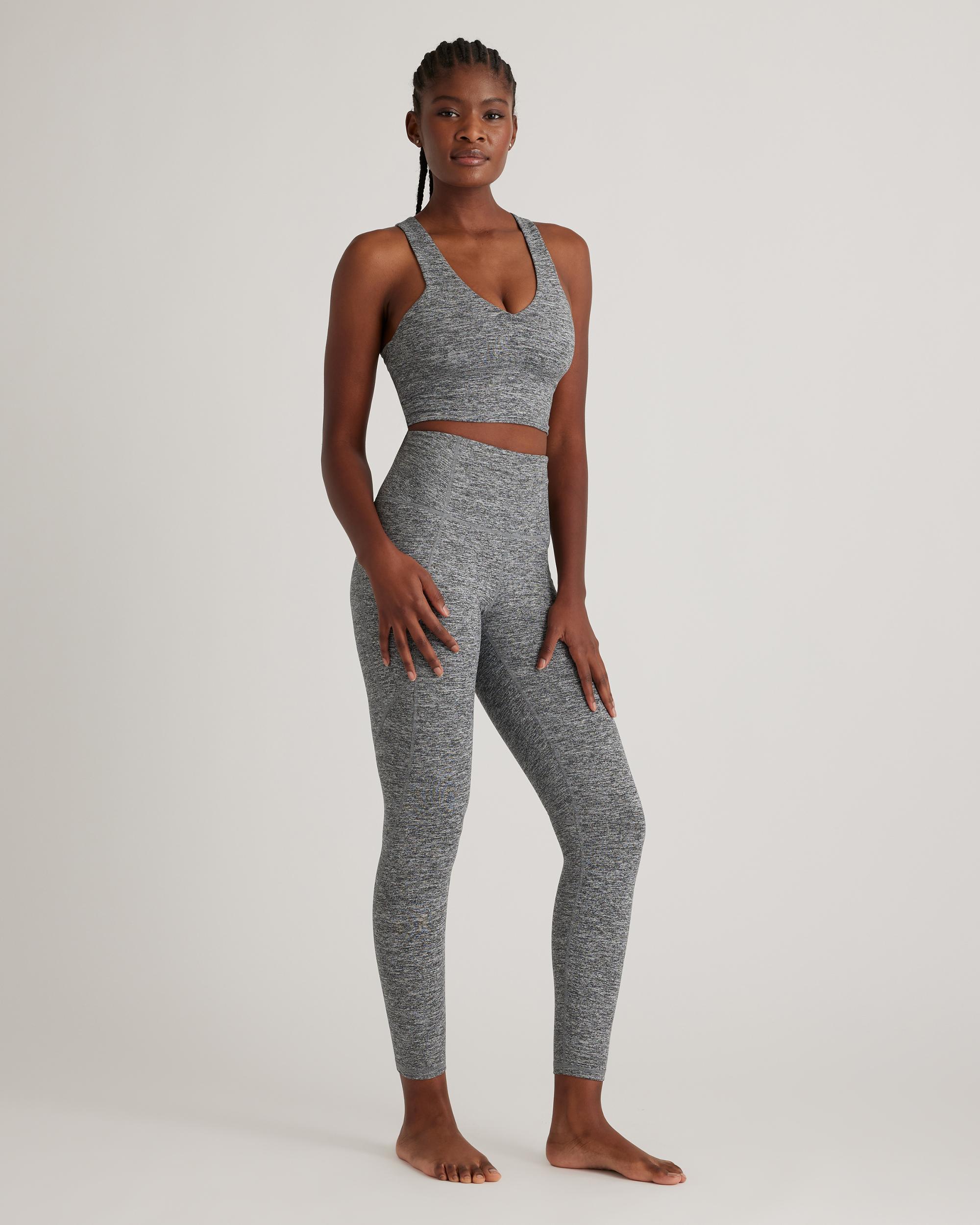 From yoga days to lounge days, our Pocket Leggings are light and breathable, letting you focus on your flow. Moisture-wicking and anti-microbial fabric with the 4-way stretch you love keep you comfortable all day long. Plus, the hidden waistband pocket fits a card or a key for unencumbered outdoor activities. | Quince | Women's Ultra-Soft High-Rise Pocket Legging in Heather Grey, Size Medium, 100% Polyester