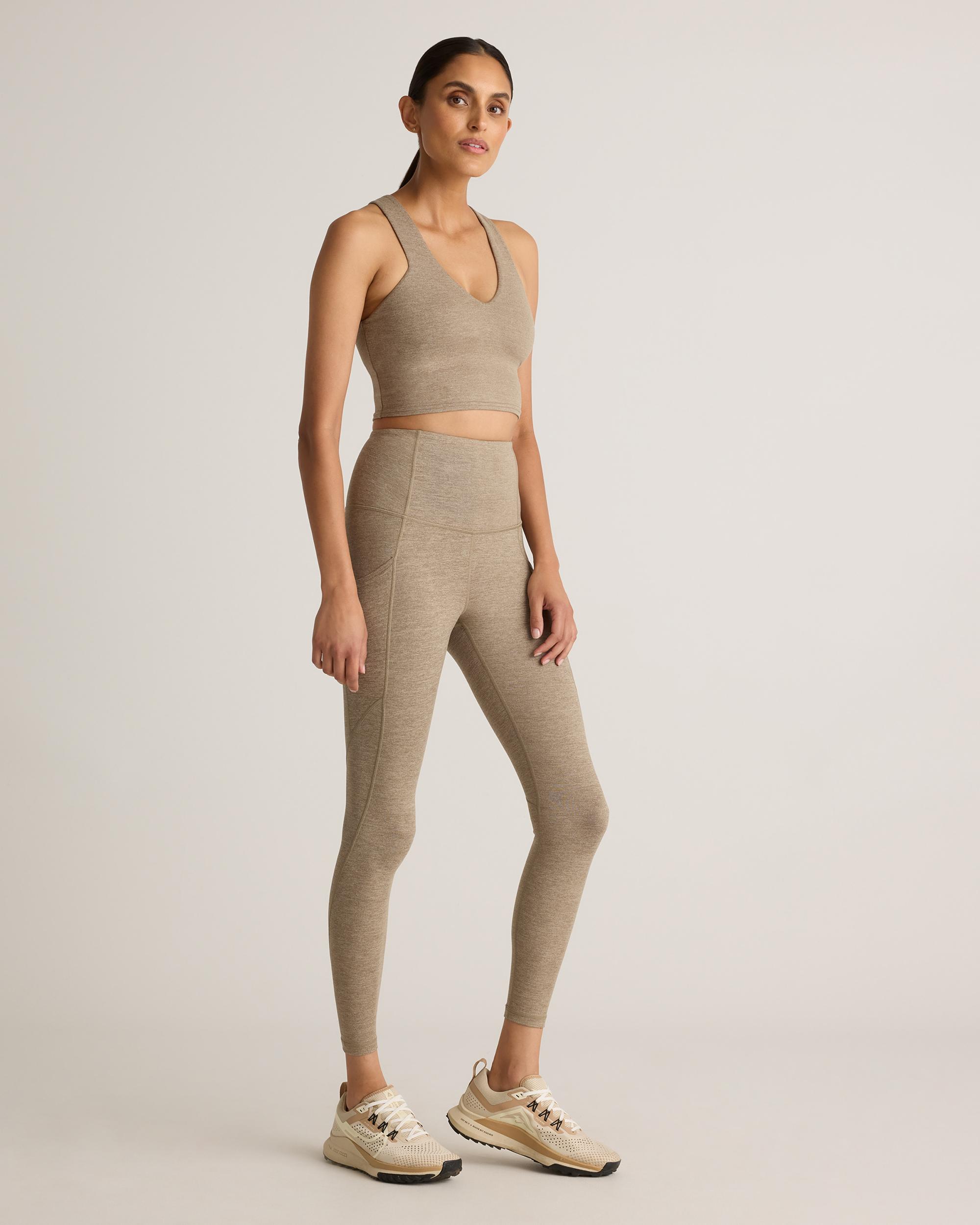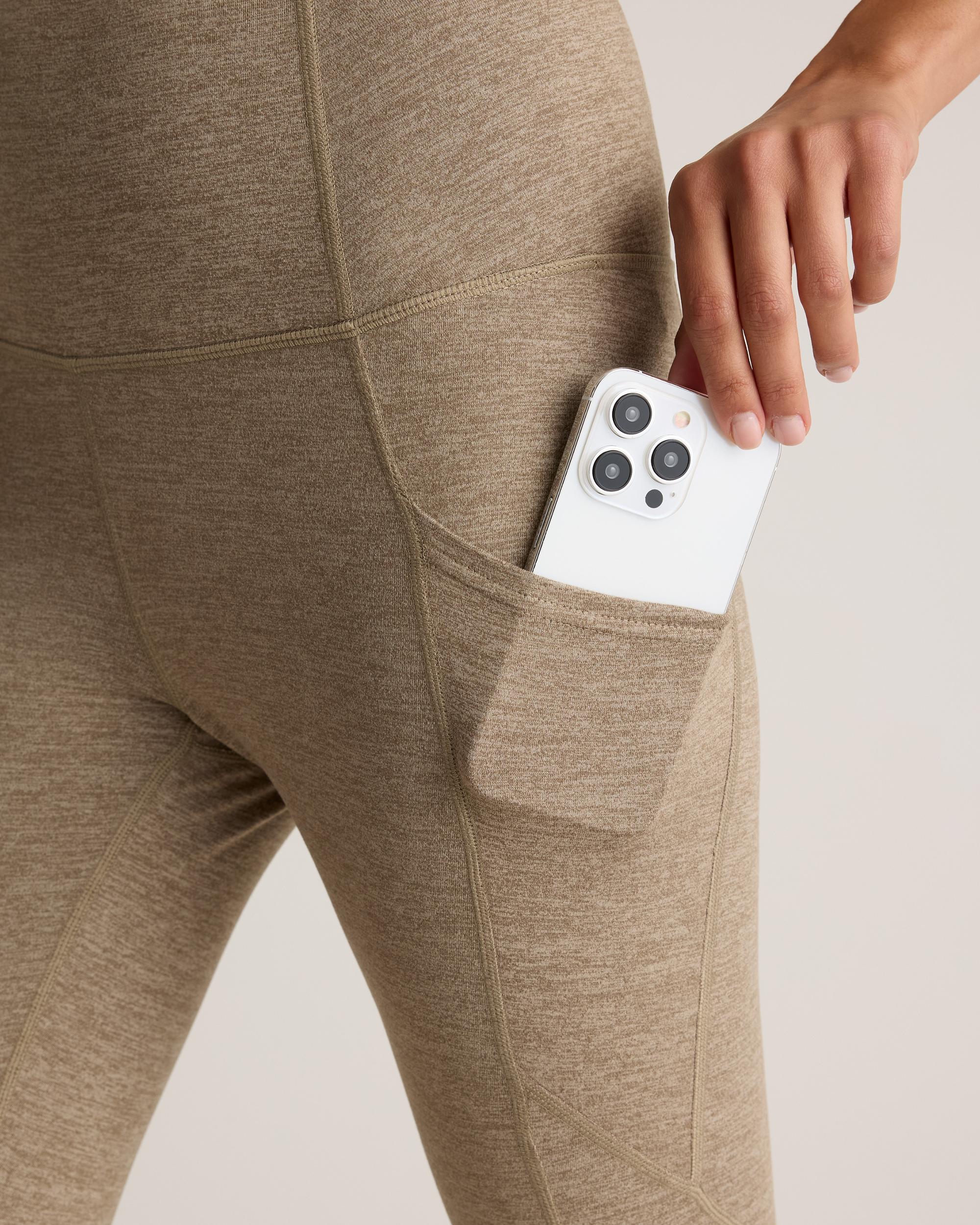 From yoga days to lounge days, our Pocket Leggings are light and breathable, letting you focus on your flow. Moisture-wicking and anti-microbial fabric with the 4-way stretch you love keep you comfortable all day long. Plus, the hidden waistband pocket fits a card or a key for unencumbered outdoor activities. | Quince | Women's Ultra-Soft High-Rise Pocket Legging in Heather Oatmeal, Size XS, 100% Polyester