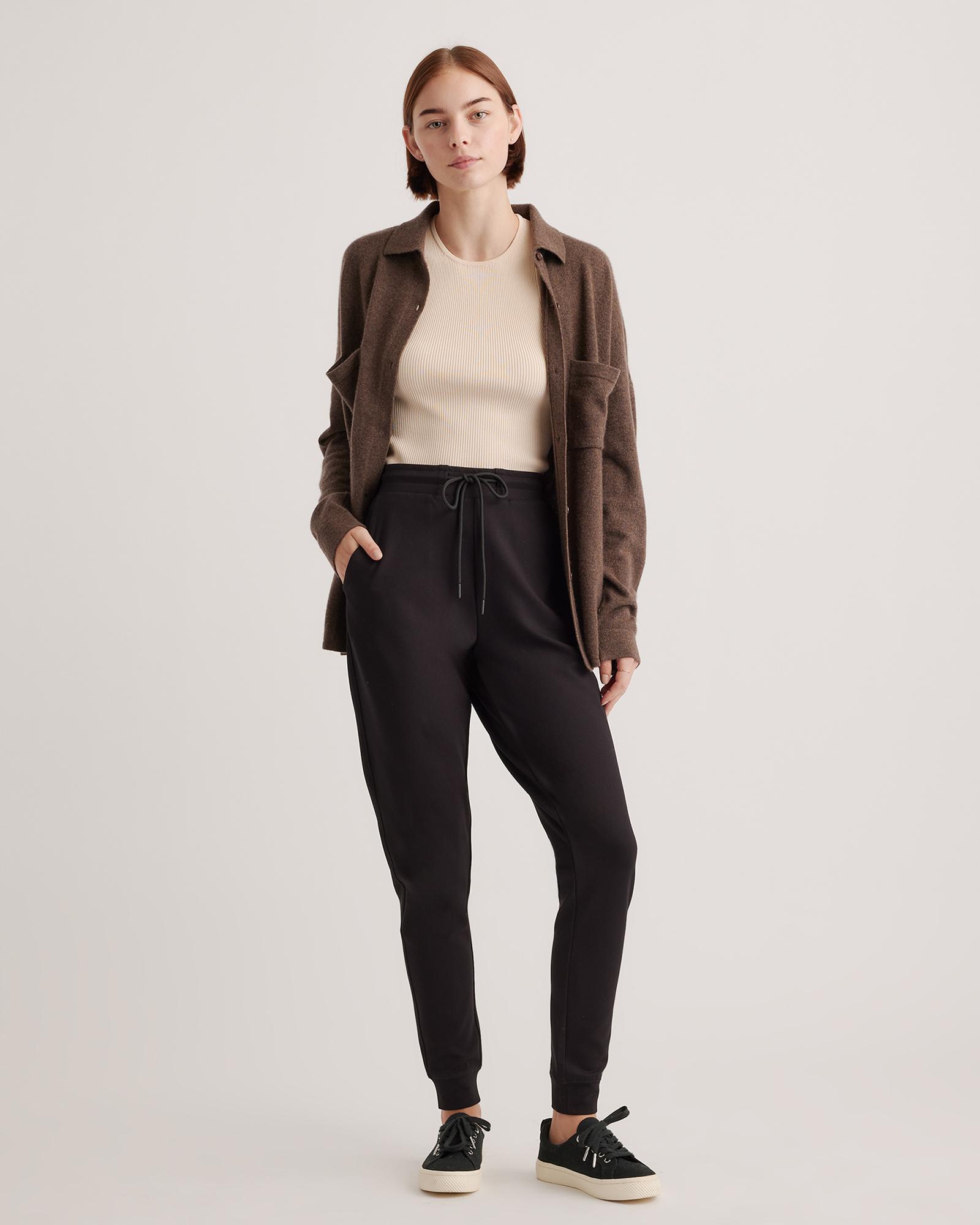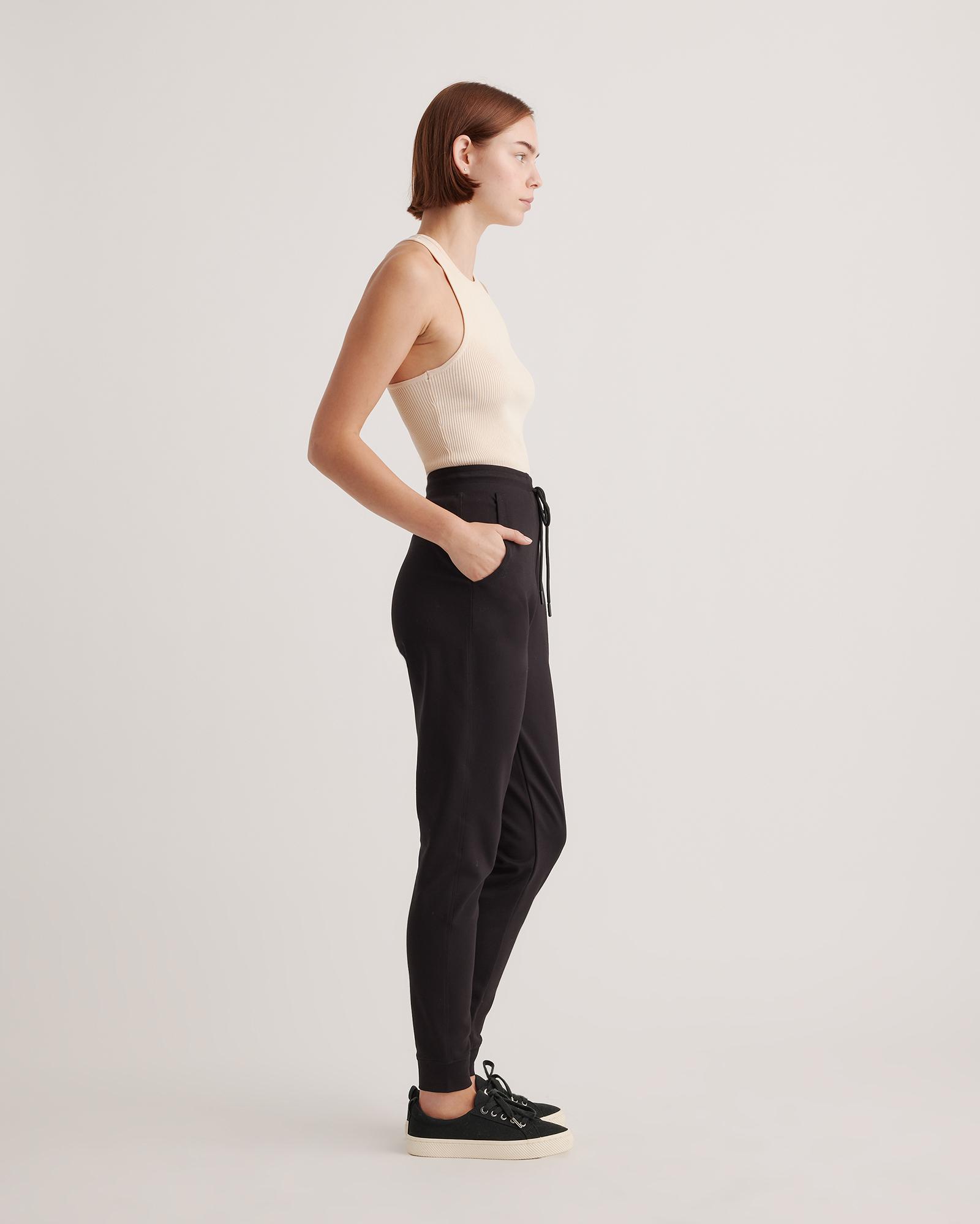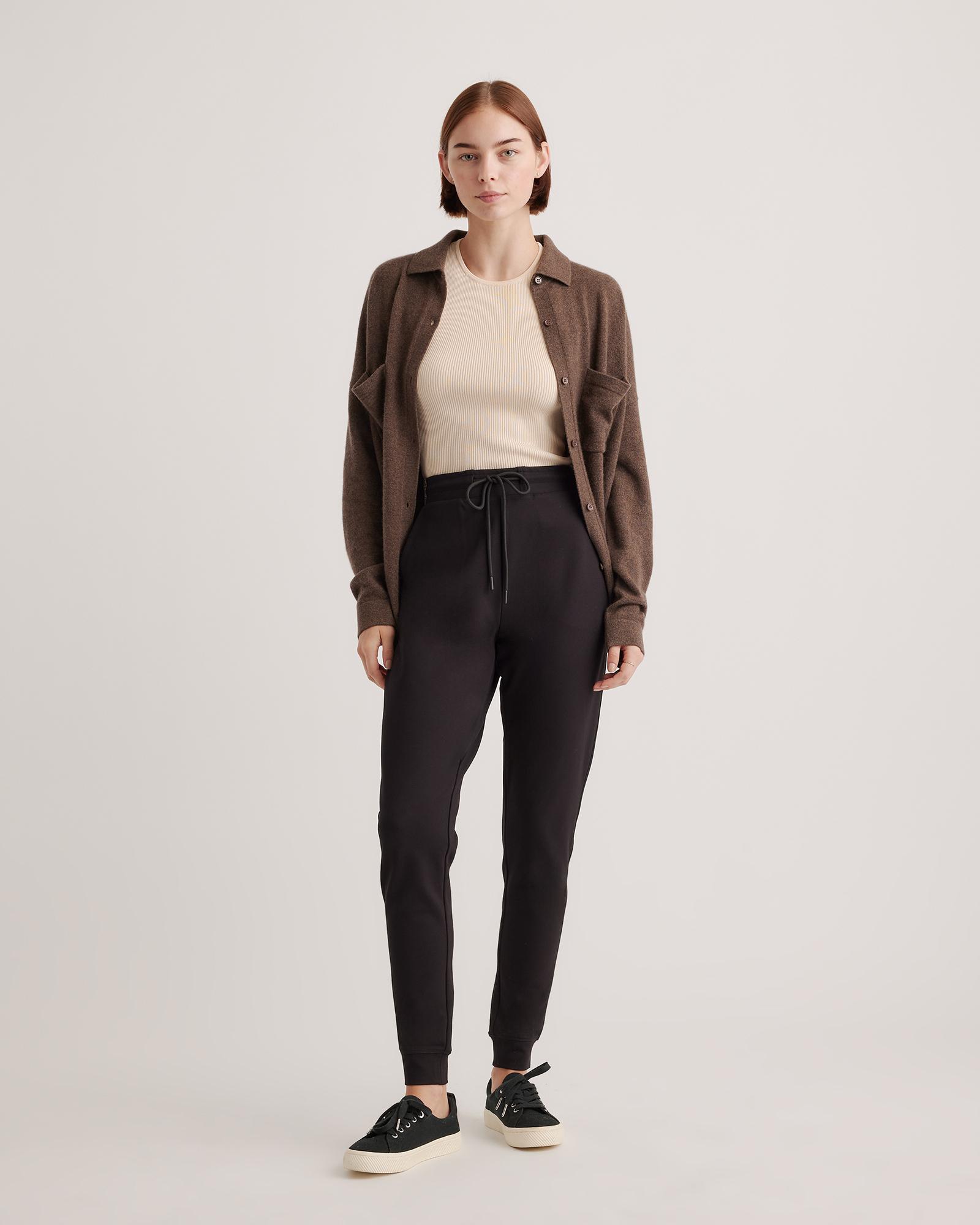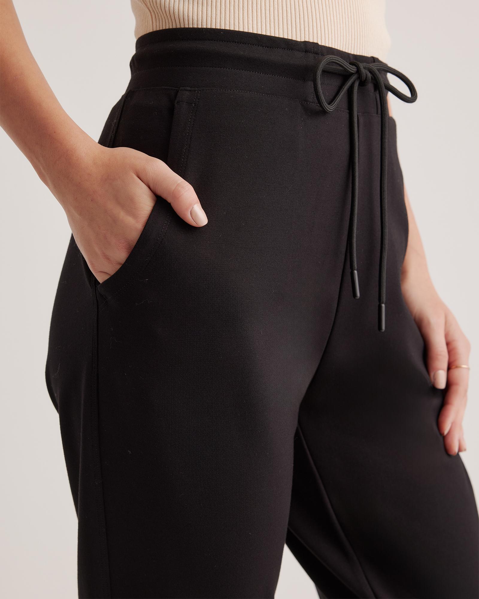If comfort is top priority, pull on a pair of our Ultra-Stretch Ponte Jogger Pants. These pants were made to make moves with you thanks to a comfy stretch fabric that resists wrinkles—also making them great for travel. The verdict: Whether you're lounging at home or heading out, these pants bring pretty unbeatable comfort and style. | Quince | Women's Ultra-Stretch Ponte Jogger Pants in Black, Size Large, Rayon