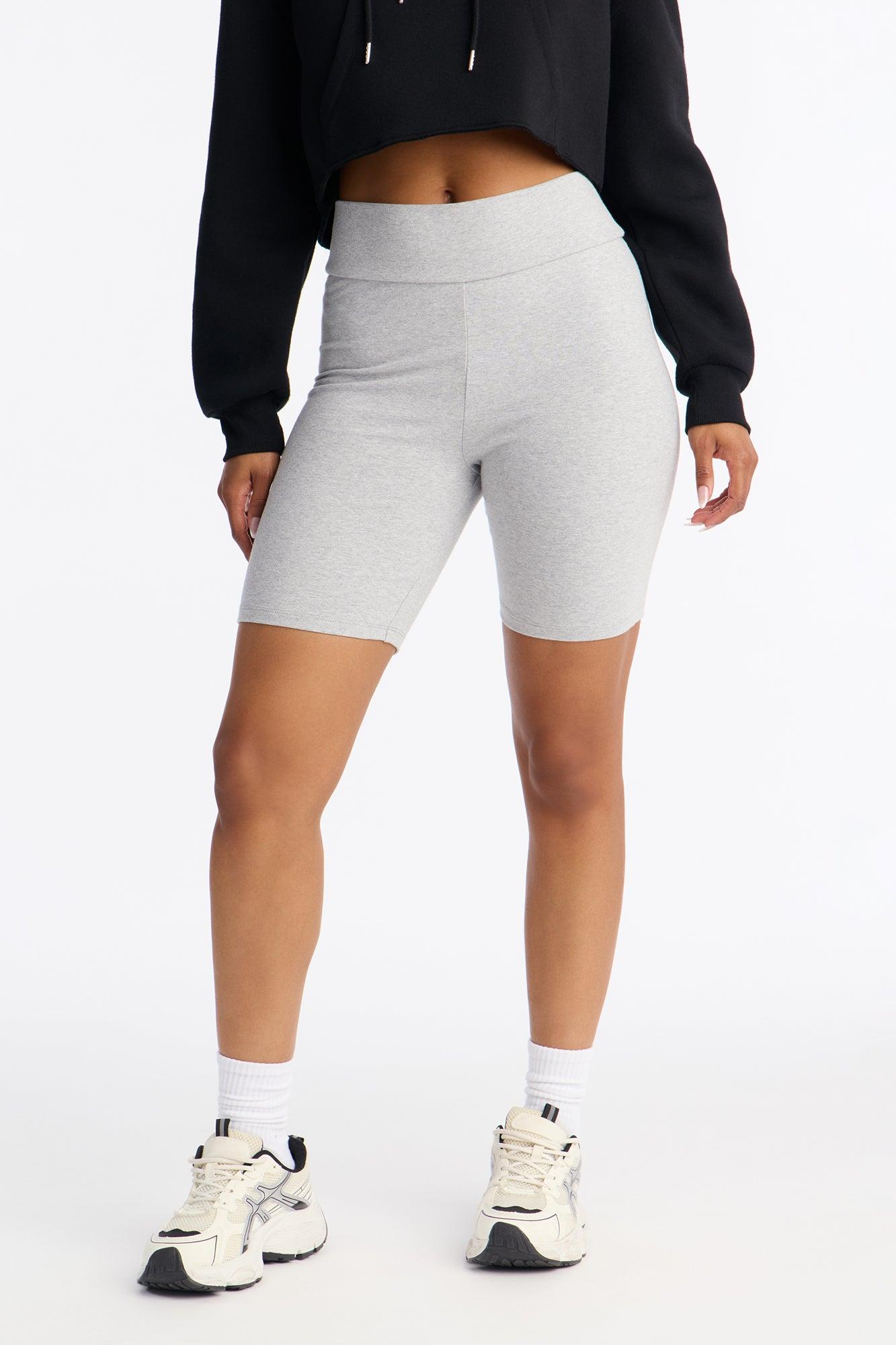 Quinn High Rise Everyday Cotton Biker Short 7″ - Heather Grey Female