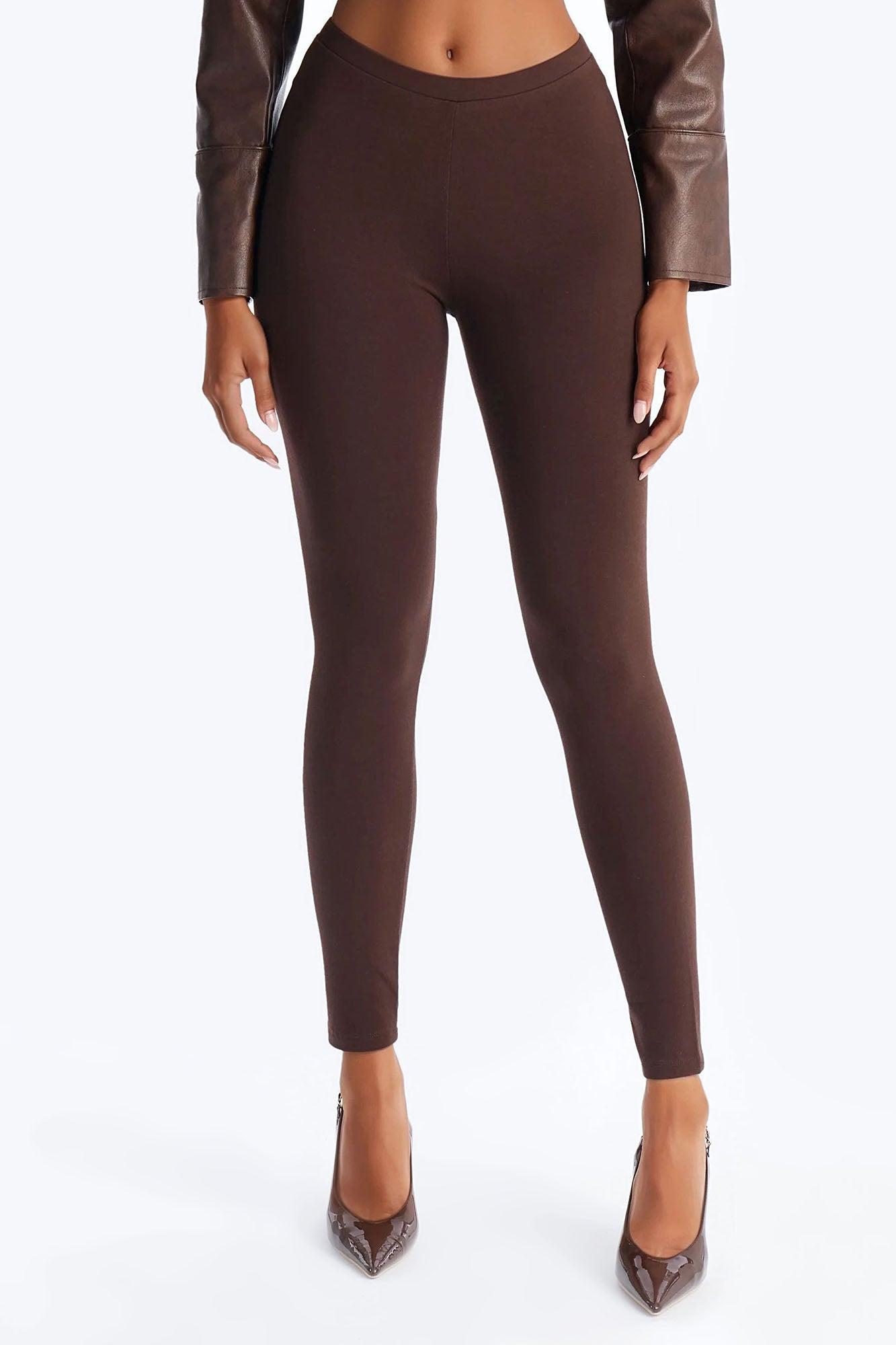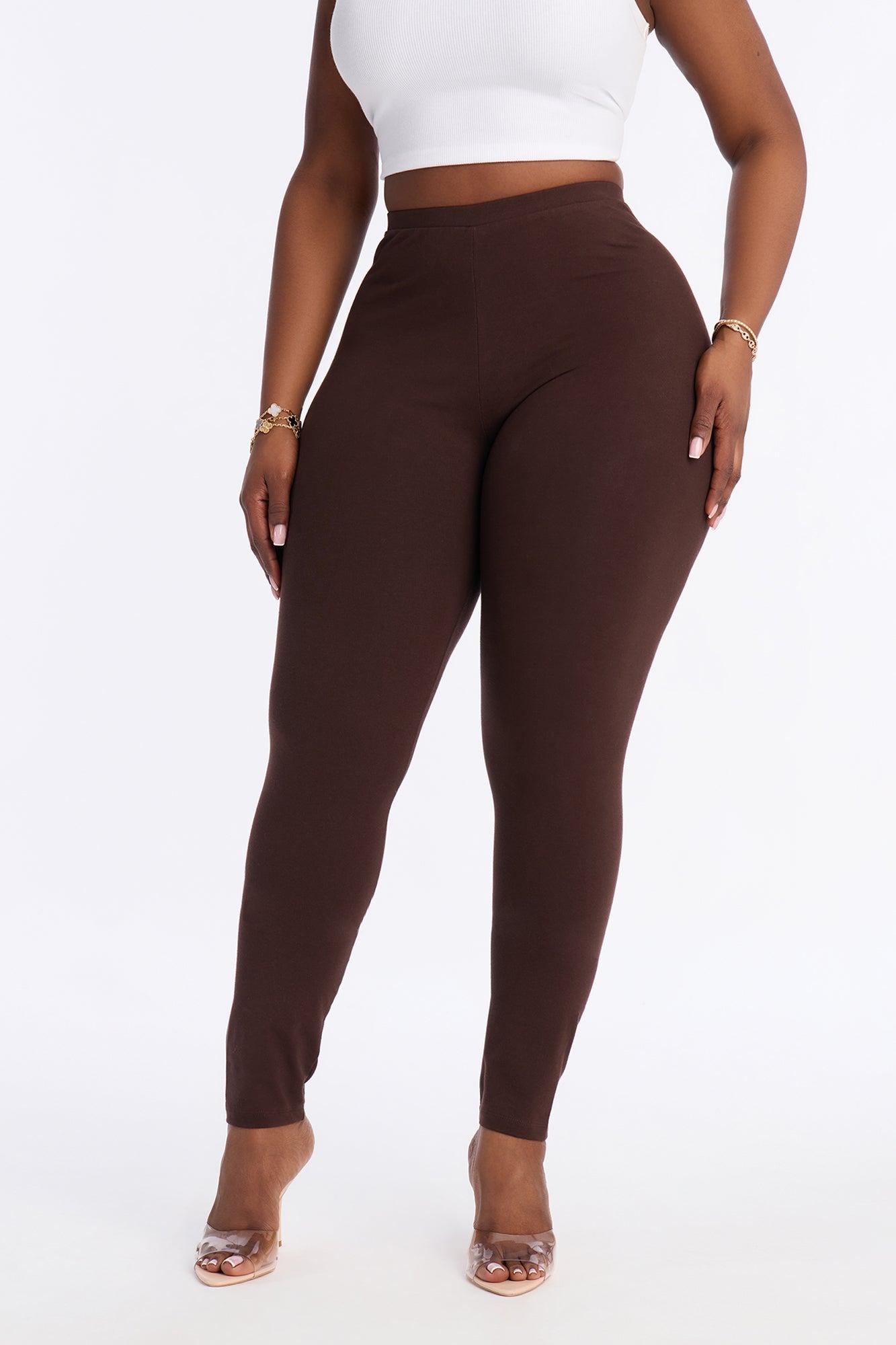 Available In Black And Chocolate. Legging Mid Rise Elastic Waistband Inseam = 29" Stretch 87% Cotton 13% Spandex Imported
