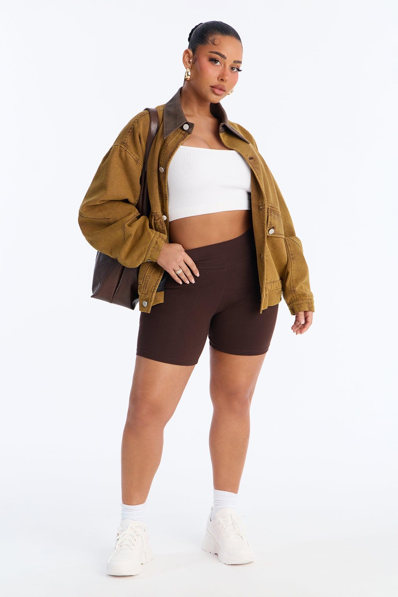 Quinn Mid Rise Everyday Cotton Biker Short 5″ - Chocolate Female