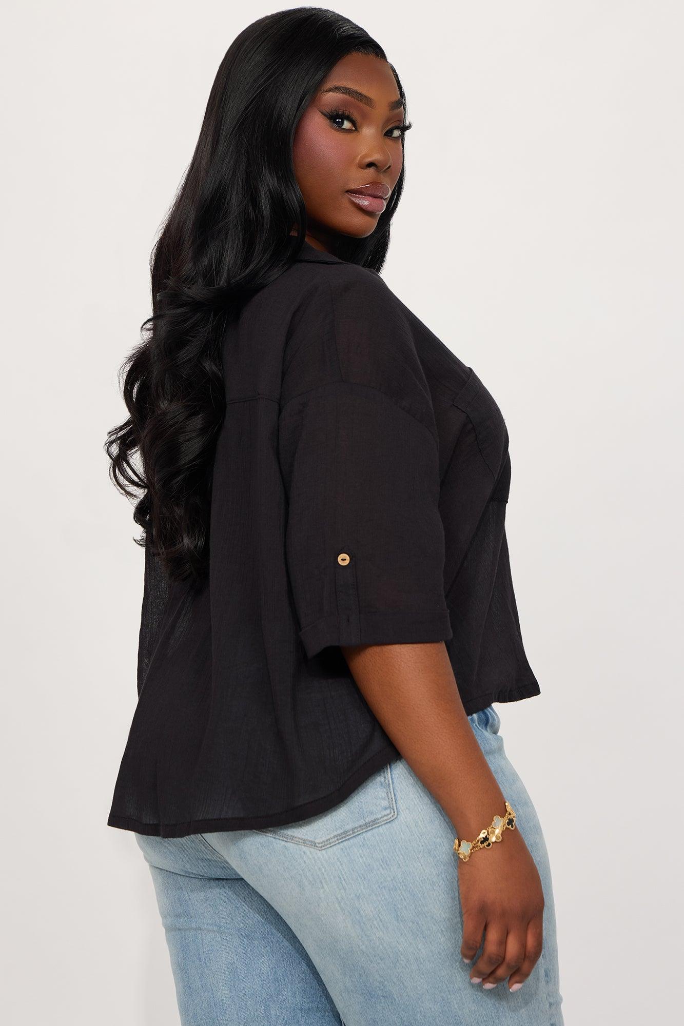 Available In Black And White. Shirt Short Sleeve Button Front Collar 2 Front Pockets Non Stretch 100% Cotton Imported