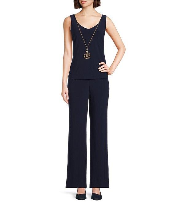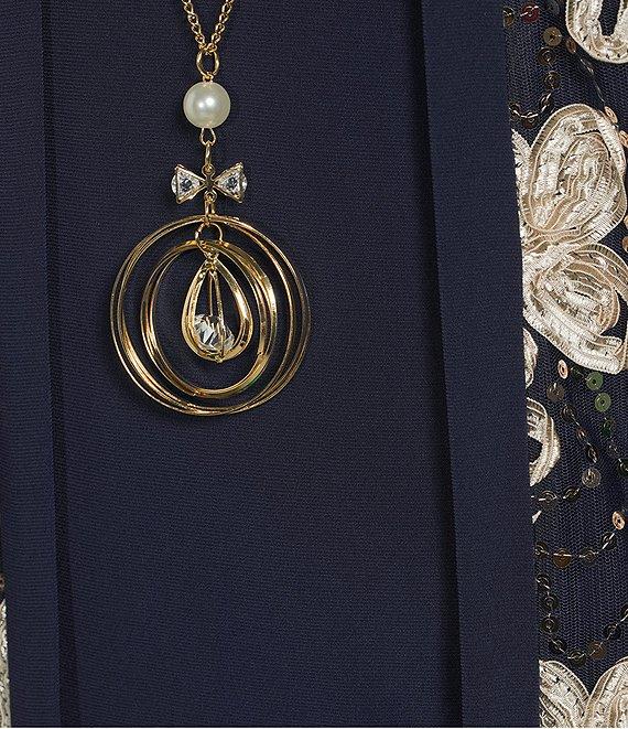 From R&M Richards, this 3-piece set features: Jacket: Embroidered soutache sequin mesh fabrication Open construction 3/4 sleeves Floral print Approx. 40" in length Polyester Hand wash Tank: Solid ITY fabrication Sweetheart neckline Sleeveless Tank silhouette Pull on construction Approx. 20" in length Polyester/spandex Hand wash Pants: Solid ITY fabrication Elastic waistband Pull on construction Full length Approx. 31" in length Polyester/spandex Hand wash Imported.