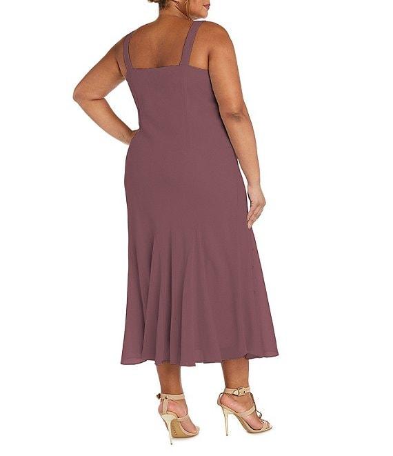 From R & M Richards Plus, this jacket dress set features: Jacket: Pebble georgette fabrication Open neckline 3/4 sleeves Beaded Open front; no closure Approx. 30" length Polyester Hand wash Dress: Pebble georgette fabrication Sheath silhouette Sweetheart neckline Wide straps Beaded Pullover construction Approx. 55" length Polyester Hand wash Imported.