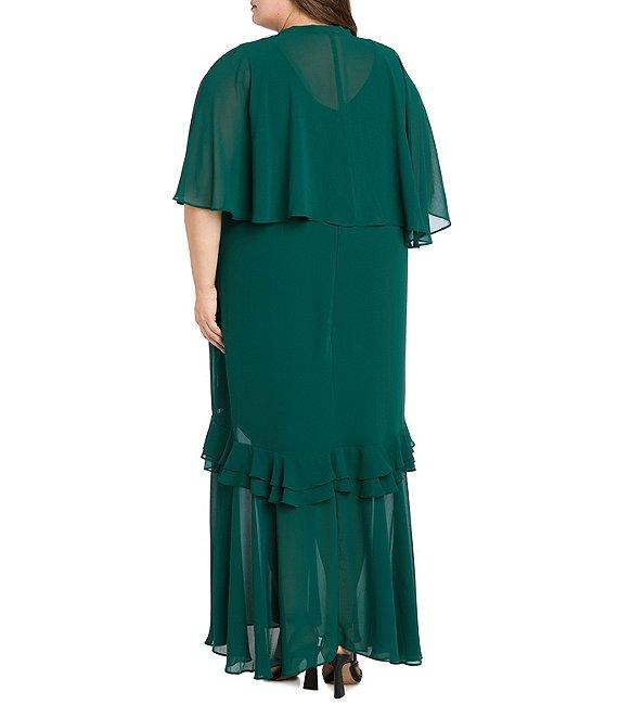 From R&M Richards, this d2-piece dress set features: Caplet: Crepe chiffon fabrication Tie front neckline Elbow sleeve length Tie front closure Sheer detail Polyester Hand wash/dry flat Dress: Crepe chiffon fabrication Keyhole neckline Sleeveless Ruffle detail Lined Center back zipper closure Approx. 61" in length Polyester Hand wash/dry flat Imported.