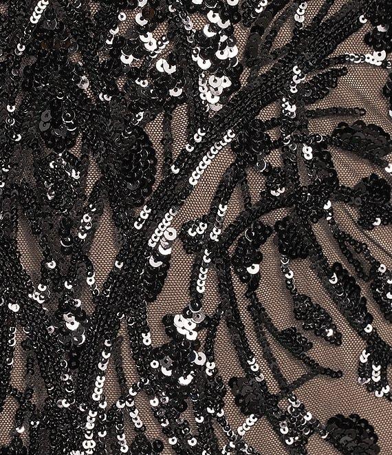 From R & M Richards Plus, this dress features: Embroidered sequin power mesh fabrication V-neckline Short flutter sleeves Empire waist dress Mermaid silhouette Double layer sleeves Godets Center back zipper closure Approx. 61" in length Polyester/spandex Hand wash/lay flat Imported.