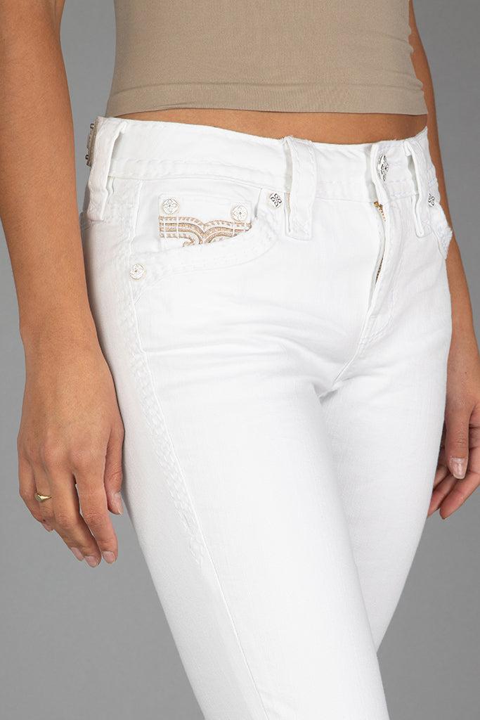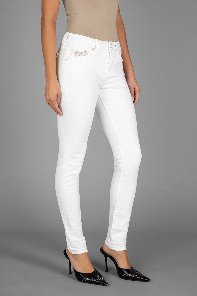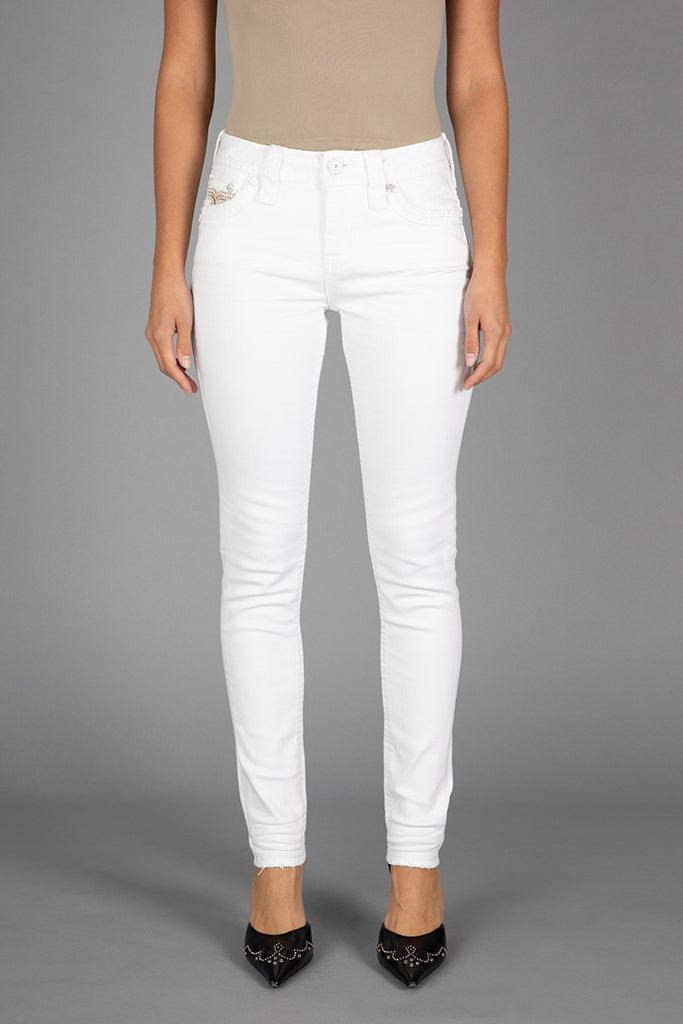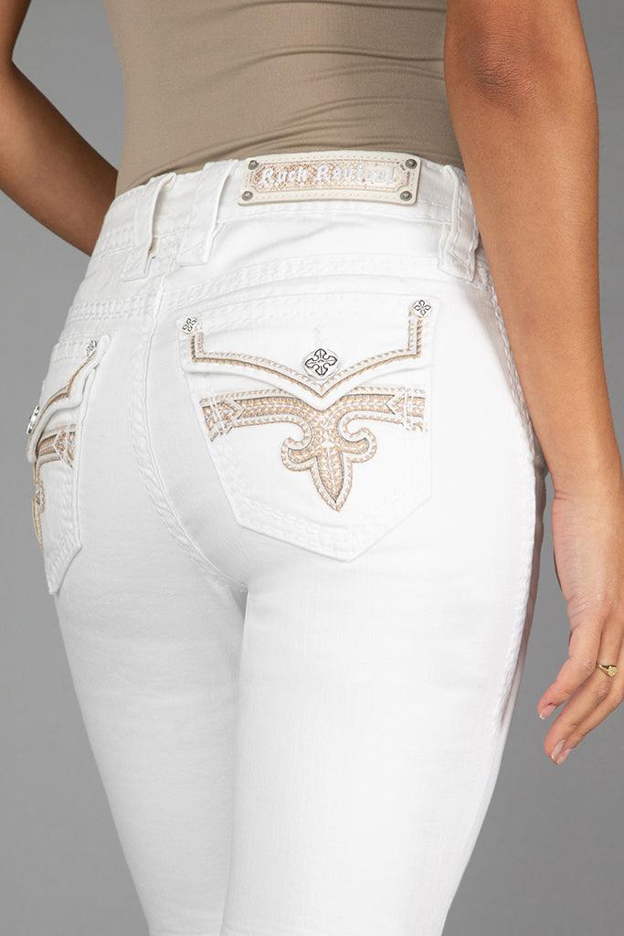 Raanan Skinny Jeans by Rock Revival with a skinny silhouette crafted in a white wash, designed in Los Angeles.