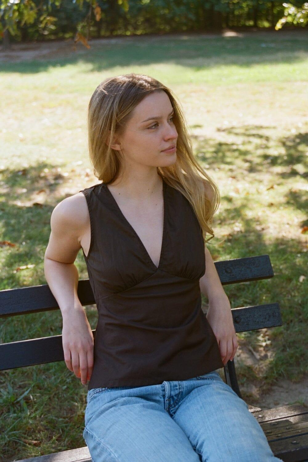 Plunging v-neck tank top with a tie at the waistFabrics: 97% cotton, 3% spandexMeasurements: 20" (51 cm) length, 14" (35.5 cm) bust Made in: China
