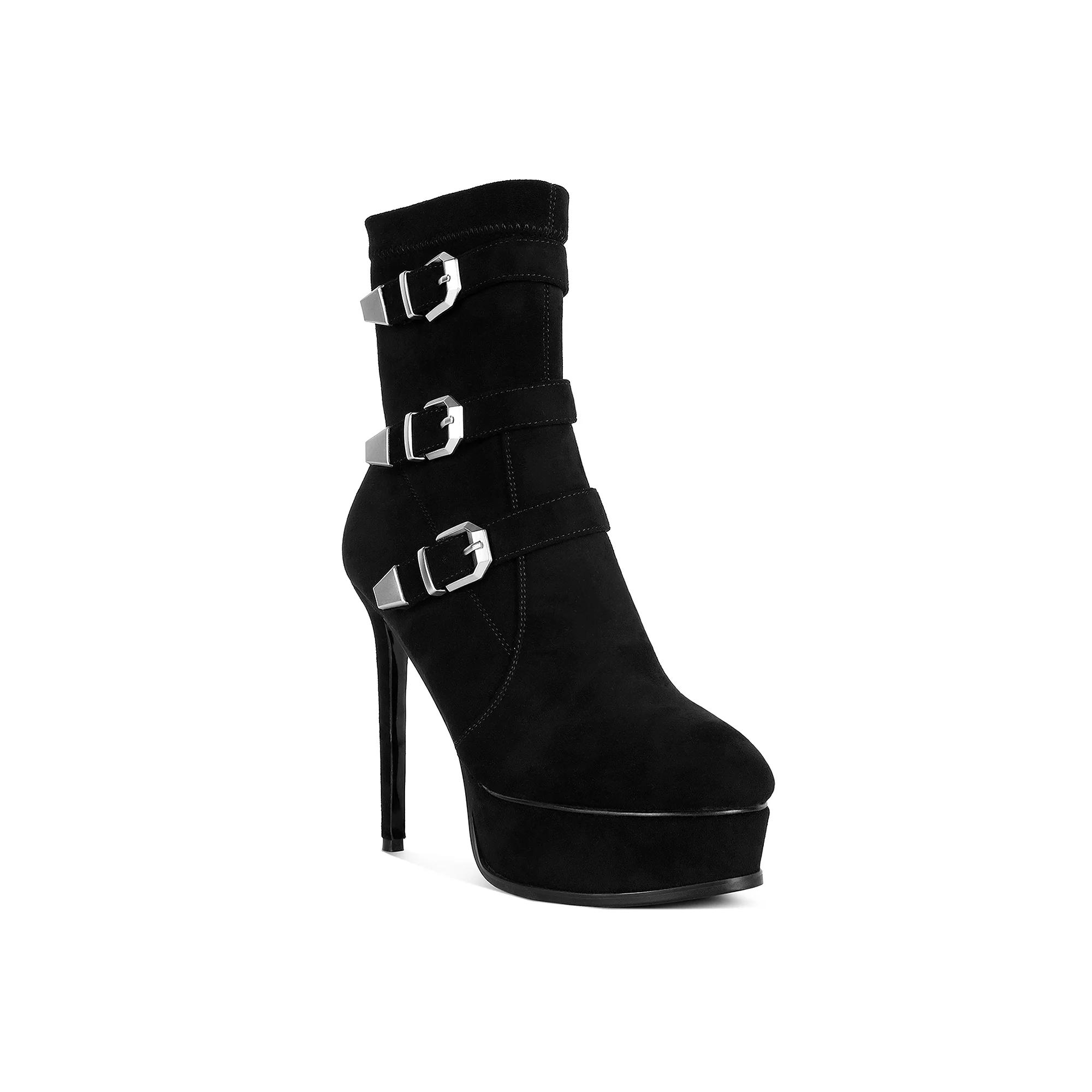 Step into style with these Rag & Co Beaux women's stiletto ankle boots. Click this FOOTWEAR GUIDE to find the perfect fit and more! - https://www.kohls.com/feature/shoesizeguide.jsp. SHOE FEATURES: Triple buckle detail, Stiletto heel. SHOE CONSTRUCTION: Microfiber upper, Polyester lining, Rubber midsole, TPR outsole. SHOE DETAILS: Round toe, Zipper closure, Padded footbed, 4-in. heel, 1.5-in. platform, 3.2-in. shaft, 8.56-in. circumference, Spot clean, Imported,. Rag & Co Women's Shoe Size Chart. Size: 7. Color: Black. Gender: female. Age Group: adult. Material: OTHER MATERIAL.