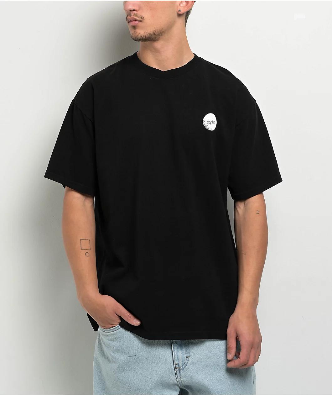 The minds at Random Golf Club present the Empty Pockets Clubhouse t-shirt in a sleek black colorway with a branded puff-printed golf ball on the left side of the chest. Screen-printed on the back of the shirt is an array of golf essentials, including