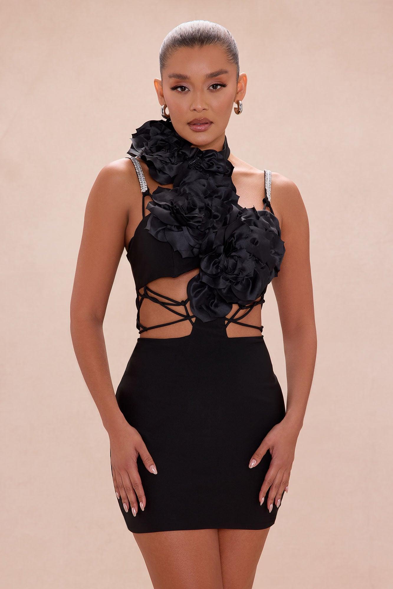 Raven Strappy Floral Applique Mini Dress - Black Female