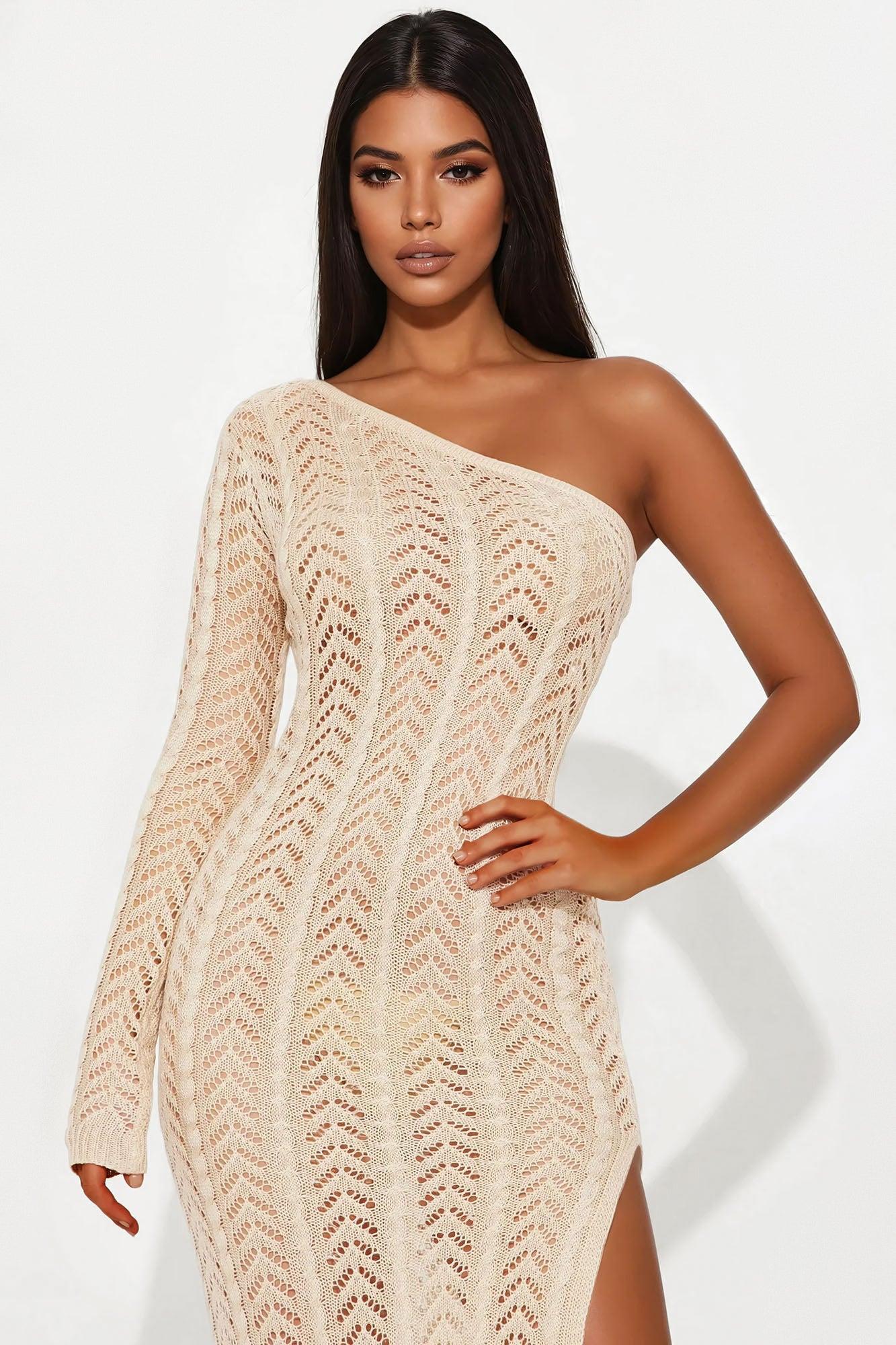 Rayna Crochet One Shoulder Maxi Dress - Sand Female