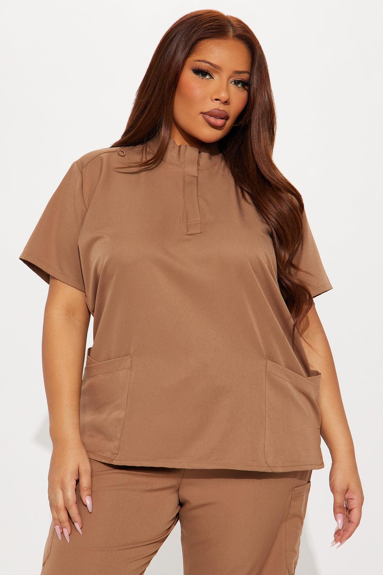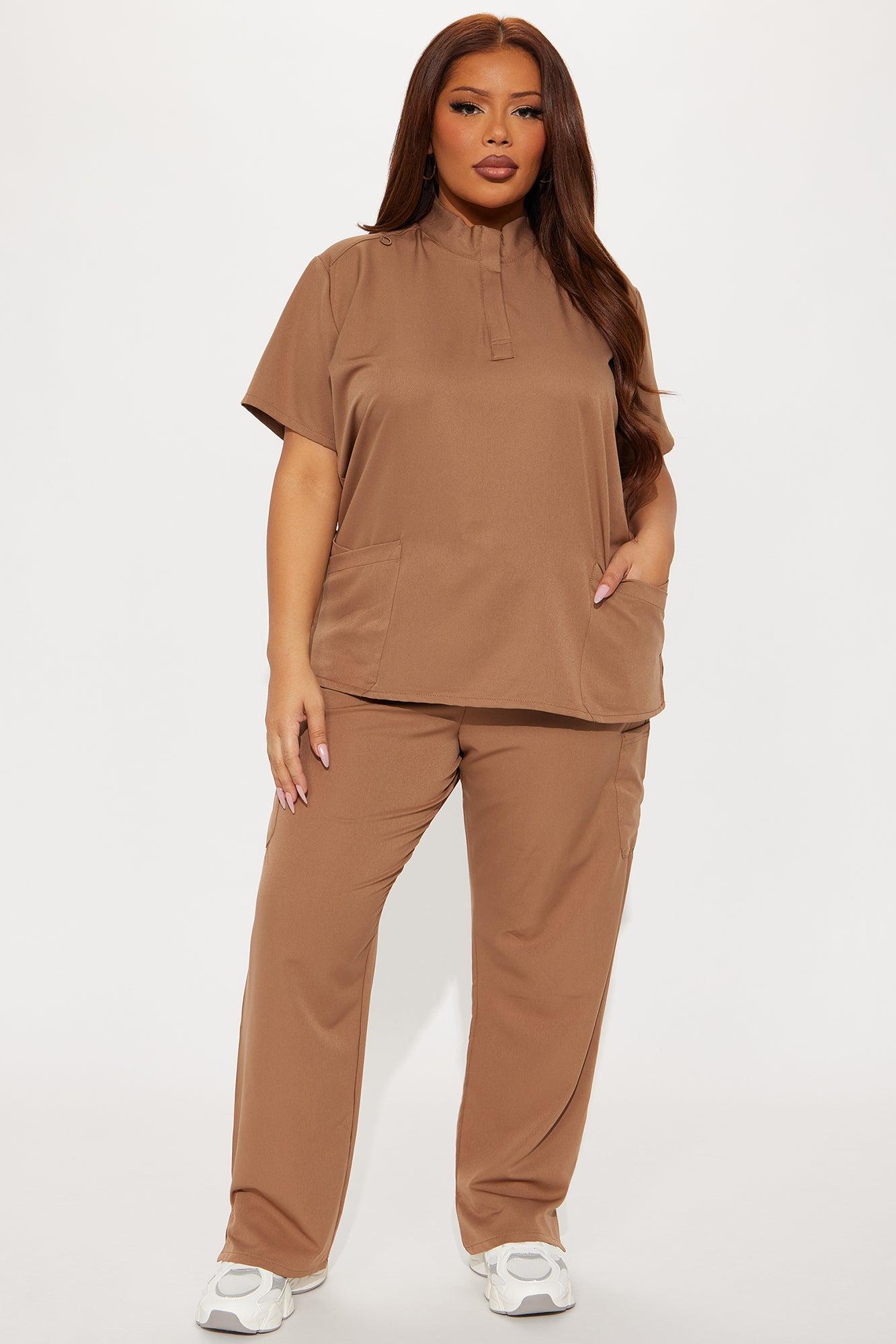 Available In Chocolate, Navy, And Olive. Scrub Set Short Sleeve High Neck Quarter Zipper Detail Pockets Matching Pants Elastic Waistband Drawstring Stretch Self: 91% Polyester 9% Spandex Imported California Proposition 65WARNING: Cancer and Reproductive Harm - www.P65Warnings.ca.gov.