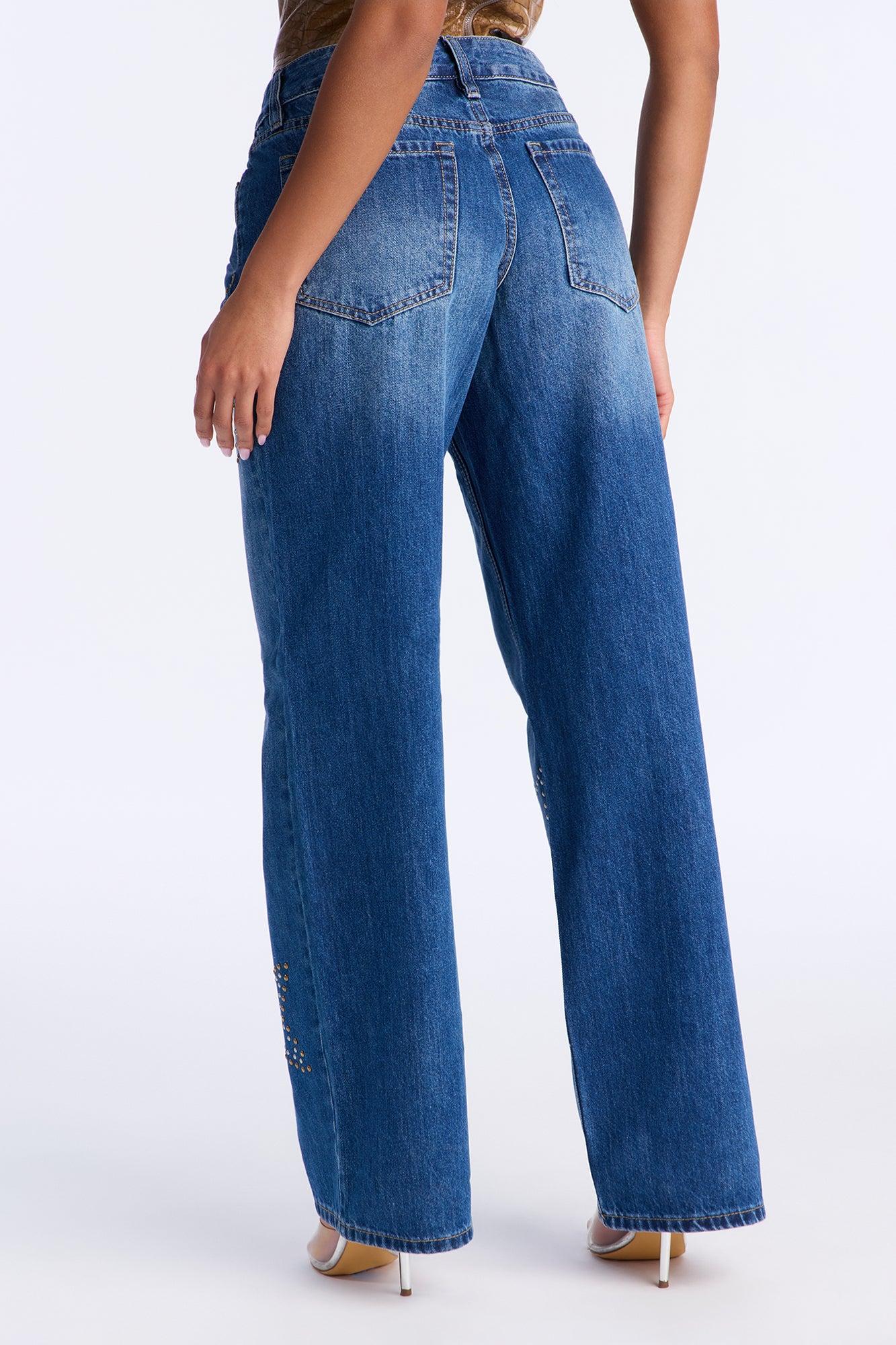 Ready For Stardom Studded Wide Leg Jean - Dark Wash Female