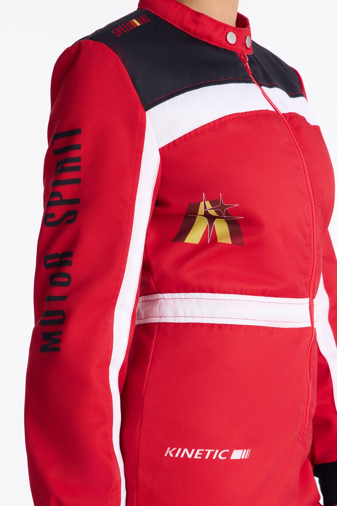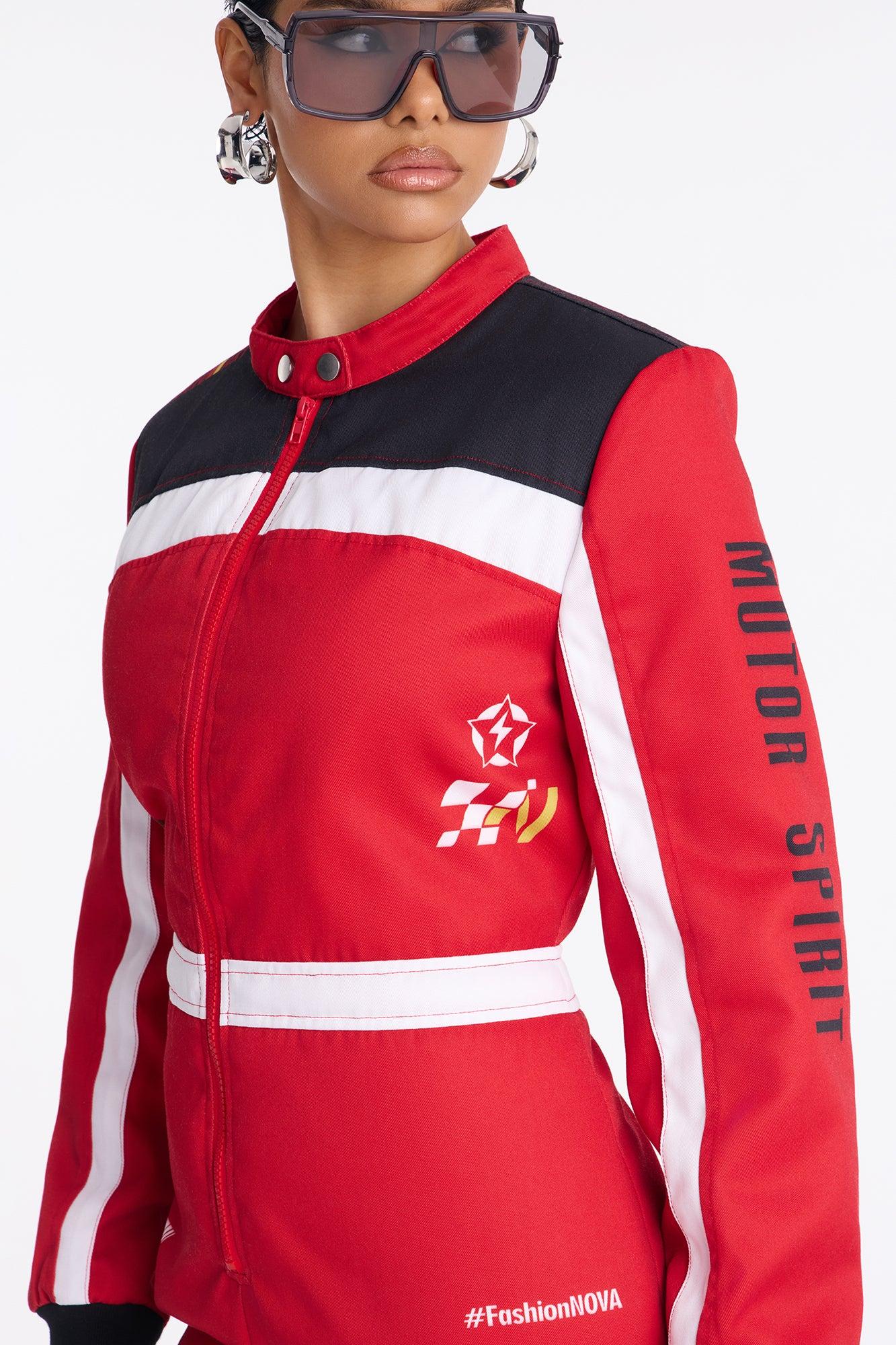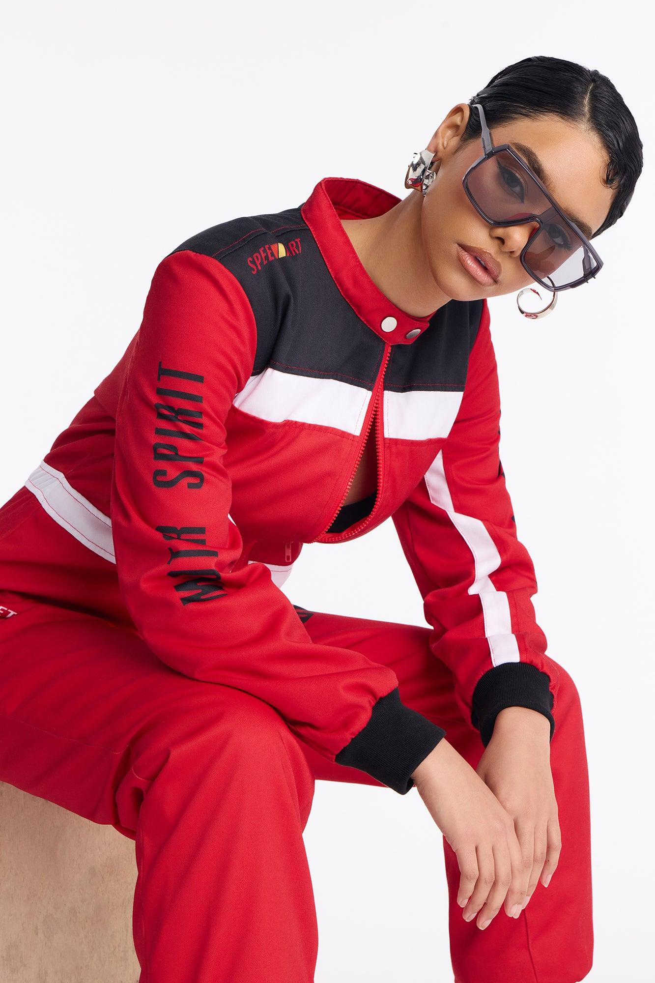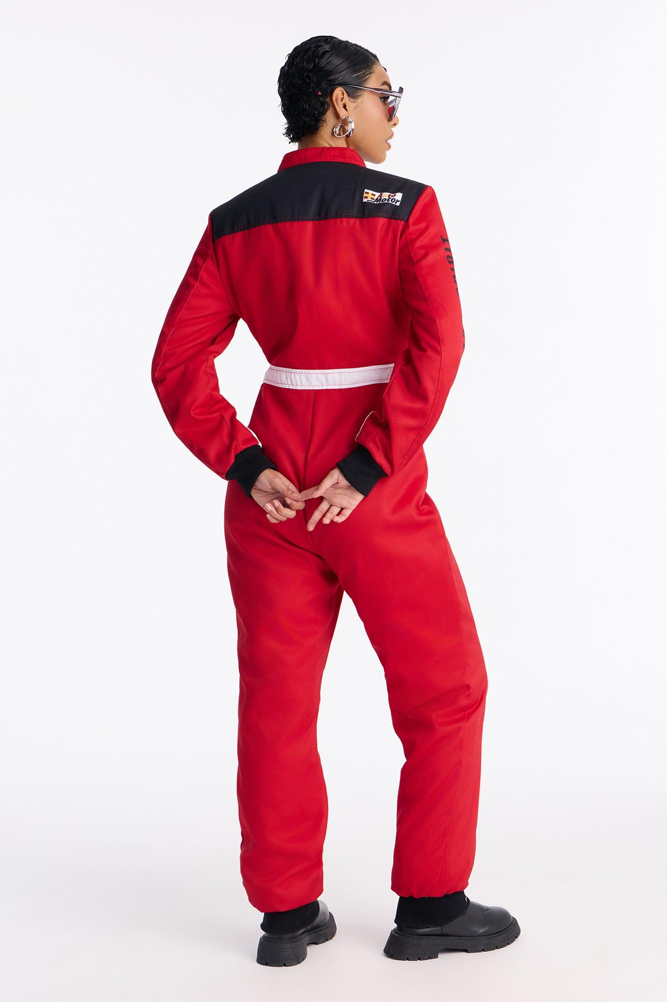 Available In Red. Jumpsuit Non-stretch Long Sleeve Mock Neck Jogger Leg Self: 100% Polyester Lining: 100% Polyester Filling: 100% Polyester Rib: 98% Polyester 2% Spandex Imported California Proposition 65WARNING: Cancer and Reproductive Harm - www.P65Warnings.ca.gov.