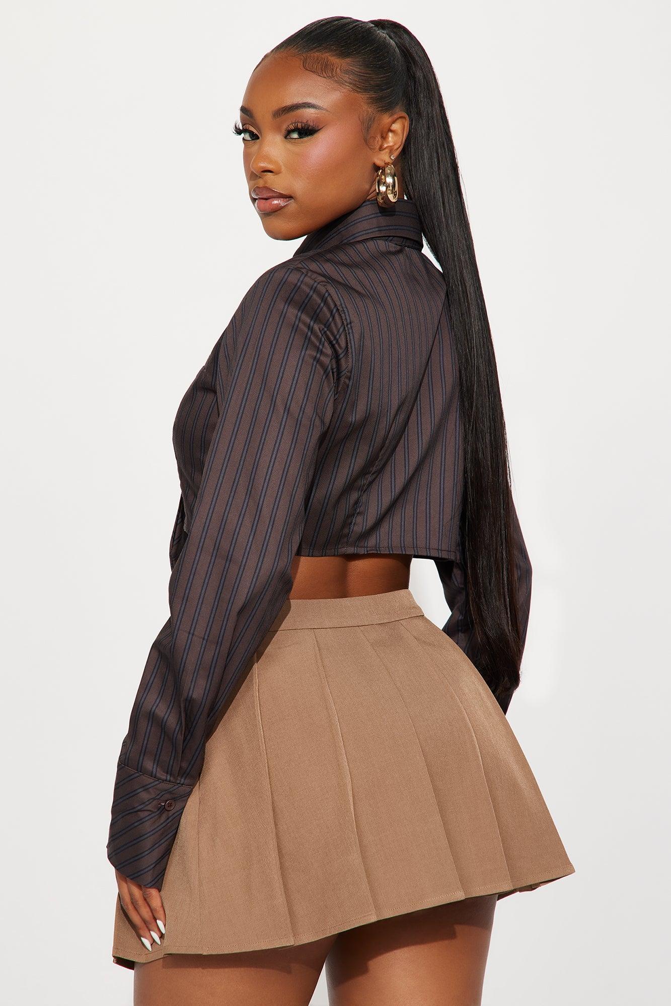 Real Woman Striped Poplin Tie Shirt - Brown Combo Female