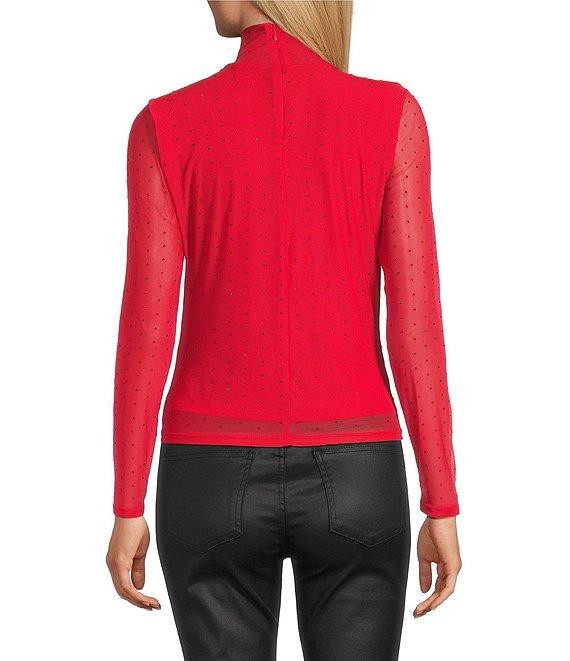 Reba Jeweled Mesh Knit Mock Neck Long Sleeve Tee