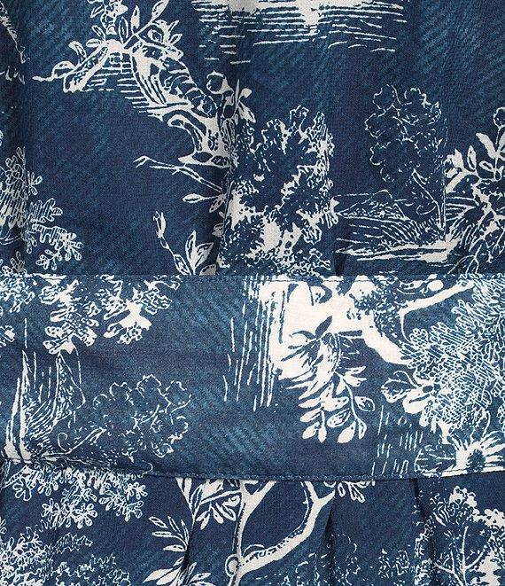 From Reba, this dress features: Voile fabrication Cowboy toile print pattern Point collar Long sleeve Crochet belt loops Self fabric belt Waist side seam Elastic waistline Straight hemline Front button placket Approx. 51" length Cotton Hand wash Imported.