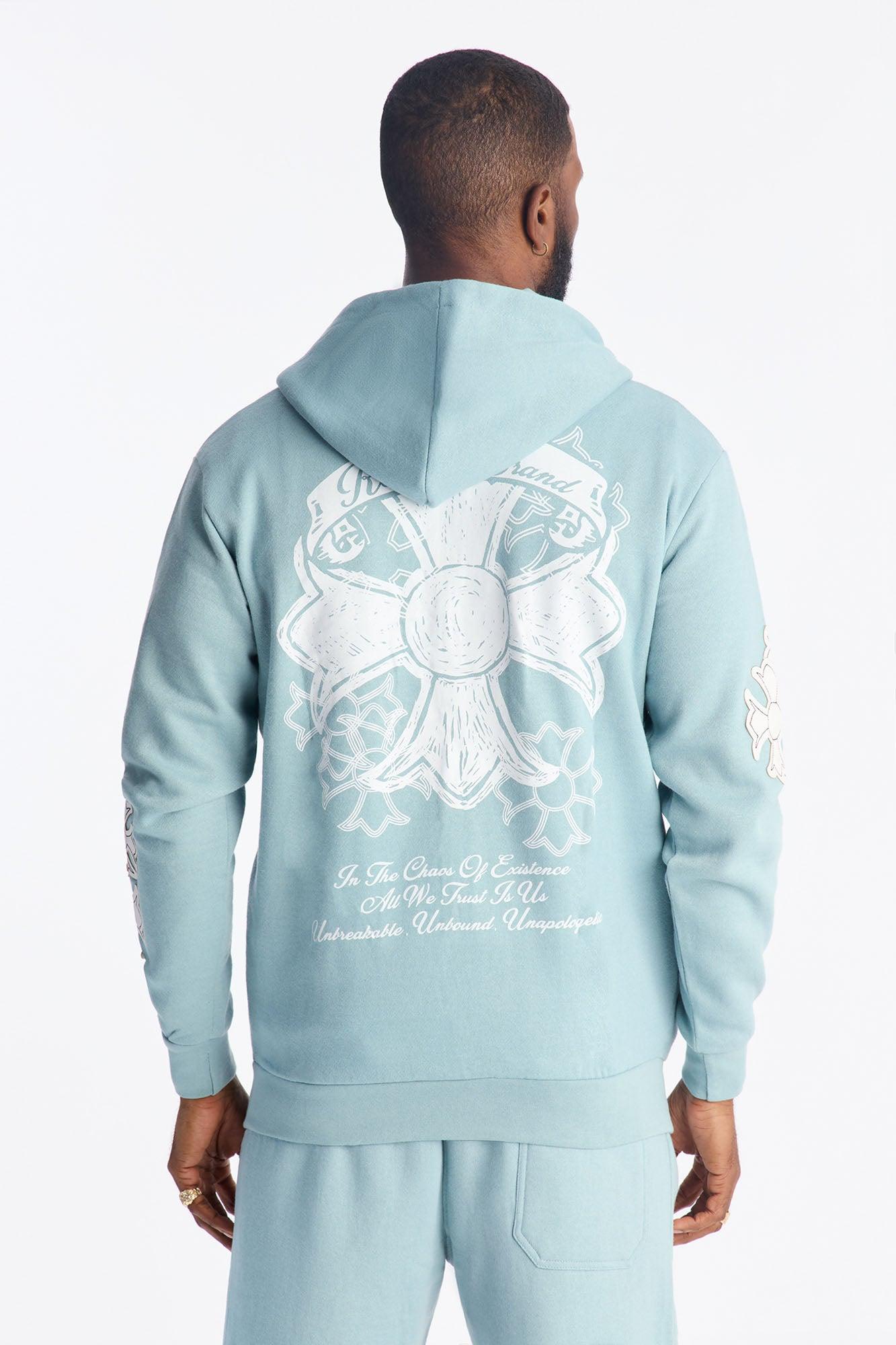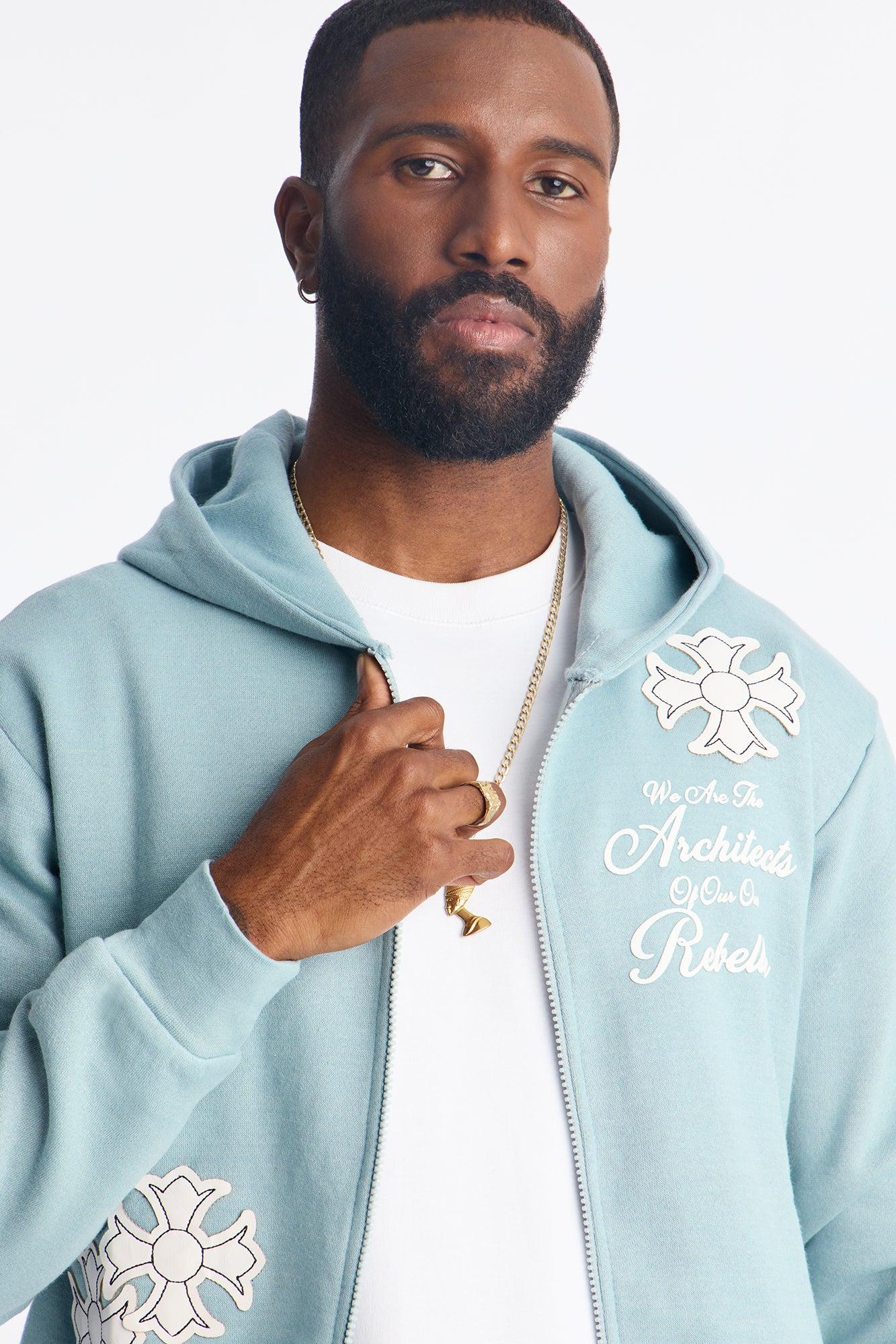Available In Light Blue. Hoodie Front Zip Closure Long Sleeve Screen Print Side Pockets Applique Details Pair With "Rebellion Cross Applique Jogger" Disclaimer: Due To The Printing Process A Difference In Saturation May Occur. Each Garment Is Unique. 60% Cotton 40% Polyester Imported