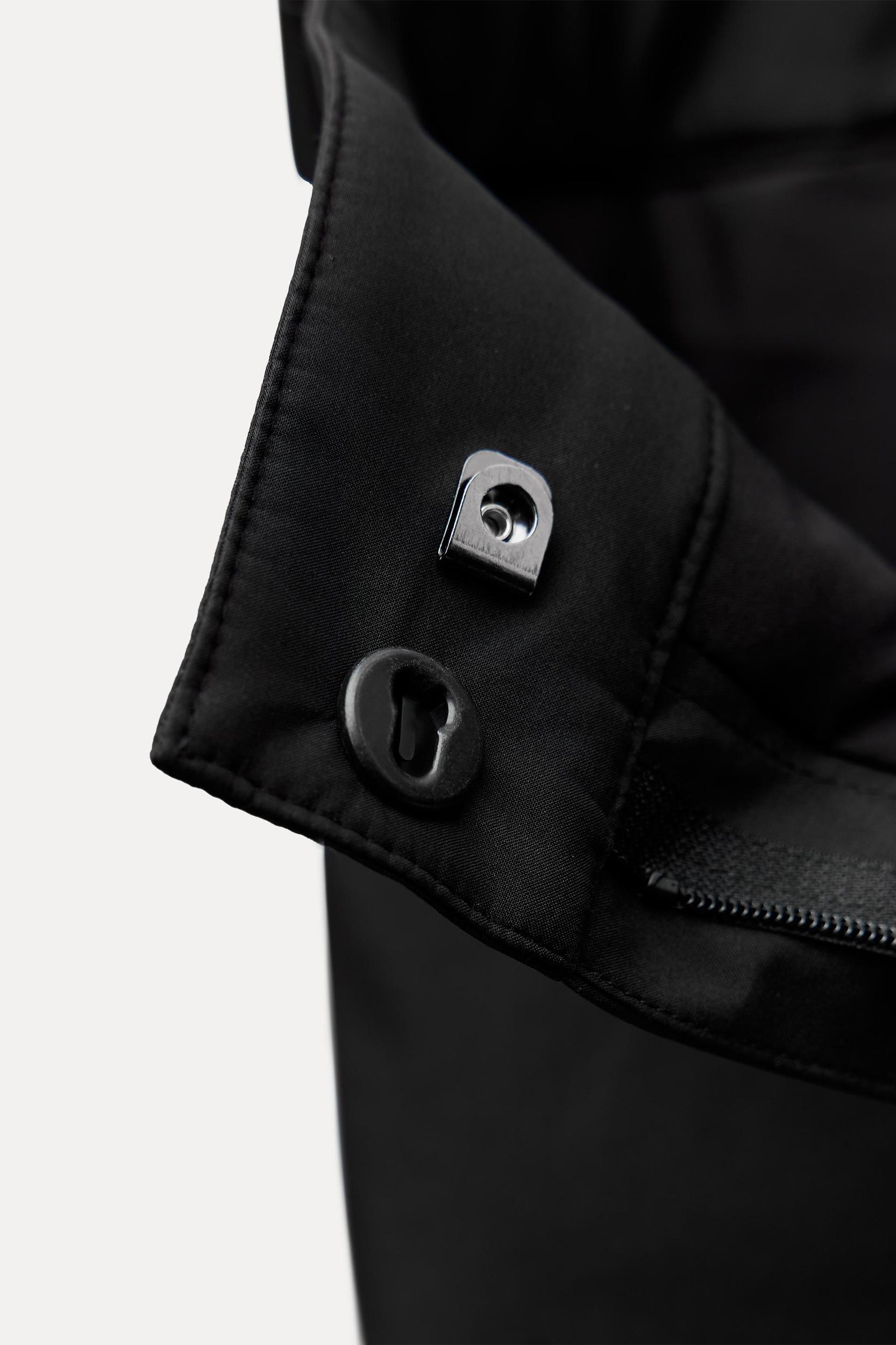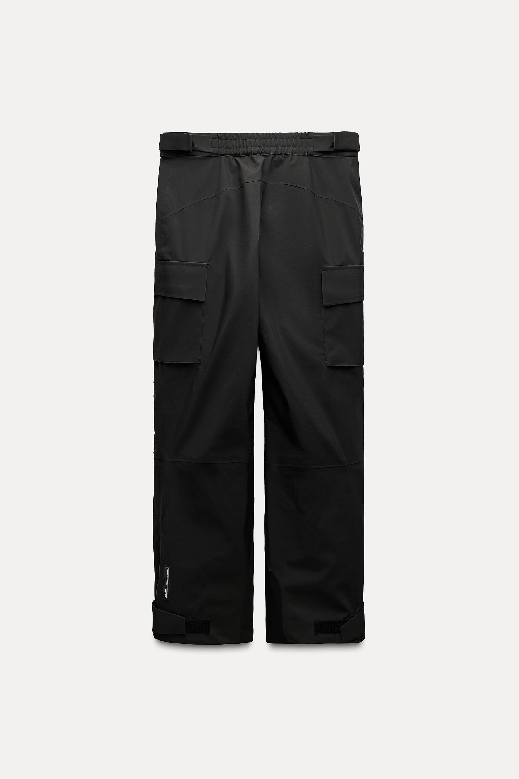 High waist with elastic waistband at back. Adjustable side tongues with adhesive straps. Front loop to hang gloves. Front pockets with waterproof zippers and side flap patch pockets. Interior leg ventilation with adjustable zippers. Patch appliqué at hem with technical fabric to avoid friction caused by ski and snowboard equipment. Adjustable hem with zipper and adhesive strap. Interior elastic cuffs with hook to attach to footwear and keep out snow and cold. Secure front closure with zipper, metal hook, and special patented technical Cobrax sliding button.