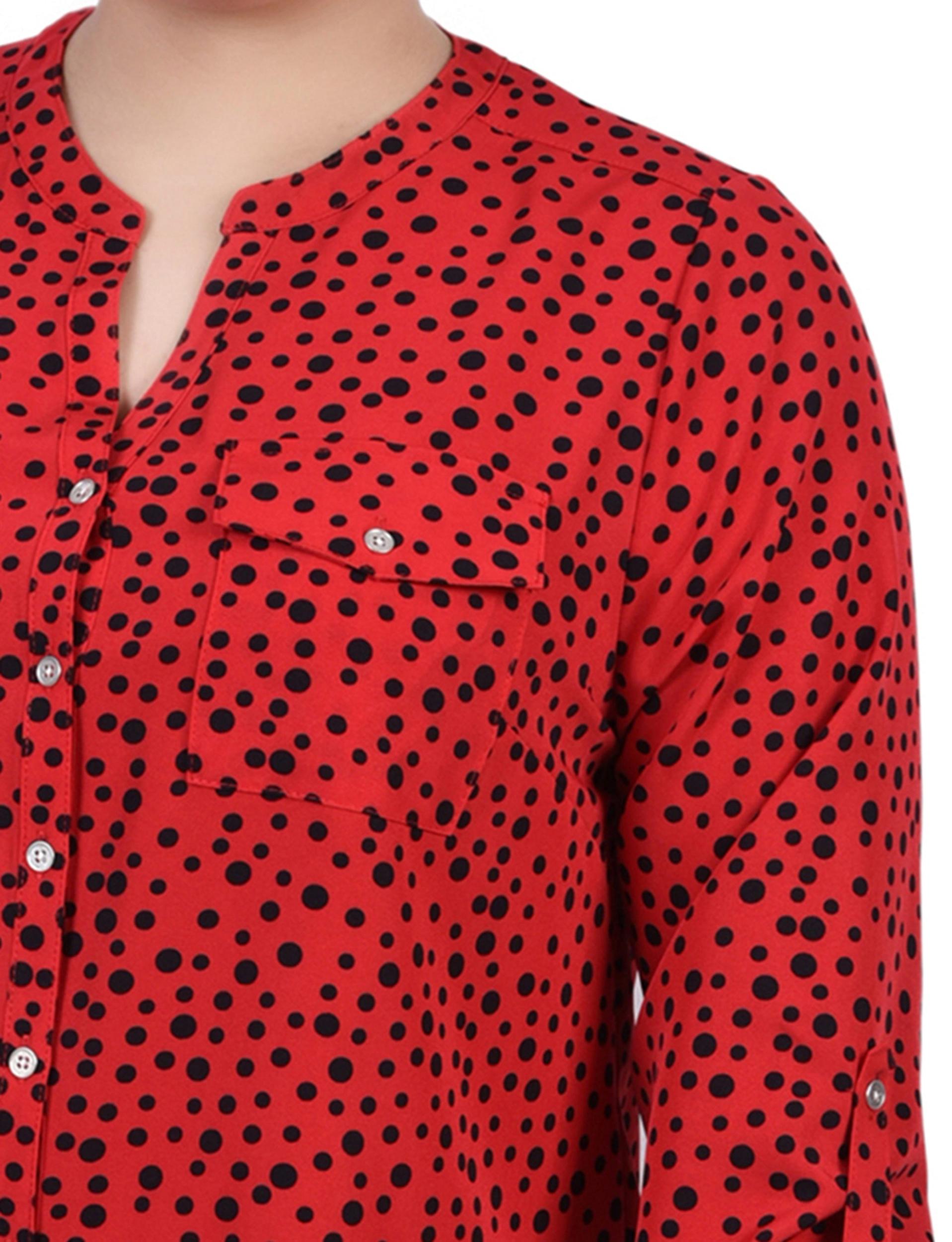 Red 3/4 Roll Tab Sleeve Mandarin Collar Blouse - Plus Size