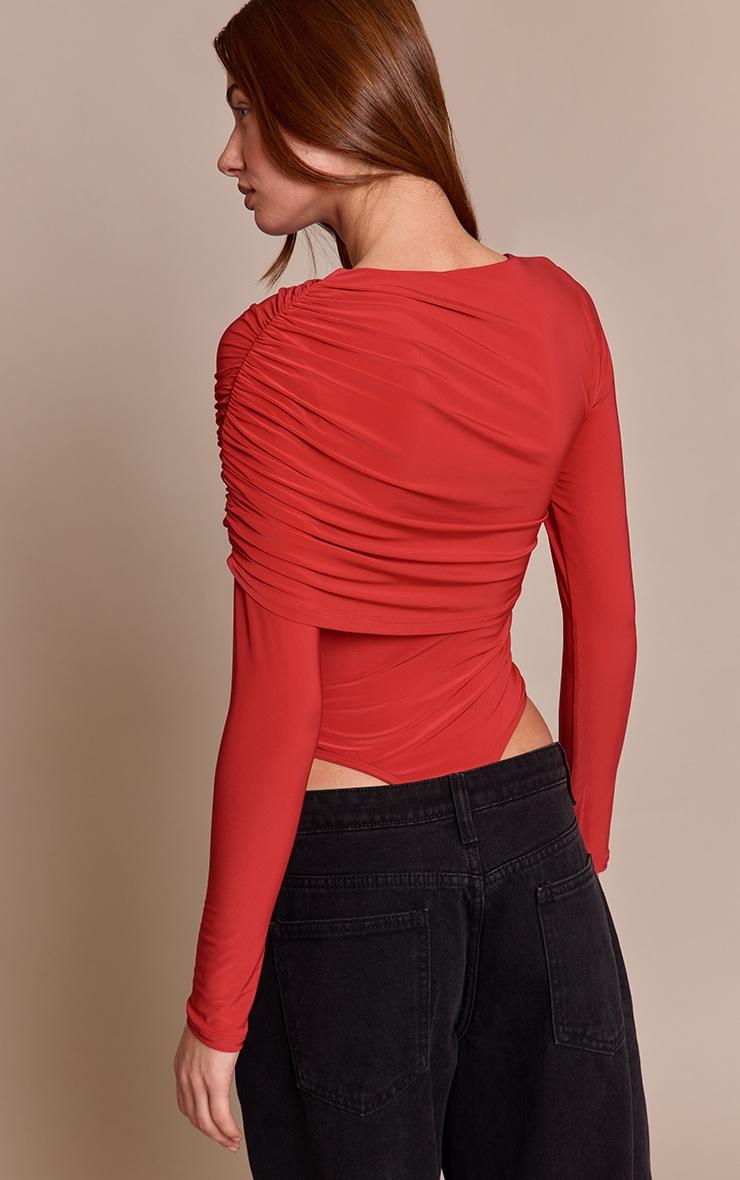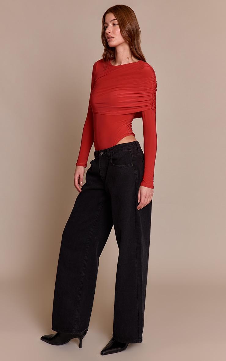 Own the night in a piece designed for impact. The red double layer slinky cape detail long sleeve bodysuit brings a unique architectural flair to your evening wardrobe, with its striking draped detail gracefully flowing across the shoulders, creating an artful silhouette that truly stands apart. The deep red hue and sleek cut offer a polished base for any occasion. Pair this distinct top with sharp tailored pants or a form-fitting midi skirt, grounding the ensemble with statement knee high boots. Complete the aesthetic with minimalist gold stud earrings for an elevated approach to after-dark style.Length approx 66cm/26inch (Based on sample size US 4)Model wears size UK 8/ EU 36/ AUS 8/ US 4Model Height - 5ft 9inchp]:!mb-4inch>Brand: PrettyLittleThingCategory: TopsProduct type: BodysuitColor: RedMaterial: Slinky JerseyDesign: PlainNeckline: CrewSleeves: LongOccasion: Evening