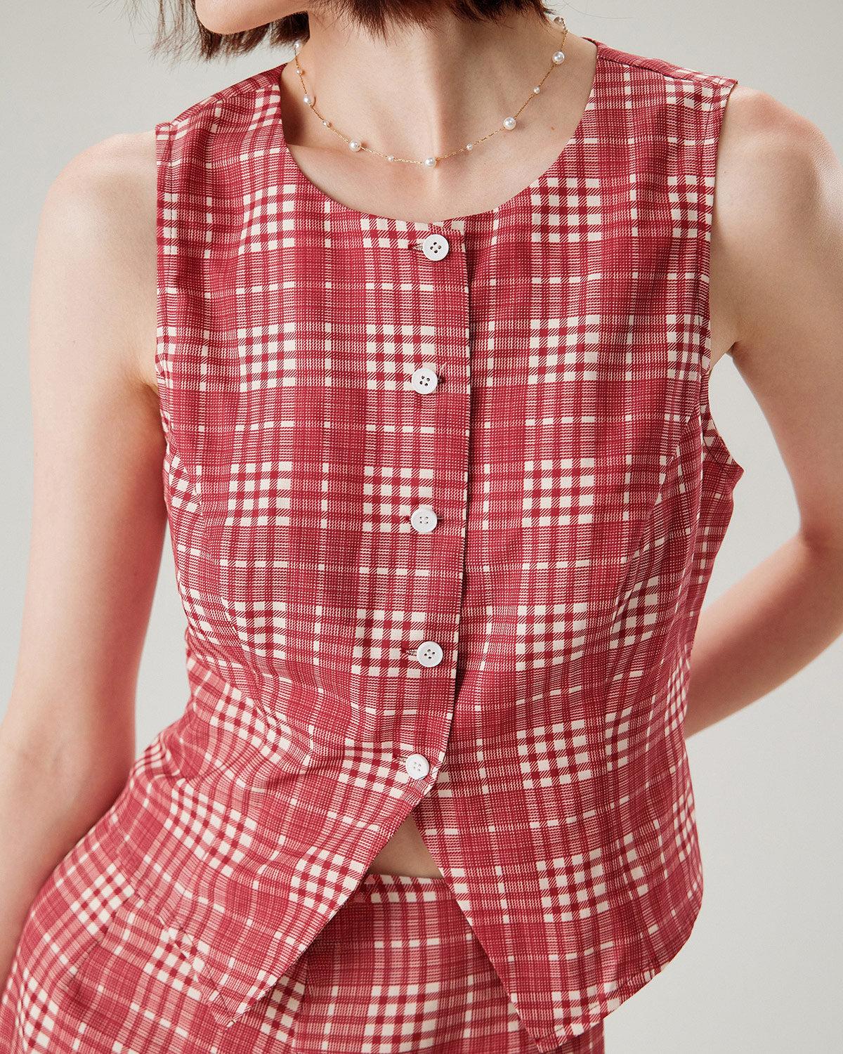 Fabric:This Plaid Vest is made of Polyester. Polyester is an artificial fiber that feels soft, looks lustrous, and dries fast. It's also durable, with good resistance to wrinkles, stains, and sunlight. Description:Featuring a vibrant red plaid pattern and a classic single-breasted design, this vest adds a touch of sophistication to any ensemble. Whether layered over a crisp shirt for a polished look or worn solo for a bold fashion statement, it’s a versatile addition to your wardrobe. Details:- Occasion: Daily- Top Length: Hip- Sleeve Length: Sleeveless- Closure Type: Single Breasted- Pattern Type: Plaid- Embellishment: Button- Neckline: Round Neck- Fabric: Polyester