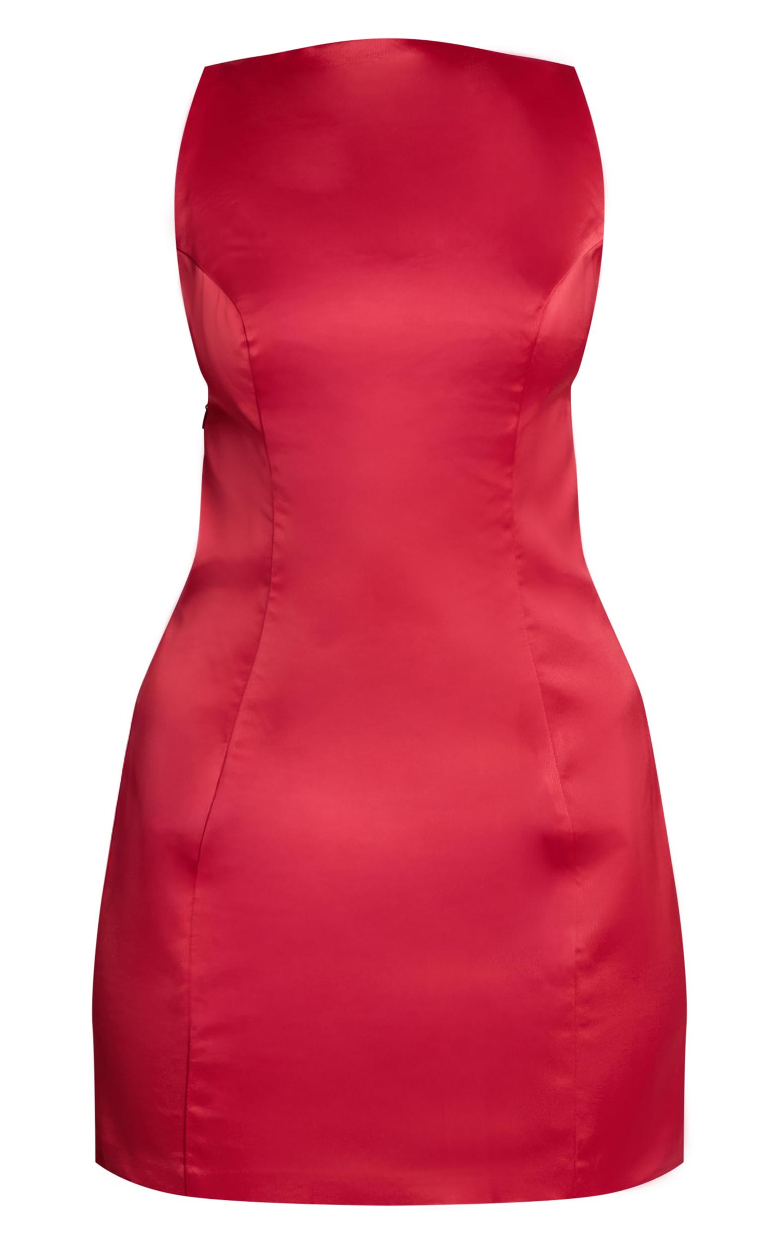 Add a pop of color to your collection with this red satin boat neck bodycon mini dress. Crafted from a vibrant red toned satin, this dress has a chic boat neckline, bodycon style and a mini length fit. For an elevated finish, wear this piece with chunky gold bangles, gold stud fastening earrings and neutral toned perspex slip on thong mule heels.Length approx 81.5cm/32inch (Based on sample size US 4)Model wears size UK 8/ EU 36/ AUS 8/ US 4Model Height - 5ft 9inchp]:!mb-4inch>Brand: PrettyLittleThingCategory: DressesProduct type: Bodycon DressColor: RedMaterial: Tailored WovenOccasion: Evening