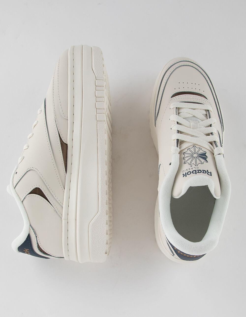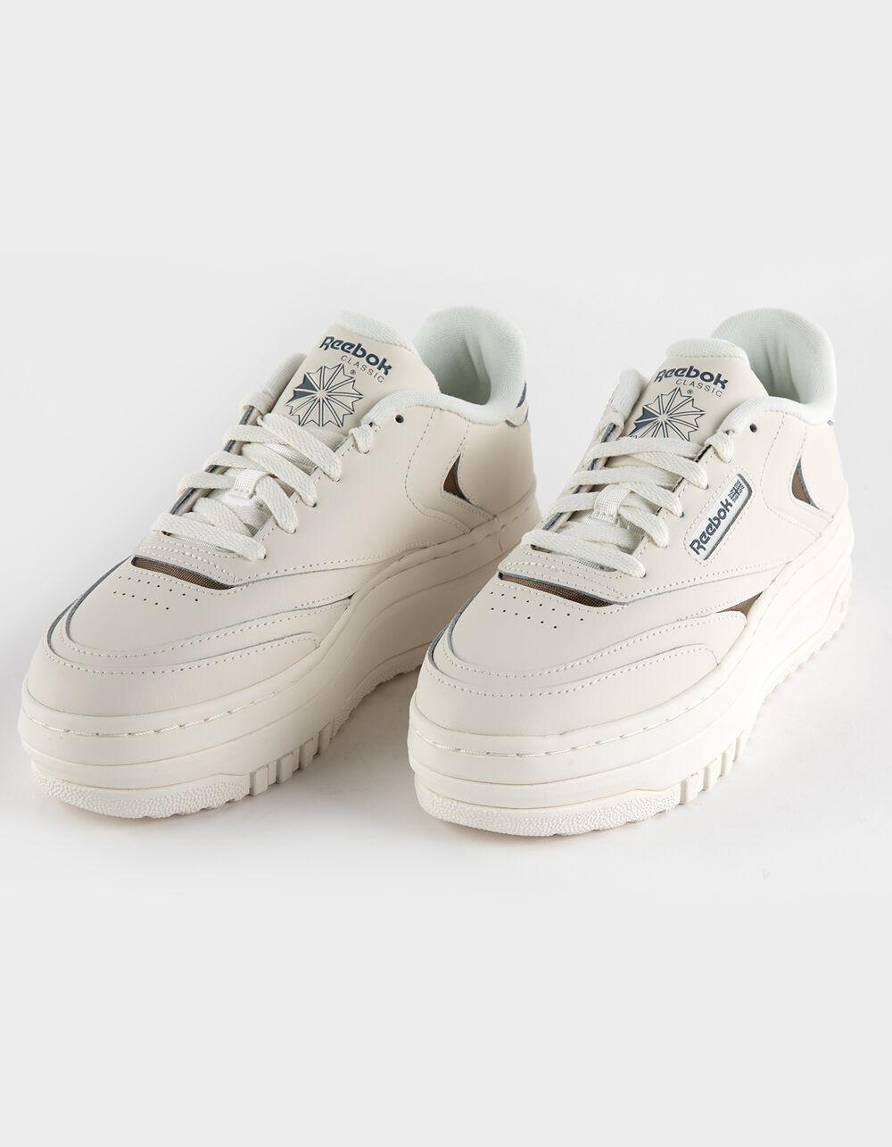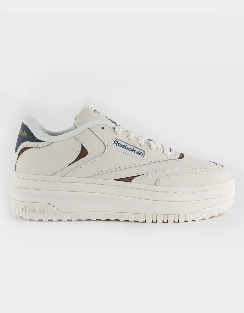Reebok Club C Extra Shoes. Add extra height when you wear these women's Club C Extra shoes. Hits of color give off warm-weather vibes, and a master mix of leather and textile pops plus a suede heel tab add texture for days. A debossed tongue and 3D tennis racket effect on the platform outsole elevate things just enough. Lace closure. EVA midsole. Platform rubber outsole. Imported.