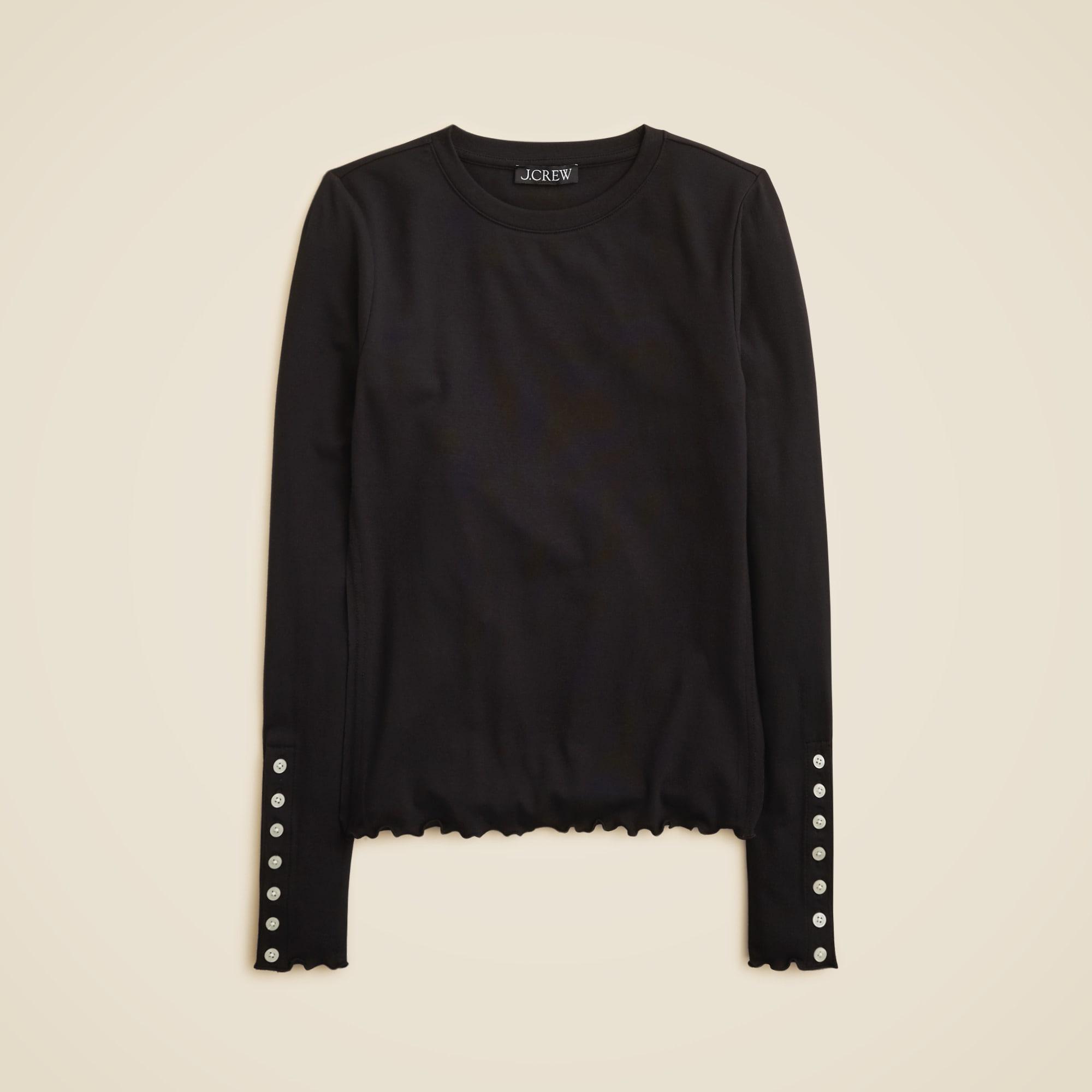 Refined rib long-sleeve T-shirt with button cuffs