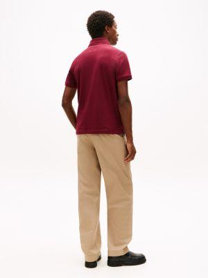 Tommy Hilfiger men's polo. What we do best. Our polo is made from premium cotton in a pique weave, known for its subtle, textured finish that adds dimension and breathability. The medium-weight stretch fabric strikes the ideal balance of structure and softness, offering a lightweight feel that stays comfortable all day.