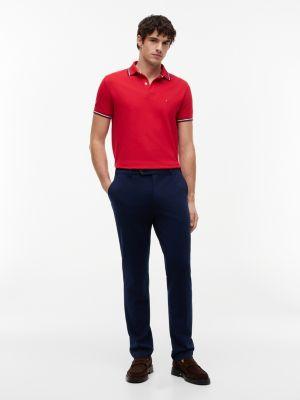 Tommy Hilfiger men's polo. A fresh spin on tradition, this regular-fit polo is made from quick-dry, wicking fabric with ultraviolet protection and features our signature stripe tipping at the cuffs and collar. Comfort? Check. Performance? Style? Check.