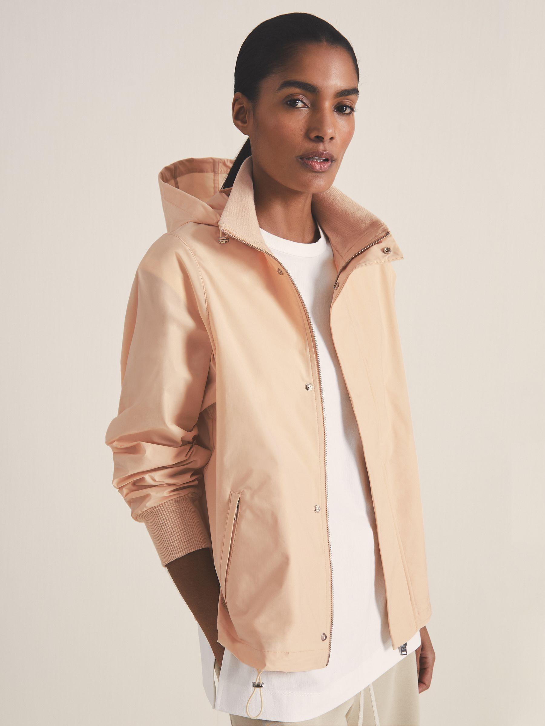 The Brooke jacket is the perfect transitional layer, crafted from a lightweight, breathable technical fabric. A detachable hood stows neatly in the zipped collar compartment, while the adjustable toggle drawstring at the hem ensures enhanced warmth and a customised fit. Technical fabrication Detachable, zip-away hood with toggle drawcord. Ribbed internal collar. Side zip pockets. Ribbed cuffs. Toggle drawstring hem. Dual front zip with press-stud placket. The Reiss x Les 100 Ciels collaboration embodies contemporary refinement, with exquisite knitwear and elevated basics at its core. This carefully curated selection of versatile staples seamlessly complements your existing Reiss wardrobe.