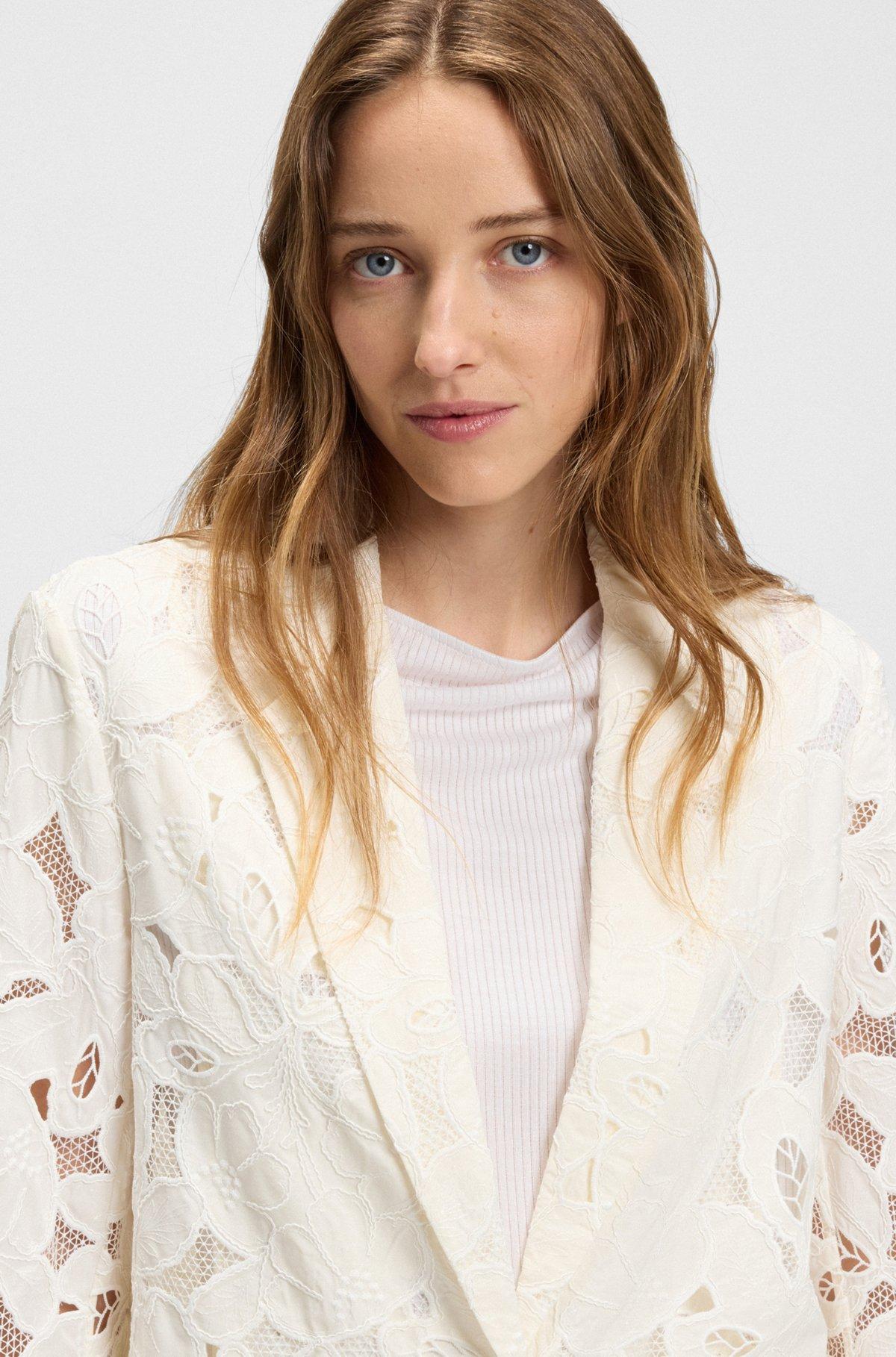Relaxed-fit blazer in an embroidered bamboo blend